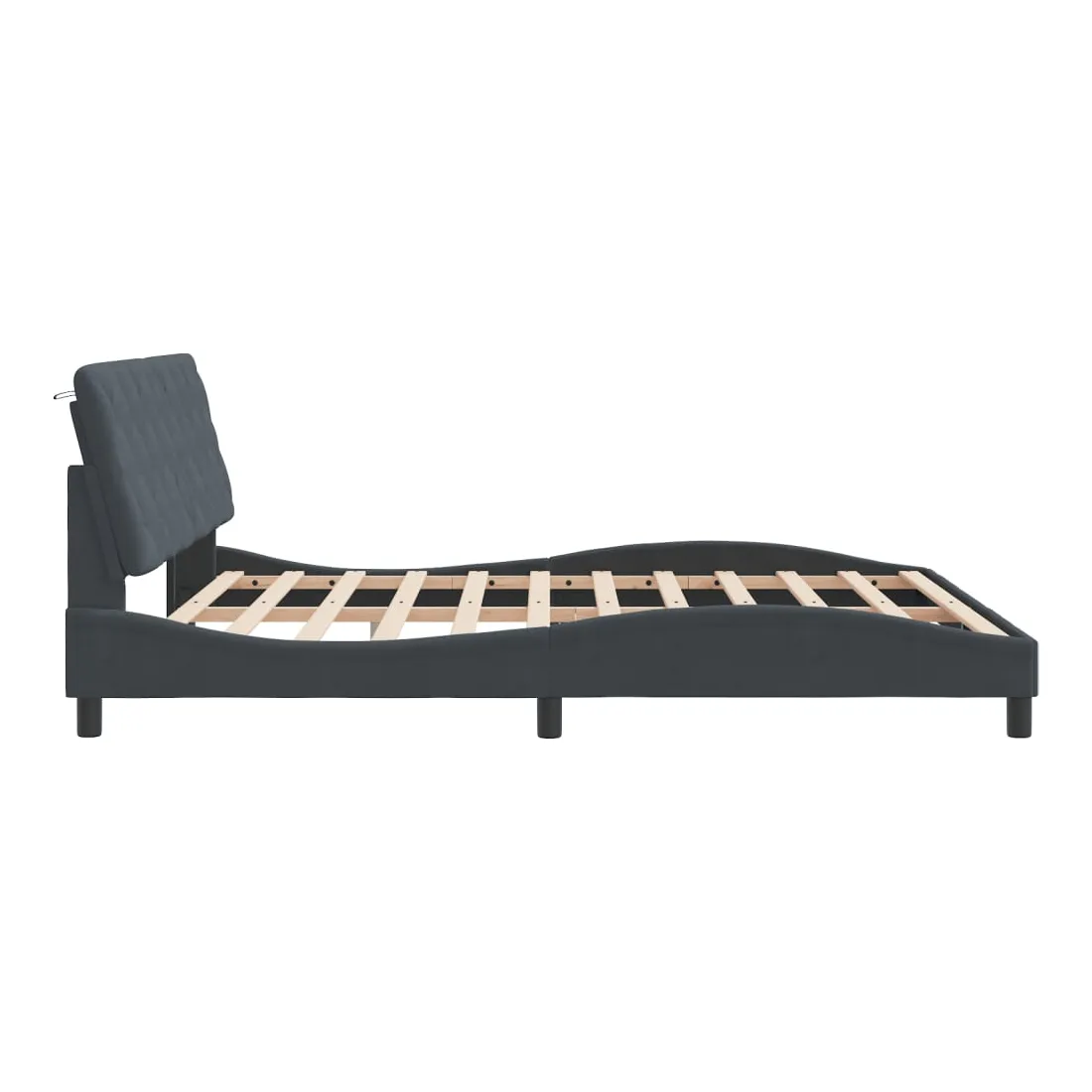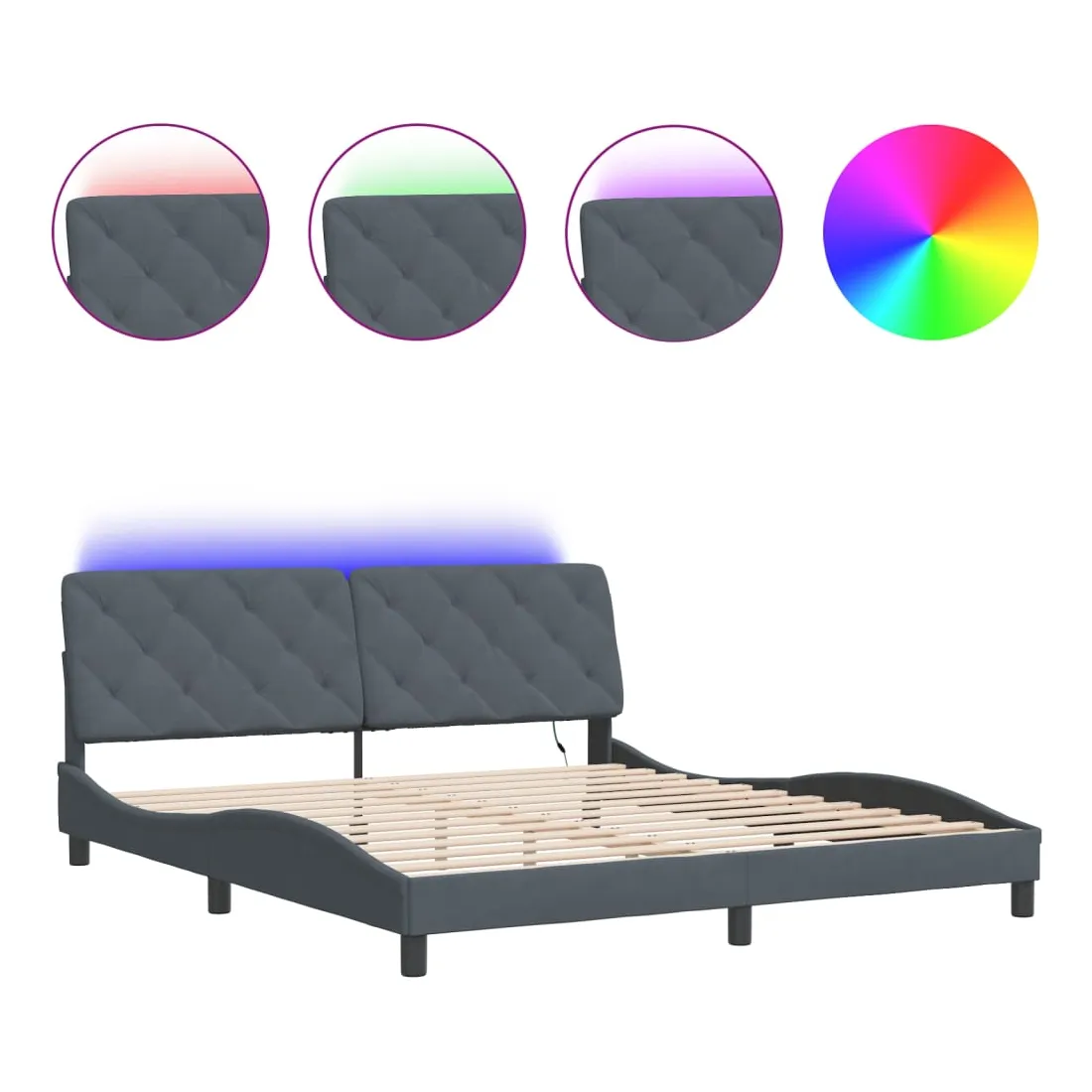 Obtenez une meilleure nuit de sommeil reposante grâce à ce cadre de lit avec lumières LED ! Il est un supplément accueillant à toute chambre à coucher. Velours doux : le velours est un tissu doux et confortable, agréable au toucher. Lattes de contreplaqué : les lattes de contreplaqué assurent une bonne répartition du poids, garantissant que le matelas reste en place à chaque torsion de votre corps pendant le sommeil. Excellent soutien : l'oreiller de tête de lit est rembourré avec de la mousse pour un confort ultra doux et optimal vous offre un excellent soutien du dos lorsque vous êtes assis dans votre lit pour lire ou regarder la télévision. Bande LED colorée : apportez de la gaieté dans l'obscurité avec des lumières LED colorées ! Les bandes auto-agrippantes situées à l'arrière du coussin de la tête de lit peuvent être utilisées pour fixer les lumières LED. Design latéral ondulé : l’aspect ondulé du cadre de lit est élégant et sophistiqué, ajoutant une touche moderne et élégante à votre décor, ce qui en fait le point central de votre chambre à coucher. Bon à savoir :Un matelas n'est pas inclus avec ce lit. Nous offrons une sélection variée de matelas. Vous pouvez consulter notre boutique pour trouver un matelas assorti.Ce produit est doté d'un connecteur USB qui nécessite une source d'alimentation USB de 5V certifiée (non incluse).
