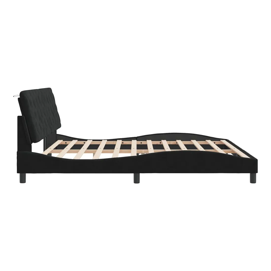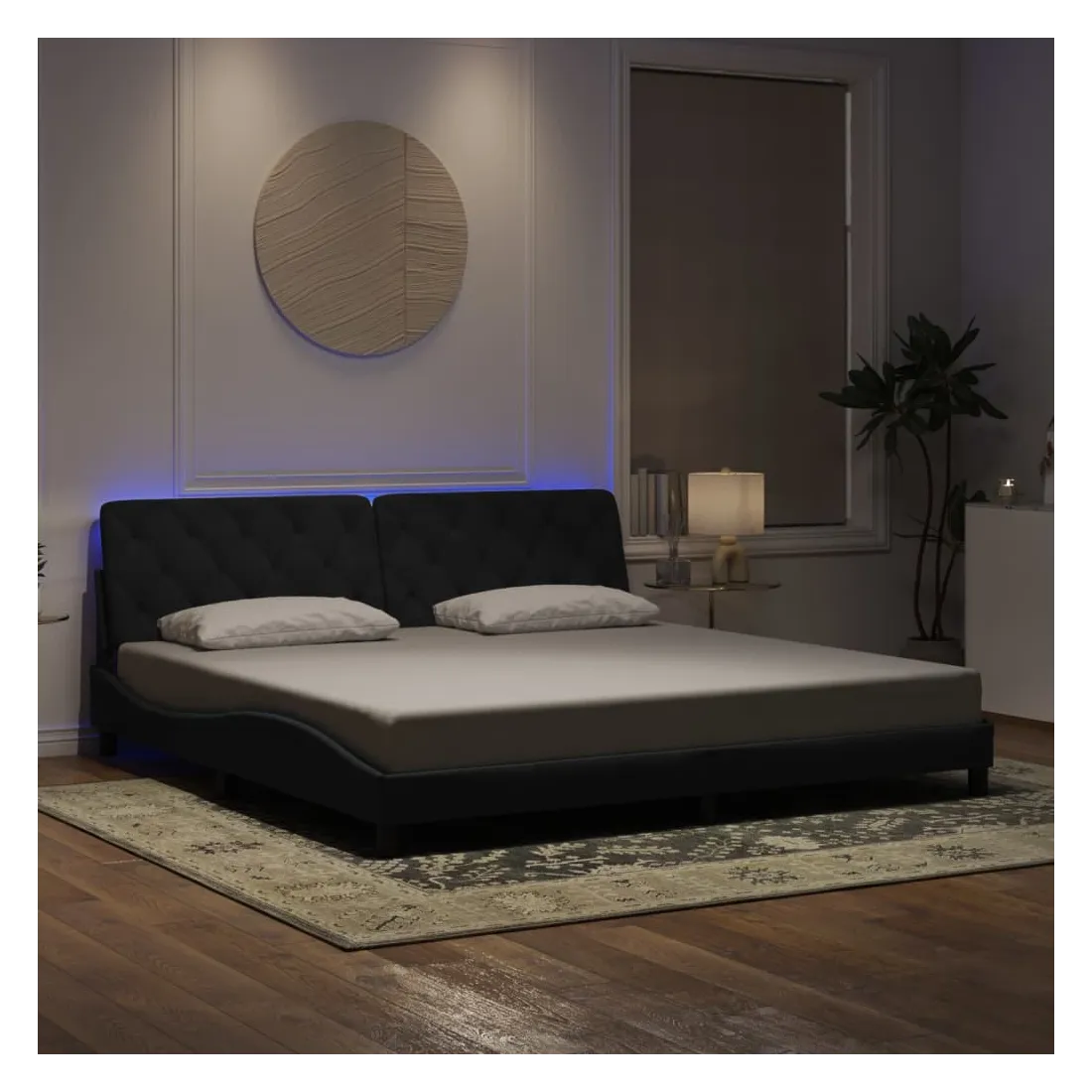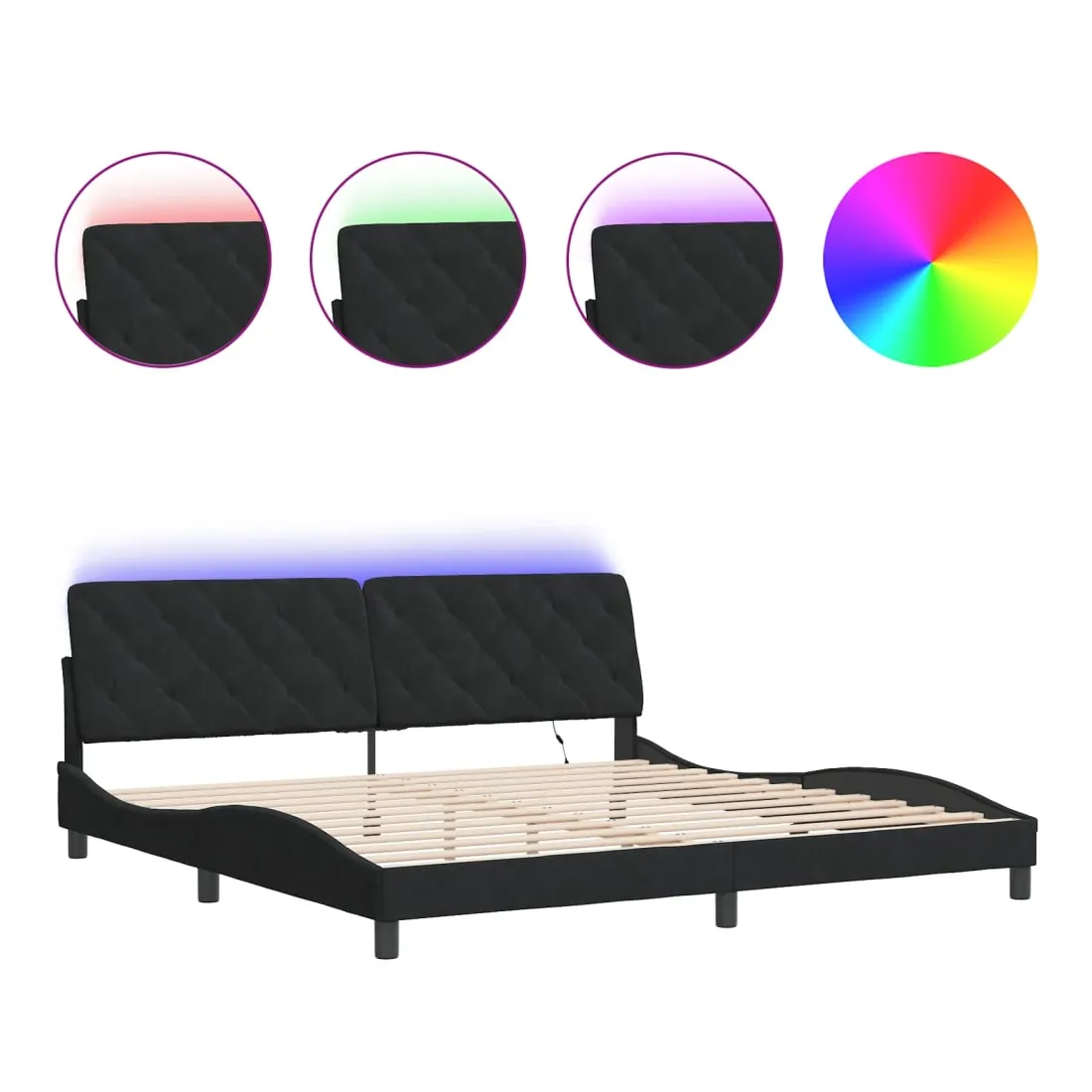 Obtenez une meilleure nuit de sommeil reposante grâce à ce cadre de lit avec lumières LED ! Il est un supplément accueillant à toute chambre à coucher. Velours doux : le velours est un tissu doux et confortable, agréable au toucher. Lattes de contreplaqué : les lattes de contreplaqué assurent une bonne répartition du poids, garantissant que le matelas reste en place à chaque torsion de votre corps pendant le sommeil. Excellent soutien : l'oreiller de tête de lit est rembourré avec de la mousse pour un confort ultra doux et optimal vous offre un excellent soutien du dos lorsque vous êtes assis dans votre lit pour lire ou regarder la télévision. Bande LED colorée : apportez de la gaieté dans l'obscurité avec des lumières LED colorées ! Les bandes auto-agrippantes situées à l'arrière du coussin de la tête de lit peuvent être utilisées pour fixer les lumières LED. Design latéral ondulé : l’aspect ondulé du cadre de lit est élégant et sophistiqué, ajoutant une touche moderne et élégante à votre décor, ce qui en fait le point central de votre chambre à coucher. Bon à savoir :Un matelas n'est pas inclus avec ce lit. Nous offrons une sélection variée de matelas. Vous pouvez consulter notre boutique pour trouver un matelas assorti.Ce produit est doté d'un connecteur USB qui nécessite une source d'alimentation USB de 5V certifiée (non incluse).