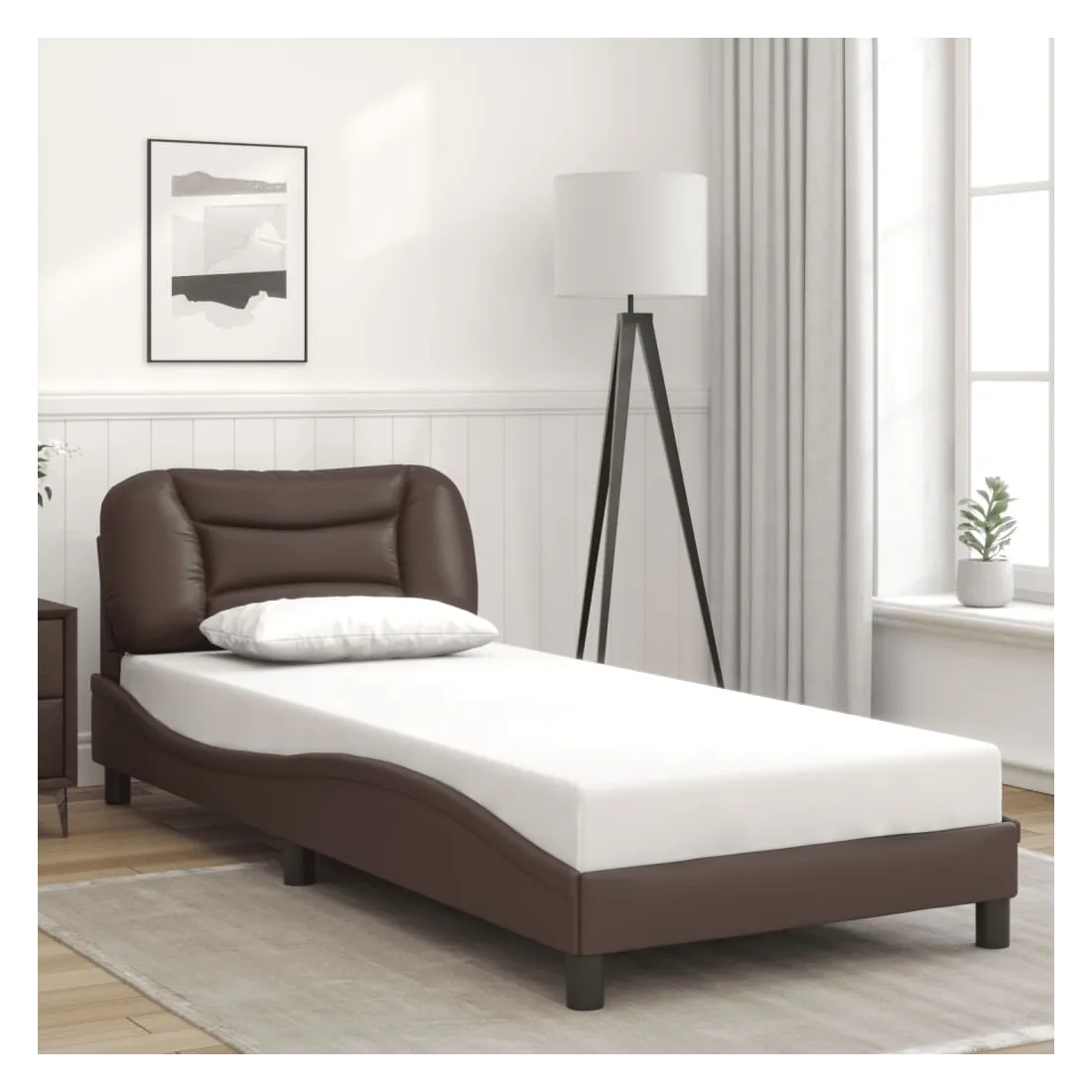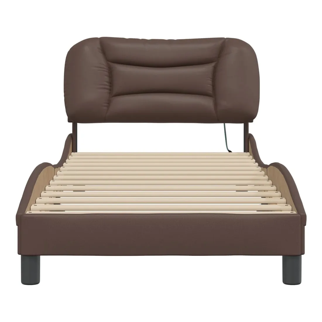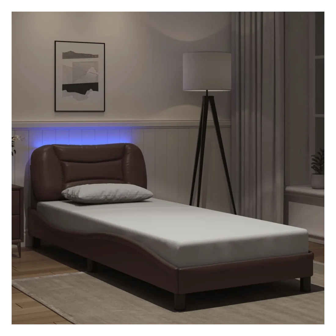 Obtenez une meilleure nuit de sommeil reposante grâce à ce cadre de lit avec lumières LED ! Il est un supplément accueillant à toute chambre à coucher. Similicuir durable : le similicuir de qualité supérieure est un matériau très durable. Il est résistant aux taches, ce qui le rend facile à nettoyer avec un chiffon humide. La surface lisse donne également un aspect luxueux et la beauté du cuir véritable.Lattes de contreplaqué : les lattes de contreplaqué assurent une bonne répartition du poids, garantissant que le matelas reste en place à chaque torsion de votre corps pendant le sommeil.Excellent soutien : la tête de lit vous offre un excellent soutien du dos lorsque vous êtes assis dans votre lit pour lire ou regarder la télévision.Bande LED colorée : apportez de la gaieté dans l'obscurité avec des lumières LED colorées ! Les bandes auto-agrippantes situées à l'arrière du coussin de la tête de lit peuvent être utilisées pour fixer les lumières LED.Design latéral ondulé : l’aspect ondulé du cadre de lit est élégant et sophistiqué, ajoutant une touche moderne et élégante à votre décor, ce qui en fait le point central de votre chambre à coucher. Bon à savoir :Un matelas n'est pas inclus avec ce lit. Nous offrons une sélection variée de matelas. Vous pouvez consulter notre boutique pour trouver un matelas assorti.Ce produit est doté d'un connecteur USB qui nécessite une source d'alimentation USB de 5V certifiée (non incluse).