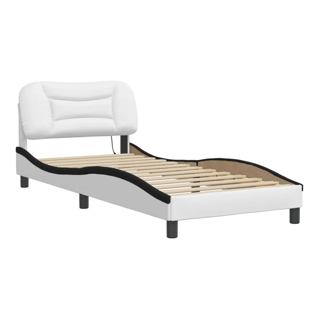 Obtenez une meilleure nuit de sommeil reposante grâce à ce cadre de lit avec lumières LED ! Il est un supplément accueillant à toute chambre à coucher. Similicuir durable : le similicuir de qualité supérieure est un matériau très durable. Il est résistant aux taches, ce qui le rend facile à nettoyer avec un chiffon humide. La surface lisse donne également un aspect luxueux et la beauté du cuir véritable.Lattes de contreplaqué : les lattes de contreplaqué assurent une bonne répartition du poids, garantissant que le matelas reste en place à chaque torsion de votre corps pendant le sommeil.Excellent soutien : la tête de lit vous offre un excellent soutien du dos lorsque vous êtes assis dans votre lit pour lire ou regarder la télévision.Bande LED colorée : apportez de la gaieté dans l'obscurité avec des lumières LED colorées ! Les bandes auto-agrippantes situées à l'arrière du coussin de la tête de lit peuvent être utilisées pour fixer les lumières LED.Design latéral ondulé : l’aspect ondulé du cadre de lit est élégant et sophistiqué, ajoutant une touche moderne et élégante à votre décor, ce qui en fait le point central de votre chambre à coucher. Bon à savoir :Un matelas n'est pas inclus avec ce lit. Nous offrons une sélection variée de matelas. Vous pouvez consulter notre boutique pour trouver un matelas assorti.Ce produit est doté d'un connecteur USB qui nécessite une source d'alimentation USB de 5V certifiée (non incluse).
