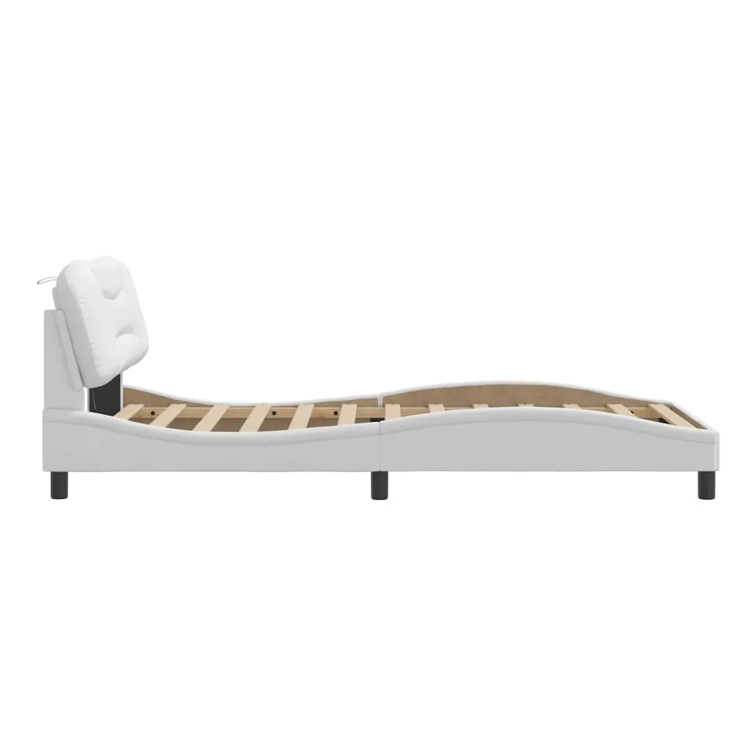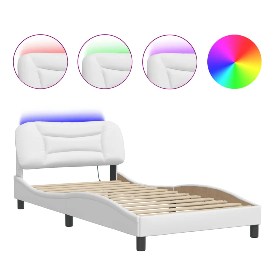 Obtenez une meilleure nuit de sommeil reposante grâce à ce cadre de lit avec lumières LED ! Il est un supplément accueillant à toute chambre à coucher. Similicuir durable : le similicuir de qualité supérieure est un matériau très durable. Il est résistant aux taches, ce qui le rend facile à nettoyer avec un chiffon humide. La surface lisse donne également un aspect luxueux et la beauté du cuir véritable.Lattes de contreplaqué : les lattes de contreplaqué assurent une bonne répartition du poids, garantissant que le matelas reste en place à chaque torsion de votre corps pendant le sommeil.Excellent soutien : la tête de lit vous offre un excellent soutien du dos lorsque vous êtes assis dans votre lit pour lire ou regarder la télévision.Bande LED colorée : apportez de la gaieté dans l'obscurité avec des lumières LED colorées ! Les bandes auto-agrippantes situées à l'arrière du coussin de la tête de lit peuvent être utilisées pour fixer les lumières LED.Design latéral ondulé : l’aspect ondulé du cadre de lit est élégant et sophistiqué, ajoutant une touche moderne et élégante à votre décor, ce qui en fait le point central de votre chambre à coucher. Bon à savoir :Un matelas n'est pas inclus avec ce lit. Nous offrons une sélection variée de matelas. Vous pouvez consulter notre boutique pour trouver un matelas assorti.Ce produit est doté d'un connecteur USB qui nécessite une source d'alimentation USB de 5V certifiée (non incluse).