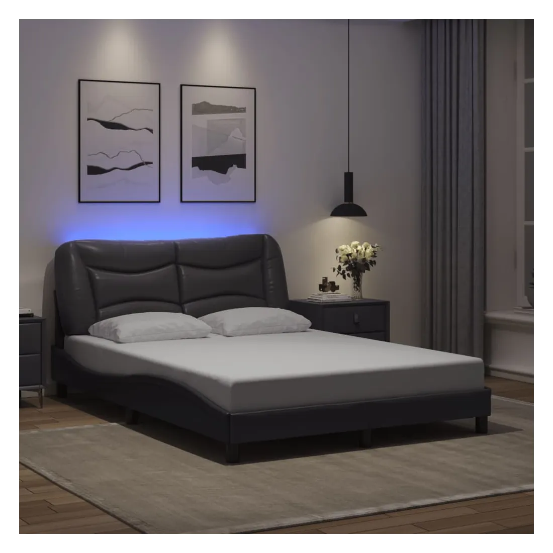 Obtenez une meilleure nuit de sommeil reposante grâce à ce cadre de lit avec lumières LED ! Il est un supplément accueillant à toute chambre à coucher. Similicuir durable : le similicuir de qualité supérieure est un matériau très durable. Il est résistant aux taches, ce qui le rend facile à nettoyer avec un chiffon humide. La surface lisse donne également un aspect luxueux et la beauté du cuir véritable.Lattes de contreplaqué : les lattes de contreplaqué assurent une bonne répartition du poids, garantissant que le matelas reste en place à chaque torsion de votre corps pendant le sommeil.Excellent soutien : la tête de lit vous offre un excellent soutien du dos lorsque vous êtes assis dans votre lit pour lire ou regarder la télévision.Bande LED colorée : apportez de la gaieté dans l'obscurité avec des lumières LED colorées ! Les bandes auto-agrippantes situées à l'arrière du coussin de la tête de lit peuvent être utilisées pour fixer les lumières LED.Design latéral ondulé : l’aspect ondulé du cadre de lit est élégant et sophistiqué, ajoutant une touche moderne et élégante à votre décor, ce qui en fait le point central de votre chambre à coucher. Bon à savoir :Un matelas n'est pas inclus avec ce lit. Nous offrons une sélection variée de matelas. Vous pouvez consulter notre boutique pour trouver un matelas assorti.Ce produit est doté d'un connecteur USB qui nécessite une source d'alimentation USB de 5V certifiée (non incluse).