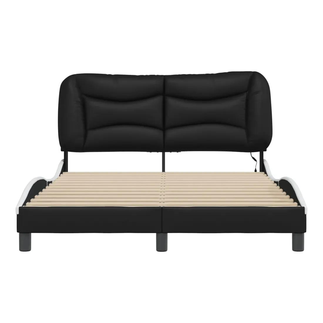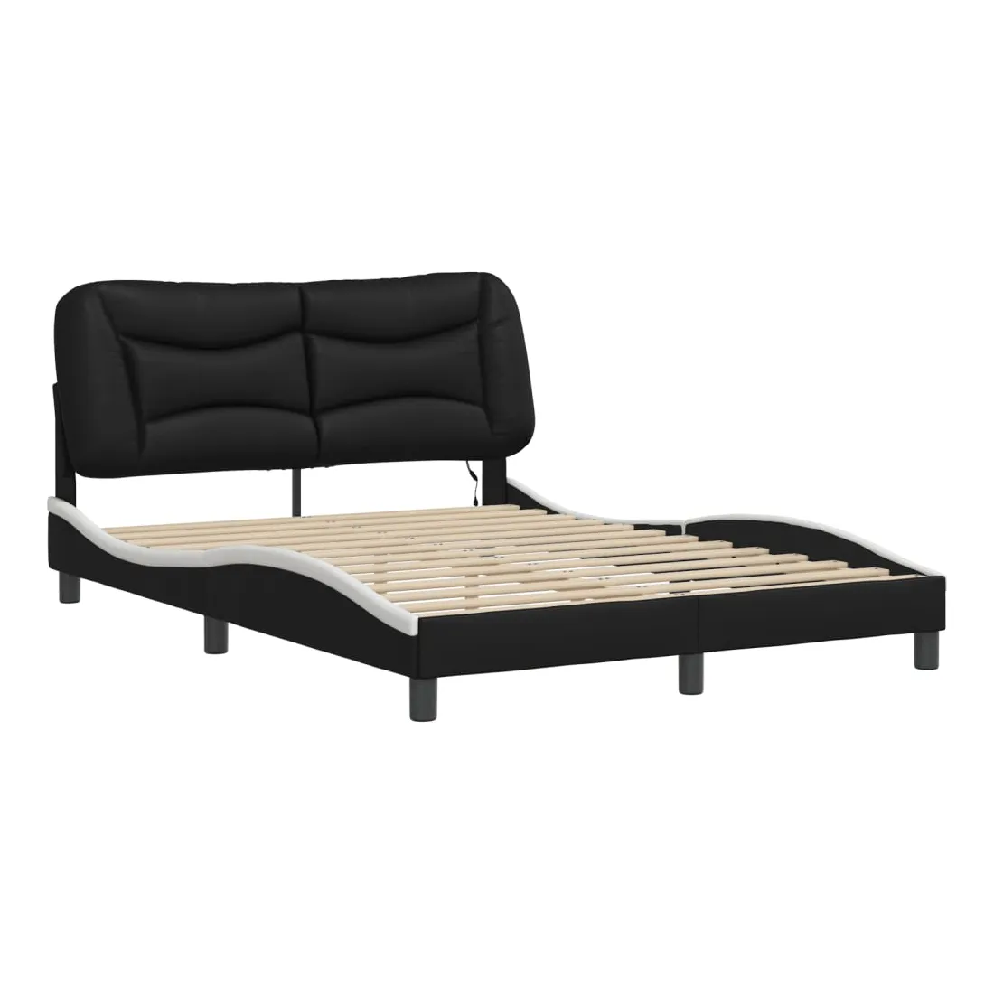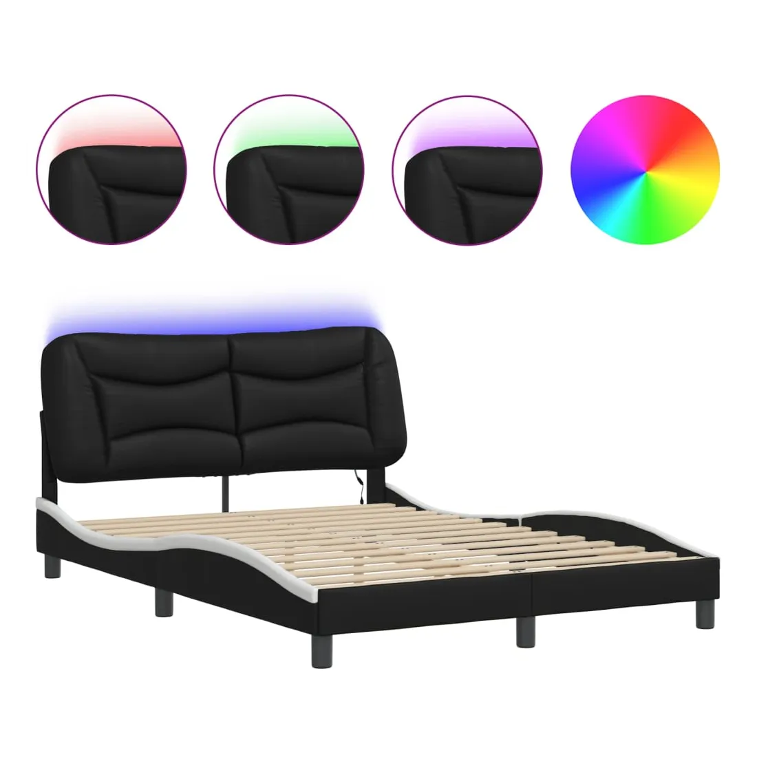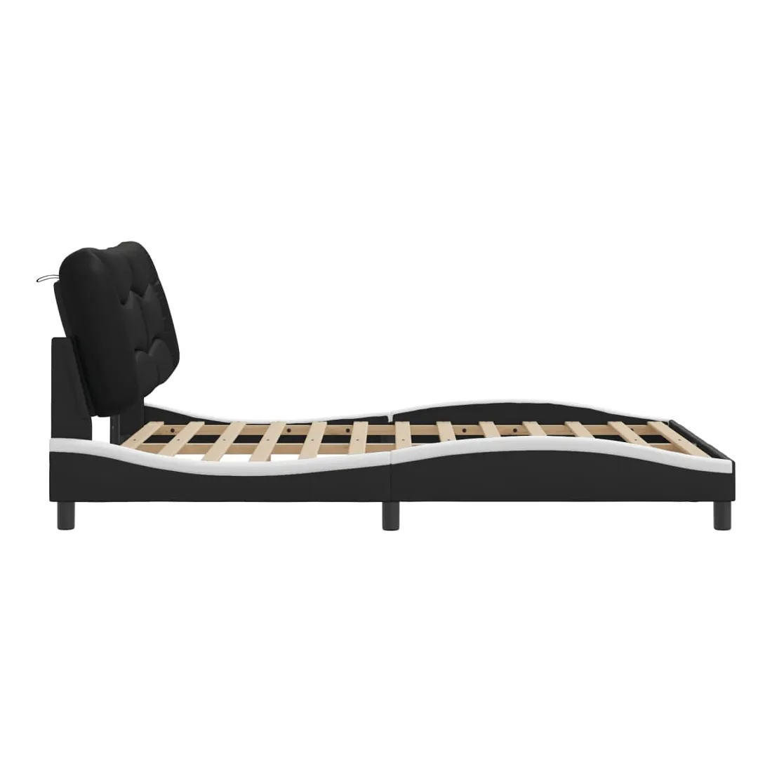 Obtenez une meilleure nuit de sommeil reposante grâce à ce cadre de lit avec lumières LED ! Il est un supplément accueillant à toute chambre à coucher. Similicuir durable : le similicuir de qualité supérieure est un matériau très durable. Il est résistant aux taches, ce qui le rend facile à nettoyer avec un chiffon humide. La surface lisse donne également un aspect luxueux et la beauté du cuir véritable.Lattes de contreplaqué : les lattes de contreplaqué assurent une bonne répartition du poids, garantissant que le matelas reste en place à chaque torsion de votre corps pendant le sommeil.Excellent soutien : la tête de lit vous offre un excellent soutien du dos lorsque vous êtes assis dans votre lit pour lire ou regarder la télévision.Bande LED colorée : apportez de la gaieté dans l'obscurité avec des lumières LED colorées ! Les bandes auto-agrippantes situées à l'arrière du coussin de la tête de lit peuvent être utilisées pour fixer les lumières LED.Design latéral ondulé : l’aspect ondulé du cadre de lit est élégant et sophistiqué, ajoutant une touche moderne et élégante à votre décor, ce qui en fait le point central de votre chambre à coucher. Bon à savoir :Un matelas n'est pas inclus avec ce lit. Nous offrons une sélection variée de matelas. Vous pouvez consulter notre boutique pour trouver un matelas assorti.Ce produit est doté d'un connecteur USB qui nécessite une source d'alimentation USB de 5V certifiée (non incluse).