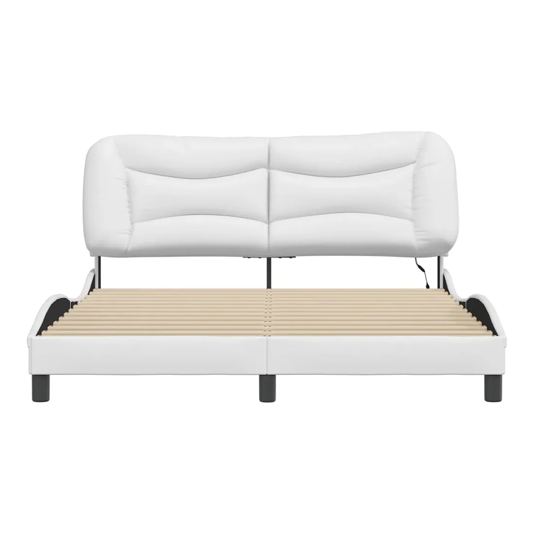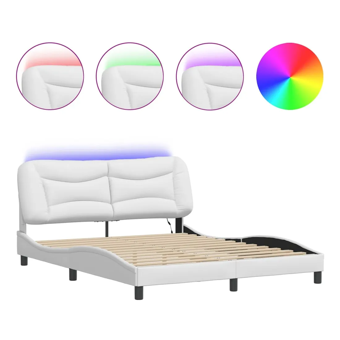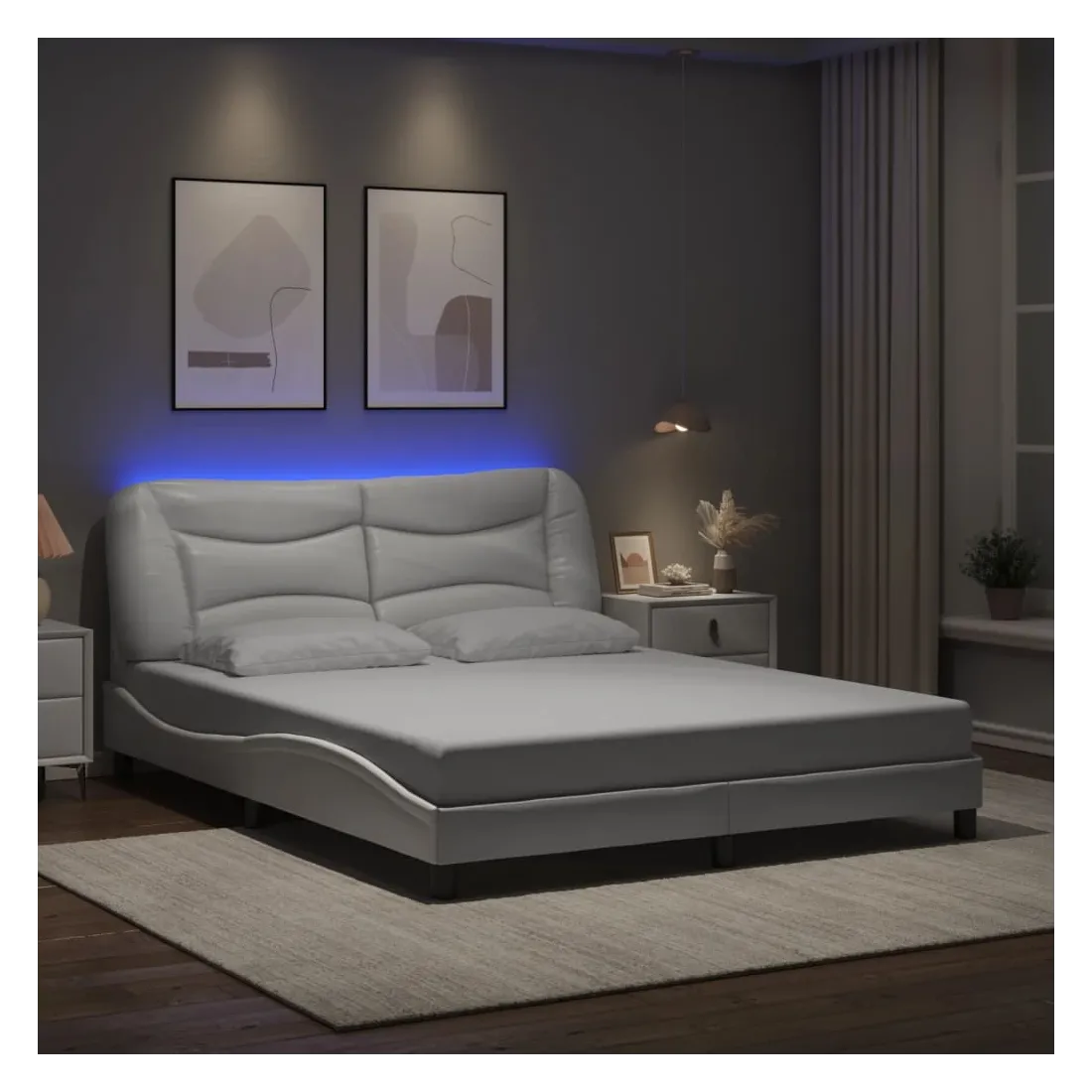 Obtenez une meilleure nuit de sommeil reposante grâce à ce cadre de lit avec lumières LED ! Il est un supplément accueillant à toute chambre à coucher. Similicuir durable : le similicuir de qualité supérieure est un matériau très durable. Il est résistant aux taches, ce qui le rend facile à nettoyer avec un chiffon humide. La surface lisse donne également un aspect luxueux et la beauté du cuir véritable.Lattes de contreplaqué : les lattes de contreplaqué assurent une bonne répartition du poids, garantissant que le matelas reste en place à chaque torsion de votre corps pendant le sommeil.Excellent soutien : la tête de lit vous offre un excellent soutien du dos lorsque vous êtes assis dans votre lit pour lire ou regarder la télévision.Bande LED colorée : apportez de la gaieté dans l'obscurité avec des lumières LED colorées ! Les bandes auto-agrippantes situées à l'arrière du coussin de la tête de lit peuvent être utilisées pour fixer les lumières LED.Design latéral ondulé : l’aspect ondulé du cadre de lit est élégant et sophistiqué, ajoutant une touche moderne et élégante à votre décor, ce qui en fait le point central de votre chambre à coucher. Bon à savoir :Un matelas n'est pas inclus avec ce lit. Nous offrons une sélection variée de matelas. Vous pouvez consulter notre boutique pour trouver un matelas assorti.Ce produit est doté d'un connecteur USB qui nécessite une source d'alimentation USB de 5V certifiée (non incluse).