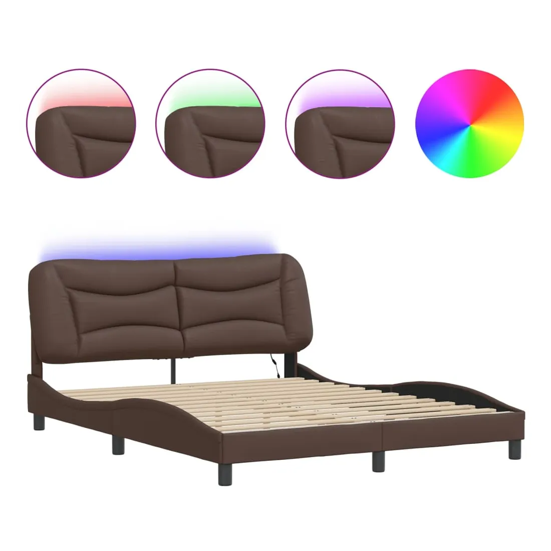 Obtenez une meilleure nuit de sommeil reposante grâce à ce cadre de lit avec lumières LED ! Il est un supplément accueillant à toute chambre à coucher. Similicuir durable : le similicuir de qualité supérieure est un matériau très durable. Il est résistant aux taches, ce qui le rend facile à nettoyer avec un chiffon humide. La surface lisse donne également un aspect luxueux et la beauté du cuir véritable.Lattes de contreplaqué : les lattes de contreplaqué assurent une bonne répartition du poids, garantissant que le matelas reste en place à chaque torsion de votre corps pendant le sommeil.Excellent soutien : la tête de lit vous offre un excellent soutien du dos lorsque vous êtes assis dans votre lit pour lire ou regarder la télévision.Bande LED colorée : apportez de la gaieté dans l'obscurité avec des lumières LED colorées ! Les bandes auto-agrippantes situées à l'arrière du coussin de la tête de lit peuvent être utilisées pour fixer les lumières LED.Design latéral ondulé : l’aspect ondulé du cadre de lit est élégant et sophistiqué, ajoutant une touche moderne et élégante à votre décor, ce qui en fait le point central de votre chambre à coucher. Bon à savoir :Un matelas n'est pas inclus avec ce lit. Nous offrons une sélection variée de matelas. Vous pouvez consulter notre boutique pour trouver un matelas assorti.Ce produit est doté d'un connecteur USB qui nécessite une source d'alimentation USB de 5V certifiée (non incluse).