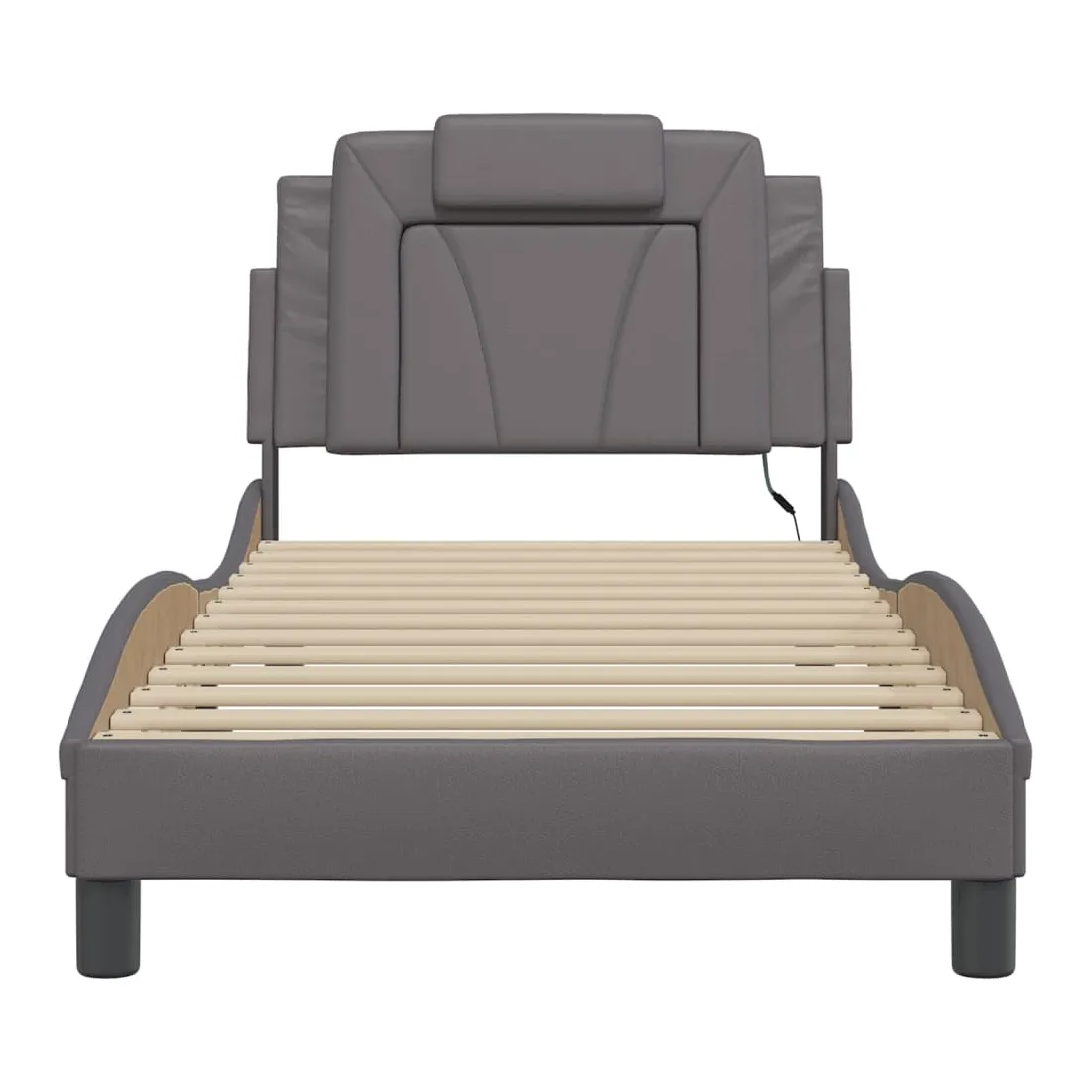 Obtenez une meilleure nuit de sommeil reposante grâce à ce cadre de lit avec lumières LED ! Il est un supplément accueillant à toute chambre à coucher. Similicuir durable : le similicuir de qualité supérieure est un matériau très durable. Il est résistant aux taches, ce qui le rend facile à nettoyer avec un chiffon humide. La surface lisse donne également un aspect luxueux et la beauté du cuir véritable.Lattes de contreplaqué : les lattes de contreplaqué assurent une bonne répartition du poids, garantissant que le matelas reste en place à chaque torsion de votre corps pendant le sommeil. Excellent soutien : l'oreiller de tête de lit est rembourré avec de la mousse pour un confort ultra doux et optimal vous offre un excellent soutien du dos lorsque vous êtes assis dans votre lit pour lire ou regarder la télévision. Bande LED colorée : apportez de la gaieté dans l'obscurité avec des lumières LED colorées ! Les bandes auto-agrippantes situées à l'arrière du coussin de la tête de lit peuvent être utilisées pour fixer les lumières LED. Design latéral ondulé : l’aspect ondulé du cadre de lit est élégant et sophistiqué, ajoutant une touche moderne et élégante à votre décor, ce qui en fait le point central de votre chambre à coucher. Bon à savoir :Un matelas n'est pas inclus avec ce lit. Nous offrons une sélection variée de matelas. Vous pouvez consulter notre boutique pour trouver un matelas assorti.Ce produit est doté d'un connecteur USB qui nécessite une source d'alimentation USB de 5V certifiée (non incluse).