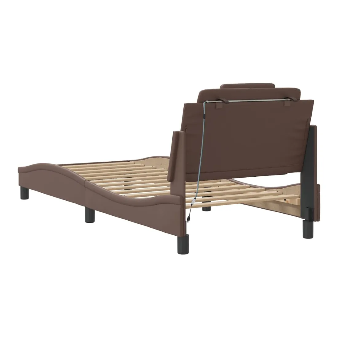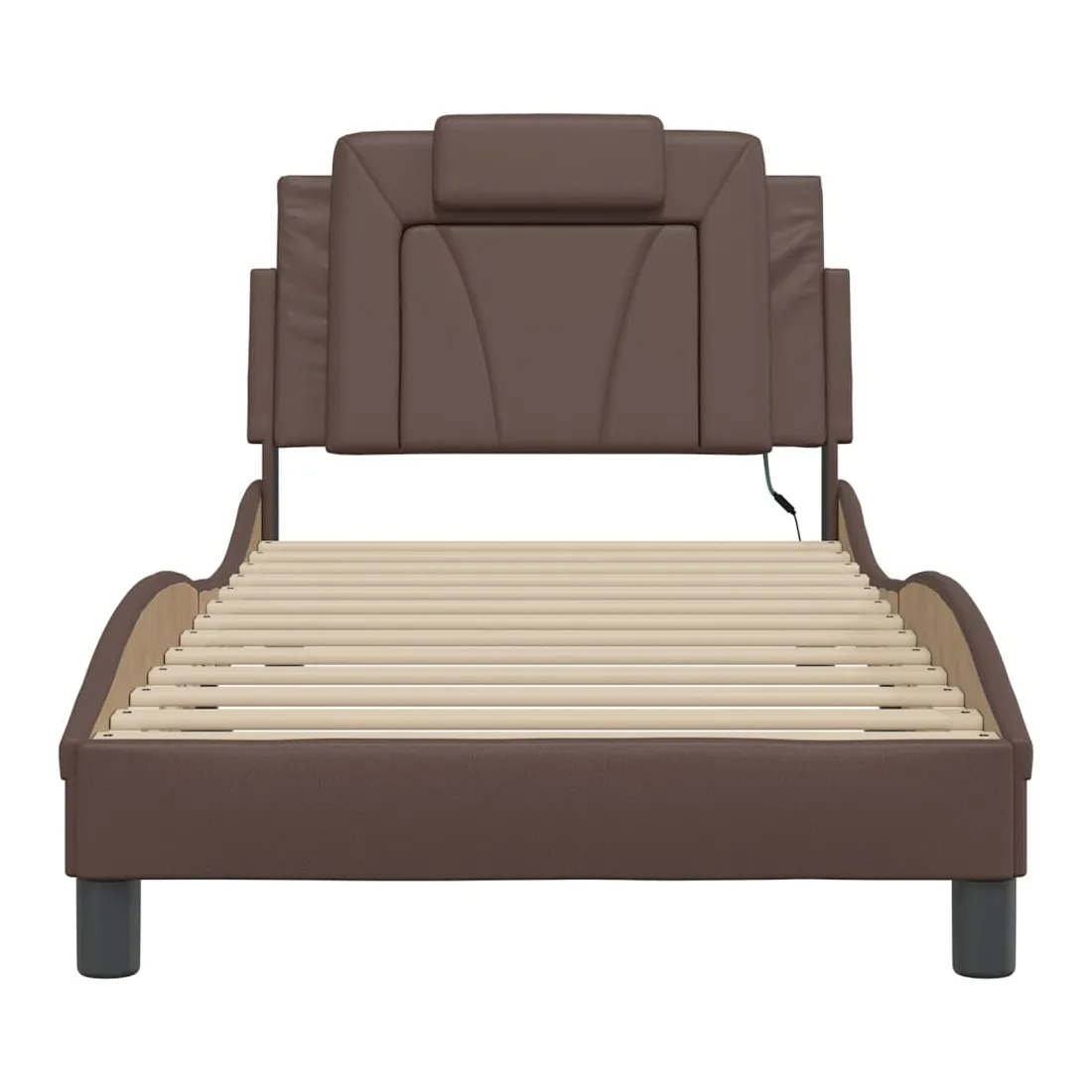 Obtenez une meilleure nuit de sommeil reposante grâce à ce cadre de lit avec lumières LED ! Il est un supplément accueillant à toute chambre à coucher. Similicuir durable : le similicuir de qualité supérieure est un matériau très durable. Il est résistant aux taches, ce qui le rend facile à nettoyer avec un chiffon humide. La surface lisse donne également un aspect luxueux et la beauté du cuir véritable.Lattes de contreplaqué : les lattes de contreplaqué assurent une bonne répartition du poids, garantissant que le matelas reste en place à chaque torsion de votre corps pendant le sommeil. Excellent soutien : l'oreiller de tête de lit est rembourré avec de la mousse pour un confort ultra doux et optimal vous offre un excellent soutien du dos lorsque vous êtes assis dans votre lit pour lire ou regarder la télévision. Bande LED colorée : apportez de la gaieté dans l'obscurité avec des lumières LED colorées ! Les bandes auto-agrippantes situées à l'arrière du coussin de la tête de lit peuvent être utilisées pour fixer les lumières LED. Design latéral ondulé : l’aspect ondulé du cadre de lit est élégant et sophistiqué, ajoutant une touche moderne et élégante à votre décor, ce qui en fait le point central de votre chambre à coucher. Bon à savoir :Un matelas n'est pas inclus avec ce lit. Nous offrons une sélection variée de matelas. Vous pouvez consulter notre boutique pour trouver un matelas assorti.Ce produit est doté d'un connecteur USB qui nécessite une source d'alimentation USB de 5V certifiée (non incluse).