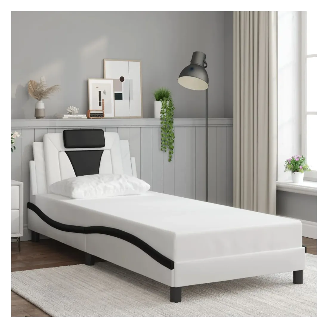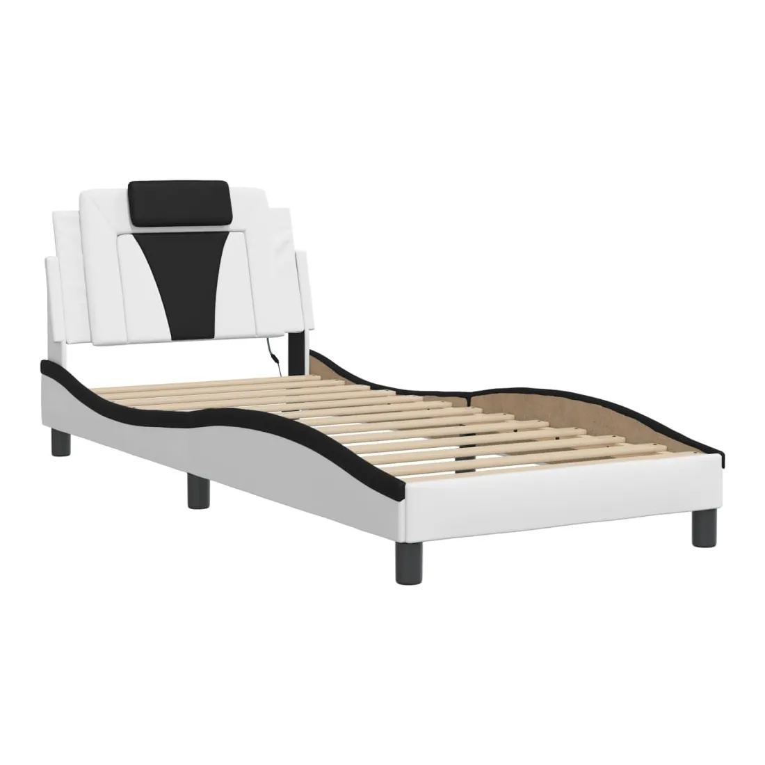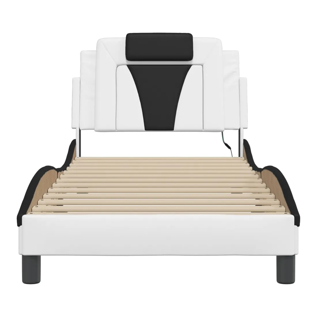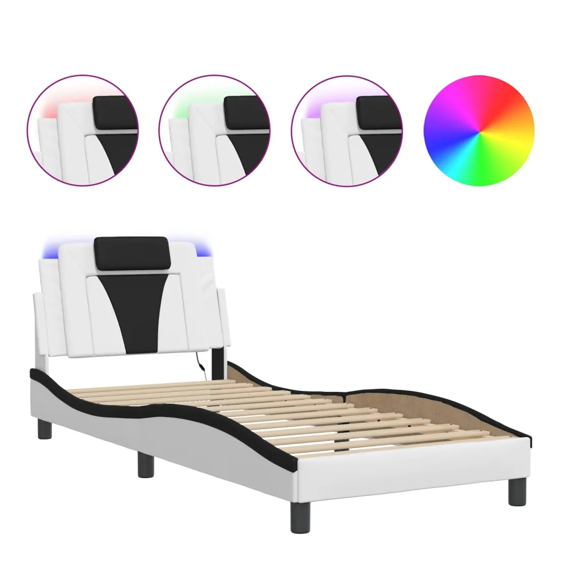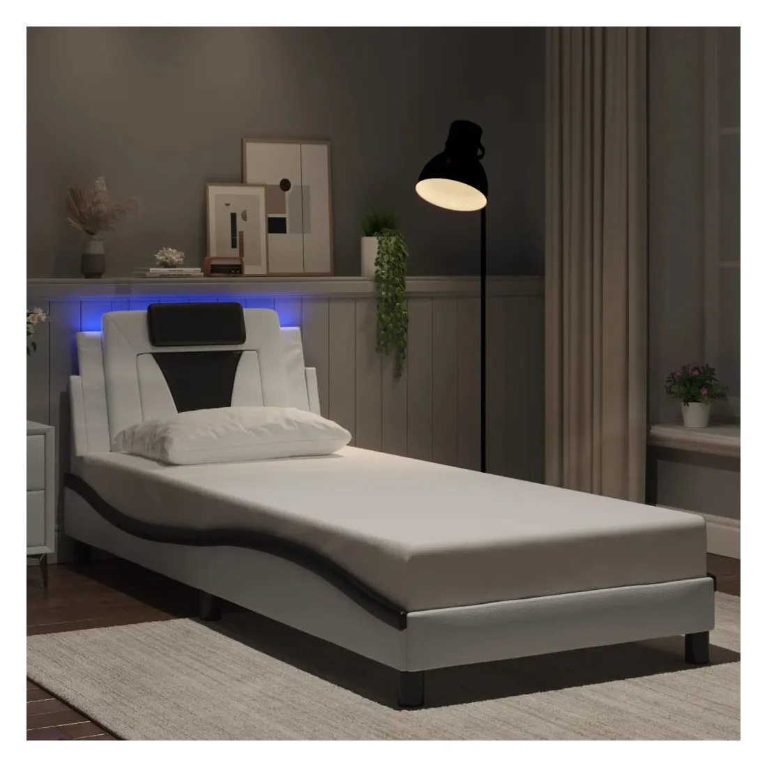 Obtenez une meilleure nuit de sommeil reposante grâce à ce cadre de lit avec lumières LED ! Il est un supplément accueillant à toute chambre à coucher. Similicuir durable : le similicuir de qualité supérieure est un matériau très durable. Il est résistant aux taches, ce qui le rend facile à nettoyer avec un chiffon humide. La surface lisse donne également un aspect luxueux et la beauté du cuir véritable.Lattes de contreplaqué : les lattes de contreplaqué assurent une bonne répartition du poids, garantissant que le matelas reste en place à chaque torsion de votre corps pendant le sommeil. Excellent soutien : l'oreiller de tête de lit est rembourré avec de la mousse pour un confort ultra doux et optimal vous offre un excellent soutien du dos lorsque vous êtes assis dans votre lit pour lire ou regarder la télévision. Bande LED colorée : apportez de la gaieté dans l'obscurité avec des lumières LED colorées ! Les bandes auto-agrippantes situées à l'arrière du coussin de la tête de lit peuvent être utilisées pour fixer les lumières LED. Design latéral ondulé : l’aspect ondulé du cadre de lit est élégant et sophistiqué, ajoutant une touche moderne et élégante à votre décor, ce qui en fait le point central de votre chambre à coucher. Bon à savoir :Un matelas n'est pas inclus avec ce lit. Nous offrons une sélection variée de matelas. Vous pouvez consulter notre boutique pour trouver un matelas assorti.Ce produit est doté d'un connecteur USB qui nécessite une source d'alimentation USB de 5V certifiée (non incluse).