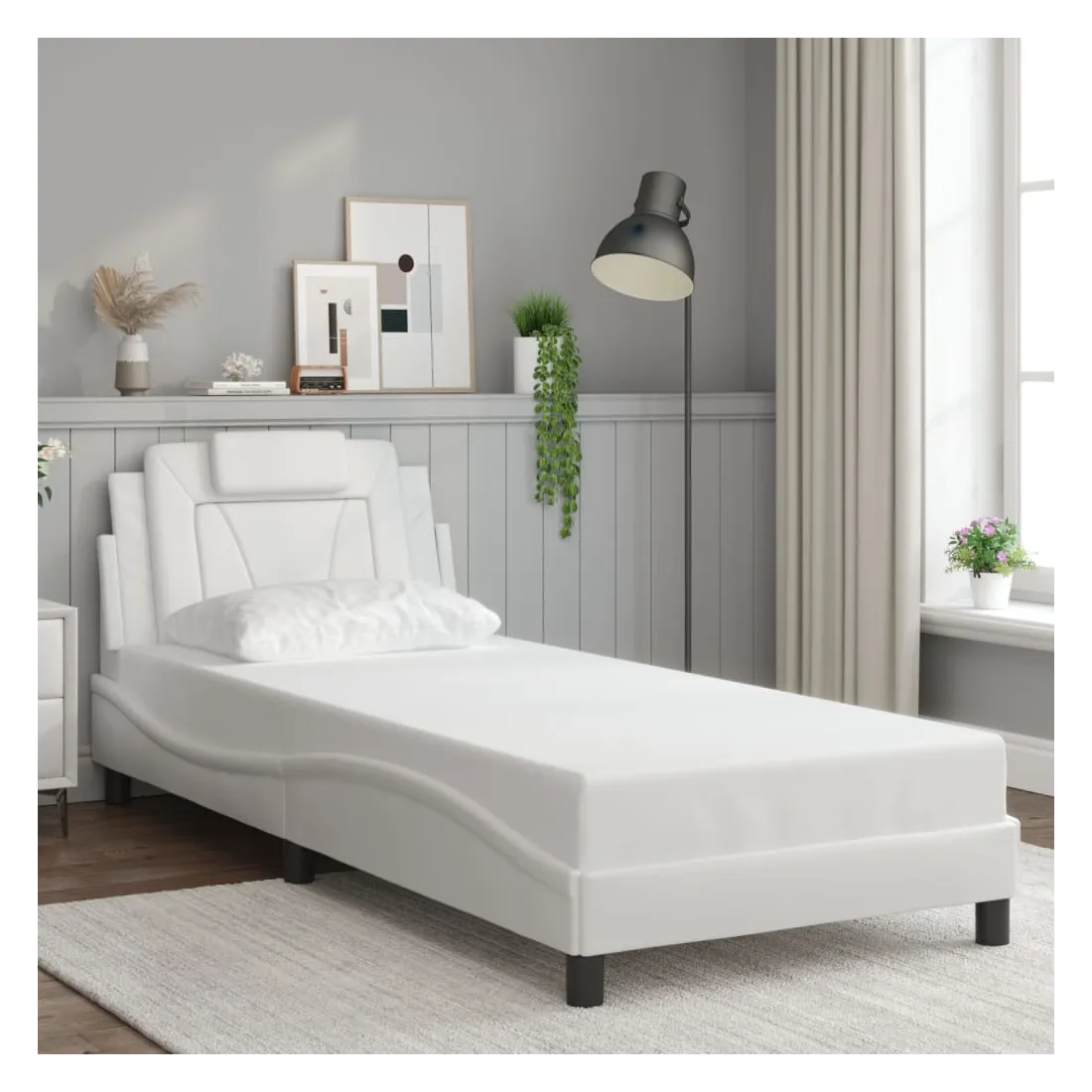 Obtenez une meilleure nuit de sommeil reposante grâce à ce cadre de lit avec lumières LED ! Il est un supplément accueillant à toute chambre à coucher. Similicuir durable : le similicuir de qualité supérieure est un matériau très durable. Il est résistant aux taches, ce qui le rend facile à nettoyer avec un chiffon humide. La surface lisse donne également un aspect luxueux et la beauté du cuir véritable.Lattes de contreplaqué : les lattes de contreplaqué assurent une bonne répartition du poids, garantissant que le matelas reste en place à chaque torsion de votre corps pendant le sommeil. Excellent soutien : l'oreiller de tête de lit est rembourré avec de la mousse pour un confort ultra doux et optimal vous offre un excellent soutien du dos lorsque vous êtes assis dans votre lit pour lire ou regarder la télévision. Bande LED colorée : apportez de la gaieté dans l'obscurité avec des lumières LED colorées ! Les bandes auto-agrippantes situées à l'arrière du coussin de la tête de lit peuvent être utilisées pour fixer les lumières LED. Design latéral ondulé : l’aspect ondulé du cadre de lit est élégant et sophistiqué, ajoutant une touche moderne et élégante à votre décor, ce qui en fait le point central de votre chambre à coucher. Bon à savoir :Un matelas n'est pas inclus avec ce lit. Nous offrons une sélection variée de matelas. Vous pouvez consulter notre boutique pour trouver un matelas assorti.Ce produit est doté d'un connecteur USB qui nécessite une source d'alimentation USB de 5V certifiée (non incluse).