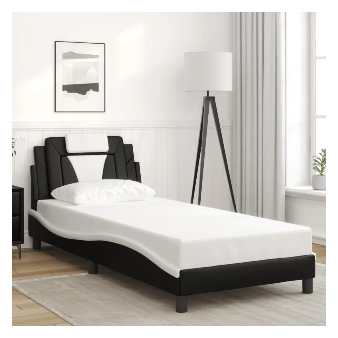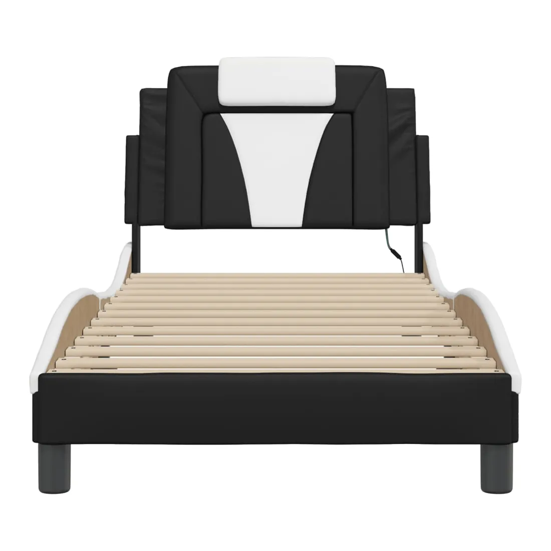 Obtenez une meilleure nuit de sommeil reposante grâce à ce cadre de lit avec lumières LED ! Il est un supplément accueillant à toute chambre à coucher. Similicuir durable : le similicuir de qualité supérieure est un matériau très durable. Il est résistant aux taches, ce qui le rend facile à nettoyer avec un chiffon humide. La surface lisse donne également un aspect luxueux et la beauté du cuir véritable.Lattes de contreplaqué : les lattes de contreplaqué assurent une bonne répartition du poids, garantissant que le matelas reste en place à chaque torsion de votre corps pendant le sommeil. Excellent soutien : l'oreiller de tête de lit est rembourré avec de la mousse pour un confort ultra doux et optimal vous offre un excellent soutien du dos lorsque vous êtes assis dans votre lit pour lire ou regarder la télévision. Bande LED colorée : apportez de la gaieté dans l'obscurité avec des lumières LED colorées ! Les bandes auto-agrippantes situées à l'arrière du coussin de la tête de lit peuvent être utilisées pour fixer les lumières LED. Design latéral ondulé : l’aspect ondulé du cadre de lit est élégant et sophistiqué, ajoutant une touche moderne et élégante à votre décor, ce qui en fait le point central de votre chambre à coucher. Bon à savoir :Un matelas n'est pas inclus avec ce lit. Nous offrons une sélection variée de matelas. Vous pouvez consulter notre boutique pour trouver un matelas assorti.Ce produit est doté d'un connecteur USB qui nécessite une source d'alimentation USB de 5V certifiée (non incluse).