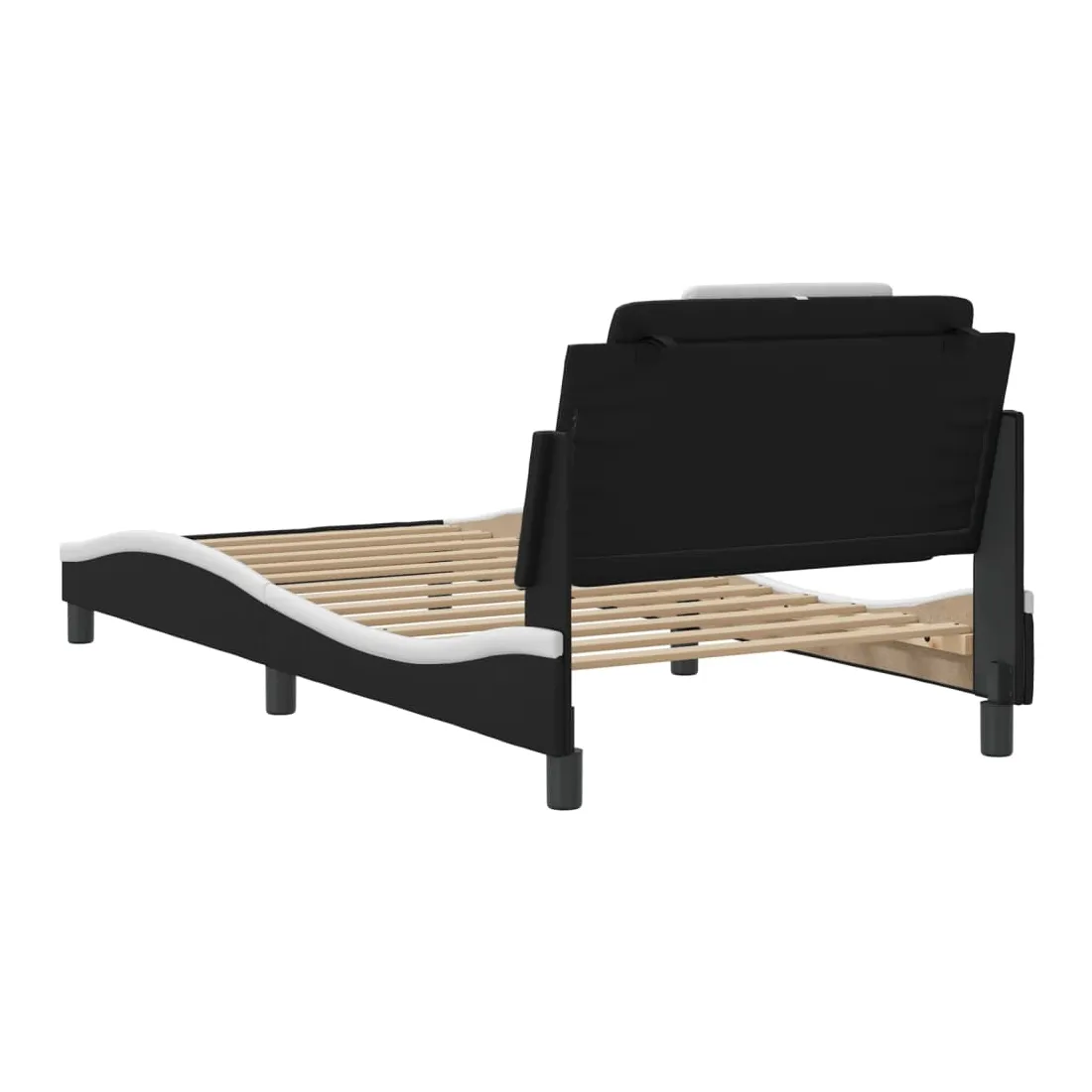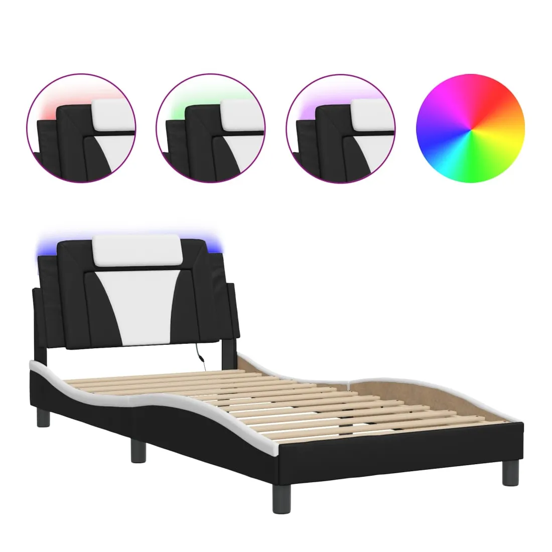 Obtenez une meilleure nuit de sommeil reposante grâce à ce cadre de lit avec lumières LED ! Il est un supplément accueillant à toute chambre à coucher. Similicuir durable : le similicuir de qualité supérieure est un matériau très durable. Il est résistant aux taches, ce qui le rend facile à nettoyer avec un chiffon humide. La surface lisse donne également un aspect luxueux et la beauté du cuir véritable.Lattes de contreplaqué : les lattes de contreplaqué assurent une bonne répartition du poids, garantissant que le matelas reste en place à chaque torsion de votre corps pendant le sommeil. Excellent soutien : l'oreiller de tête de lit est rembourré avec de la mousse pour un confort ultra doux et optimal vous offre un excellent soutien du dos lorsque vous êtes assis dans votre lit pour lire ou regarder la télévision. Bande LED colorée : apportez de la gaieté dans l'obscurité avec des lumières LED colorées ! Les bandes auto-agrippantes situées à l'arrière du coussin de la tête de lit peuvent être utilisées pour fixer les lumières LED. Design latéral ondulé : l’aspect ondulé du cadre de lit est élégant et sophistiqué, ajoutant une touche moderne et élégante à votre décor, ce qui en fait le point central de votre chambre à coucher. Bon à savoir :Un matelas n'est pas inclus avec ce lit. Nous offrons une sélection variée de matelas. Vous pouvez consulter notre boutique pour trouver un matelas assorti.Ce produit est doté d'un connecteur USB qui nécessite une source d'alimentation USB de 5V certifiée (non incluse).