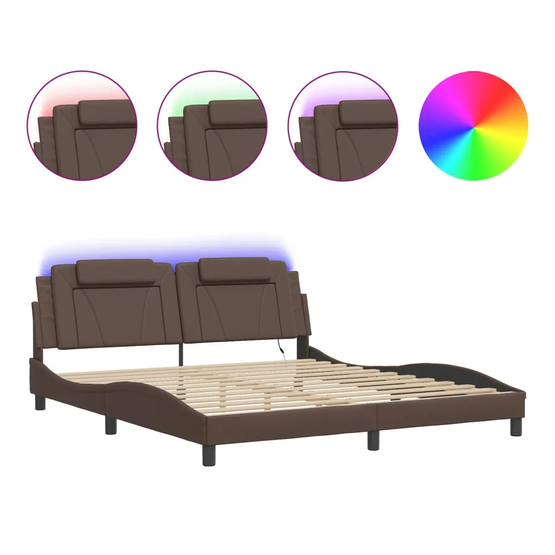Obtenez une meilleure nuit de sommeil reposante grâce à ce cadre de lit avec lumières LED ! Il est un supplément accueillant à toute chambre à coucher. Similicuir durable : le similicuir de qualité supérieure est un matériau très durable. Il est résistant aux taches, ce qui le rend facile à nettoyer avec un chiffon humide. La surface lisse donne également un aspect luxueux et la beauté du cuir véritable.Lattes de contreplaqué : les lattes de contreplaqué assurent une bonne répartition du poids, garantissant que le matelas reste en place à chaque torsion de votre corps pendant le sommeil. Excellent soutien : l'oreiller de tête de lit est rembourré avec de la mousse pour un confort ultra doux et optimal vous offre un excellent soutien du dos lorsque vous êtes assis dans votre lit pour lire ou regarder la télévision. Bande LED colorée : apportez de la gaieté dans l'obscurité avec des lumières LED colorées ! Les bandes auto-agrippantes situées à l'arrière du coussin de la tête de lit peuvent être utilisées pour fixer les lumières LED. Design latéral ondulé : l’aspect ondulé du cadre de lit est élégant et sophistiqué, ajoutant une touche moderne et élégante à votre décor, ce qui en fait le point central de votre chambre à coucher. Bon à savoir :Un matelas n'est pas inclus avec ce lit. Nous offrons une sélection variée de matelas. Vous pouvez consulter notre boutique pour trouver un matelas assorti.Ce produit est doté d'un connecteur USB qui nécessite une source d'alimentation USB de 5V certifiée (non incluse).