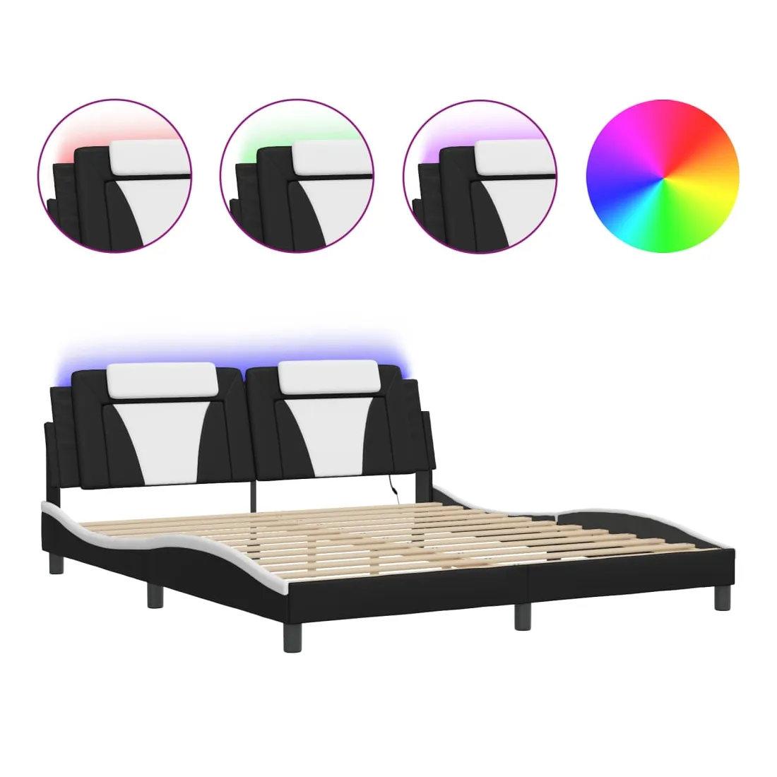 Obtenez une meilleure nuit de sommeil reposante grâce à ce cadre de lit avec lumières LED ! Il est un supplément accueillant à toute chambre à coucher. Similicuir durable : le similicuir de qualité supérieure est un matériau très durable. Il est résistant aux taches, ce qui le rend facile à nettoyer avec un chiffon humide. La surface lisse donne également un aspect luxueux et la beauté du cuir véritable.Lattes de contreplaqué : les lattes de contreplaqué assurent une bonne répartition du poids, garantissant que le matelas reste en place à chaque torsion de votre corps pendant le sommeil. Excellent soutien : l'oreiller de tête de lit est rembourré avec de la mousse pour un confort ultra doux et optimal vous offre un excellent soutien du dos lorsque vous êtes assis dans votre lit pour lire ou regarder la télévision. Bande LED colorée : apportez de la gaieté dans l'obscurité avec des lumières LED colorées ! Les bandes auto-agrippantes situées à l'arrière du coussin de la tête de lit peuvent être utilisées pour fixer les lumières LED. Design latéral ondulé : l’aspect ondulé du cadre de lit est élégant et sophistiqué, ajoutant une touche moderne et élégante à votre décor, ce qui en fait le point central de votre chambre à coucher. Bon à savoir :Un matelas n'est pas inclus avec ce lit. Nous offrons une sélection variée de matelas. Vous pouvez consulter notre boutique pour trouver un matelas assorti.Ce produit est doté d'un connecteur USB qui nécessite une source d'alimentation USB de 5V certifiée (non incluse).