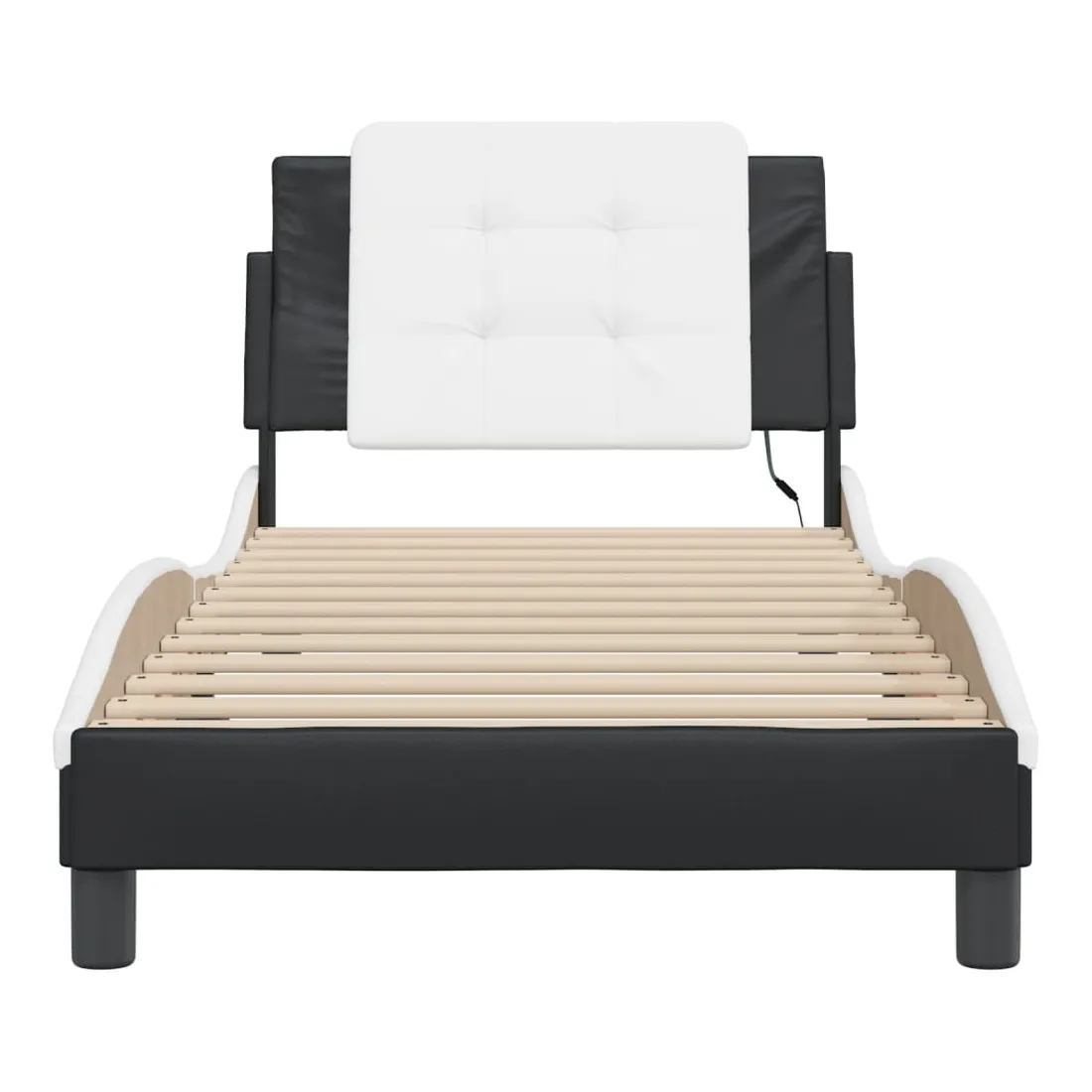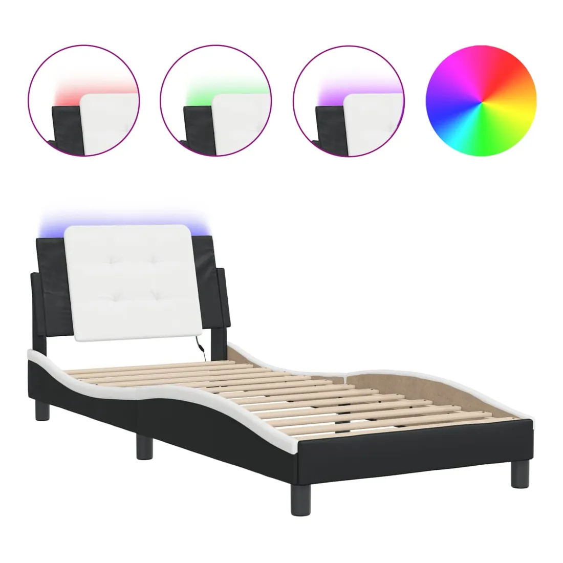 Obtenez une meilleure nuit de sommeil reposante grâce à ce cadre de lit avec lumières LED ! Il est un supplément accueillant à toute chambre à coucher. Similicuir durable : le similicuir de qualité supérieure est un matériau très durable. Il est résistant aux taches, ce qui le rend facile à nettoyer avec un chiffon humide. La surface lisse donne également un aspect luxueux et la beauté du cuir véritable.Lattes de contreplaqué : les lattes de contreplaqué assurent une bonne répartition du poids, garantissant que le matelas reste en place à chaque torsion de votre corps pendant le sommeil.Excellent soutien : la tête de lit vous offre un excellent soutien du dos lorsque vous êtes assis dans votre lit pour lire ou regarder la télévision.Bande LED colorée : apportez de la gaieté dans l'obscurité avec des lumières LED colorées ! Les bandes auto-agrippantes situées à l'arrière du coussin de la tête de lit peuvent être utilisées pour fixer les lumières LED.Design latéral ondulé : l’aspect ondulé du cadre de lit est élégant et sophistiqué, ajoutant une touche moderne et élégante à votre décor, ce qui en fait le point central de votre chambre à coucher. Bon à savoir :Un matelas n'est pas inclus avec ce lit. Nous offrons une sélection variée de matelas. Vous pouvez consulter notre boutique pour trouver un matelas assorti.Ce produit est doté d'un connecteur USB qui nécessite une source d'alimentation USB de 5V certifiée (non incluse).