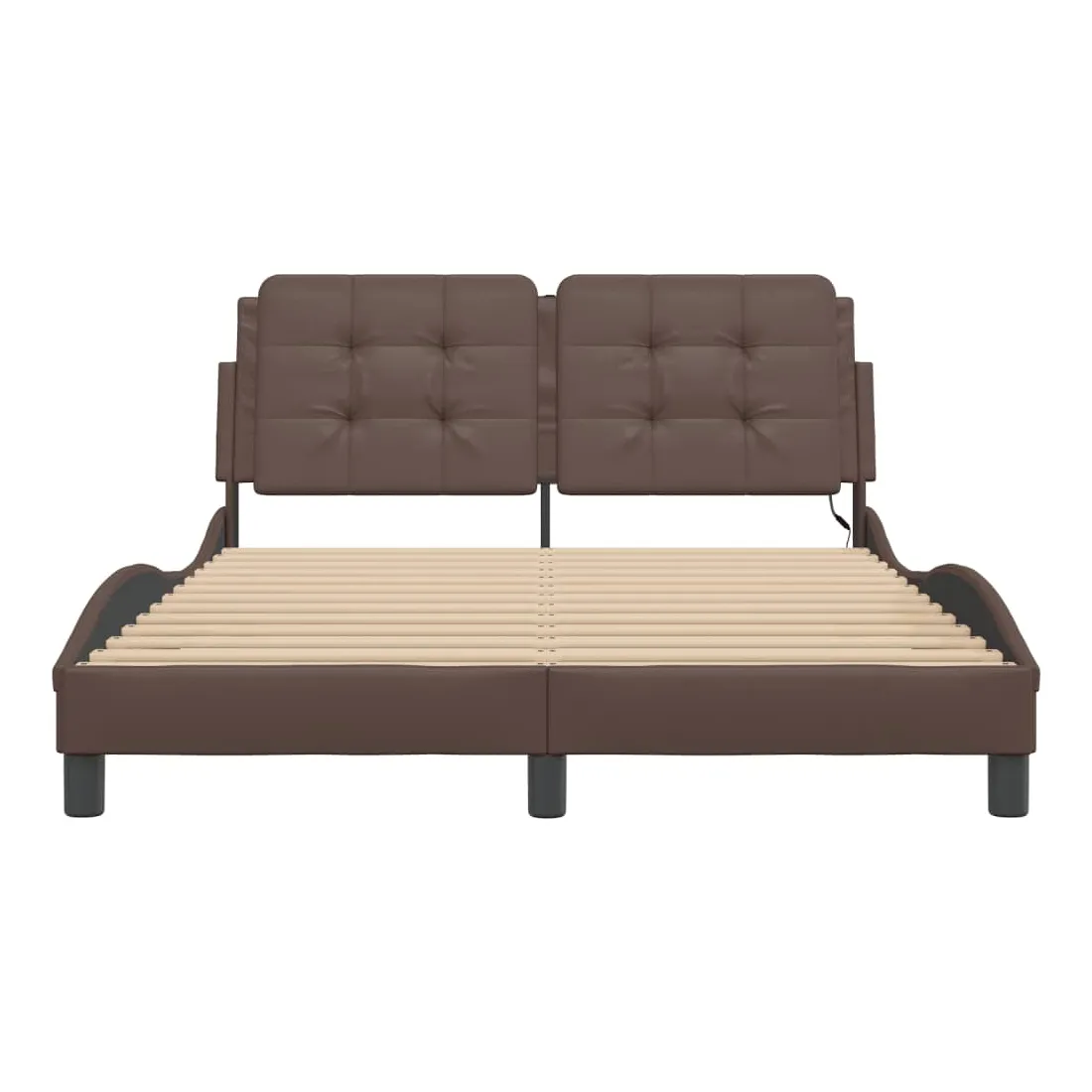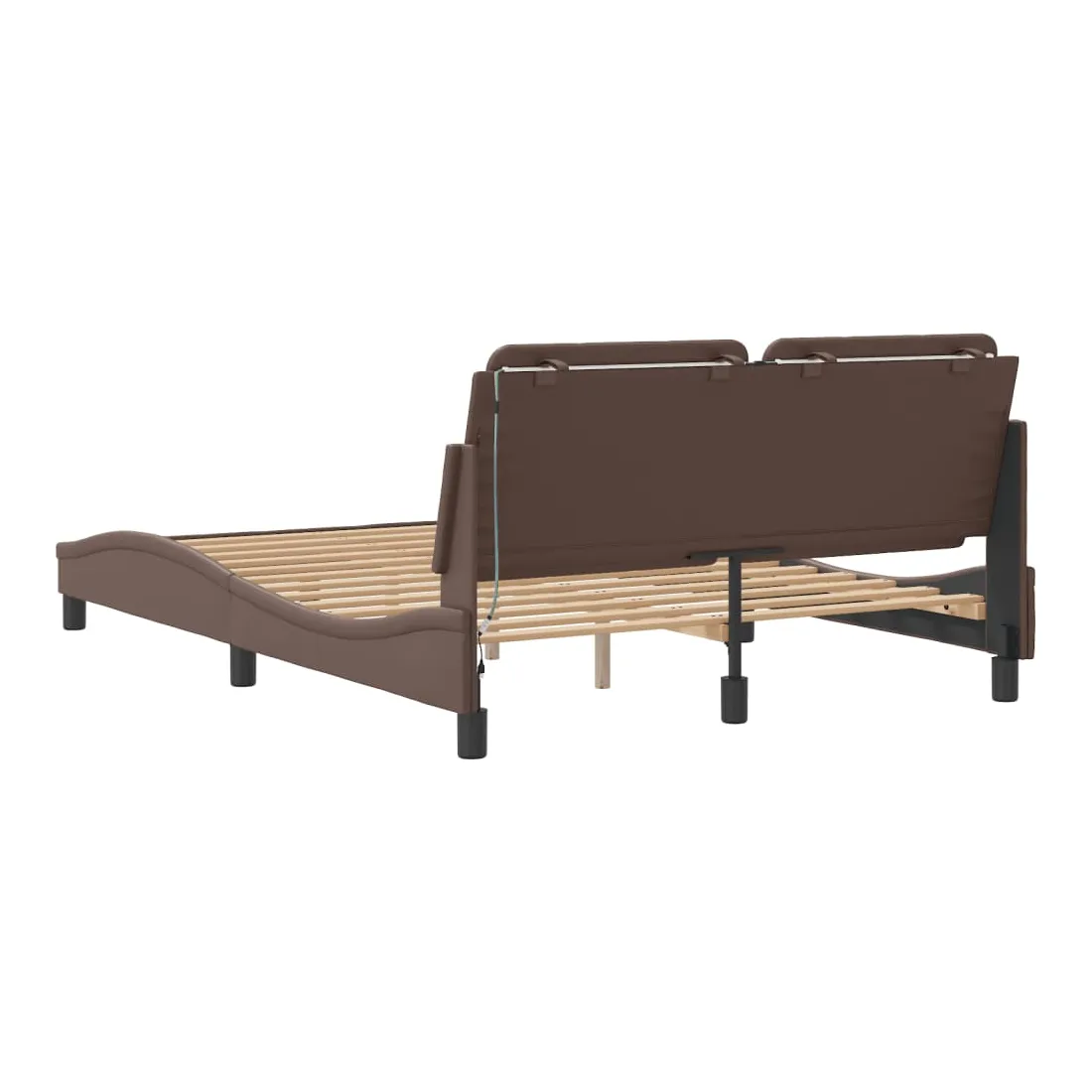 Obtenez une meilleure nuit de sommeil reposante grâce à ce cadre de lit avec lumières LED ! Il est un supplément accueillant à toute chambre à coucher. Similicuir durable : le similicuir de qualité supérieure est un matériau très durable. Il est résistant aux taches, ce qui le rend facile à nettoyer avec un chiffon humide. La surface lisse donne également un aspect luxueux et la beauté du cuir véritable.Lattes de contreplaqué : les lattes de contreplaqué assurent une bonne répartition du poids, garantissant que le matelas reste en place à chaque torsion de votre corps pendant le sommeil.Excellent soutien : la tête de lit vous offre un excellent soutien du dos lorsque vous êtes assis dans votre lit pour lire ou regarder la télévision.Bande LED colorée : apportez de la gaieté dans l'obscurité avec des lumières LED colorées ! Les bandes auto-agrippantes situées à l'arrière du coussin de la tête de lit peuvent être utilisées pour fixer les lumières LED.Design latéral ondulé : l’aspect ondulé du cadre de lit est élégant et sophistiqué, ajoutant une touche moderne et élégante à votre décor, ce qui en fait le point central de votre chambre à coucher. Bon à savoir :Un matelas n'est pas inclus avec ce lit. Nous offrons une sélection variée de matelas. Vous pouvez consulter notre boutique pour trouver un matelas assorti.Ce produit est doté d'un connecteur USB qui nécessite une source d'alimentation USB de 5V certifiée (non incluse).