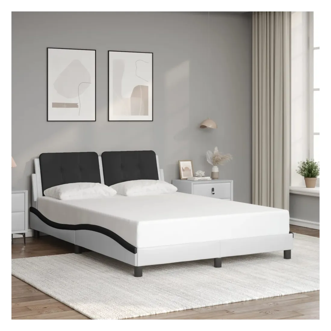 Obtenez une meilleure nuit de sommeil reposante grâce à ce cadre de lit avec lumières LED ! Il est un supplément accueillant à toute chambre à coucher. Similicuir durable : le similicuir de qualité supérieure est un matériau très durable. Il est résistant aux taches, ce qui le rend facile à nettoyer avec un chiffon humide. La surface lisse donne également un aspect luxueux et la beauté du cuir véritable.Lattes de contreplaqué : les lattes de contreplaqué assurent une bonne répartition du poids, garantissant que le matelas reste en place à chaque torsion de votre corps pendant le sommeil.Excellent soutien : la tête de lit vous offre un excellent soutien du dos lorsque vous êtes assis dans votre lit pour lire ou regarder la télévision.Bande LED colorée : apportez de la gaieté dans l'obscurité avec des lumières LED colorées ! Les bandes auto-agrippantes situées à l'arrière du coussin de la tête de lit peuvent être utilisées pour fixer les lumières LED.Design latéral ondulé : l’aspect ondulé du cadre de lit est élégant et sophistiqué, ajoutant une touche moderne et élégante à votre décor, ce qui en fait le point central de votre chambre à coucher. Bon à savoir :Un matelas n'est pas inclus avec ce lit. Nous offrons une sélection variée de matelas. Vous pouvez consulter notre boutique pour trouver un matelas assorti.Ce produit est doté d'un connecteur USB qui nécessite une source d'alimentation USB de 5V certifiée (non incluse).