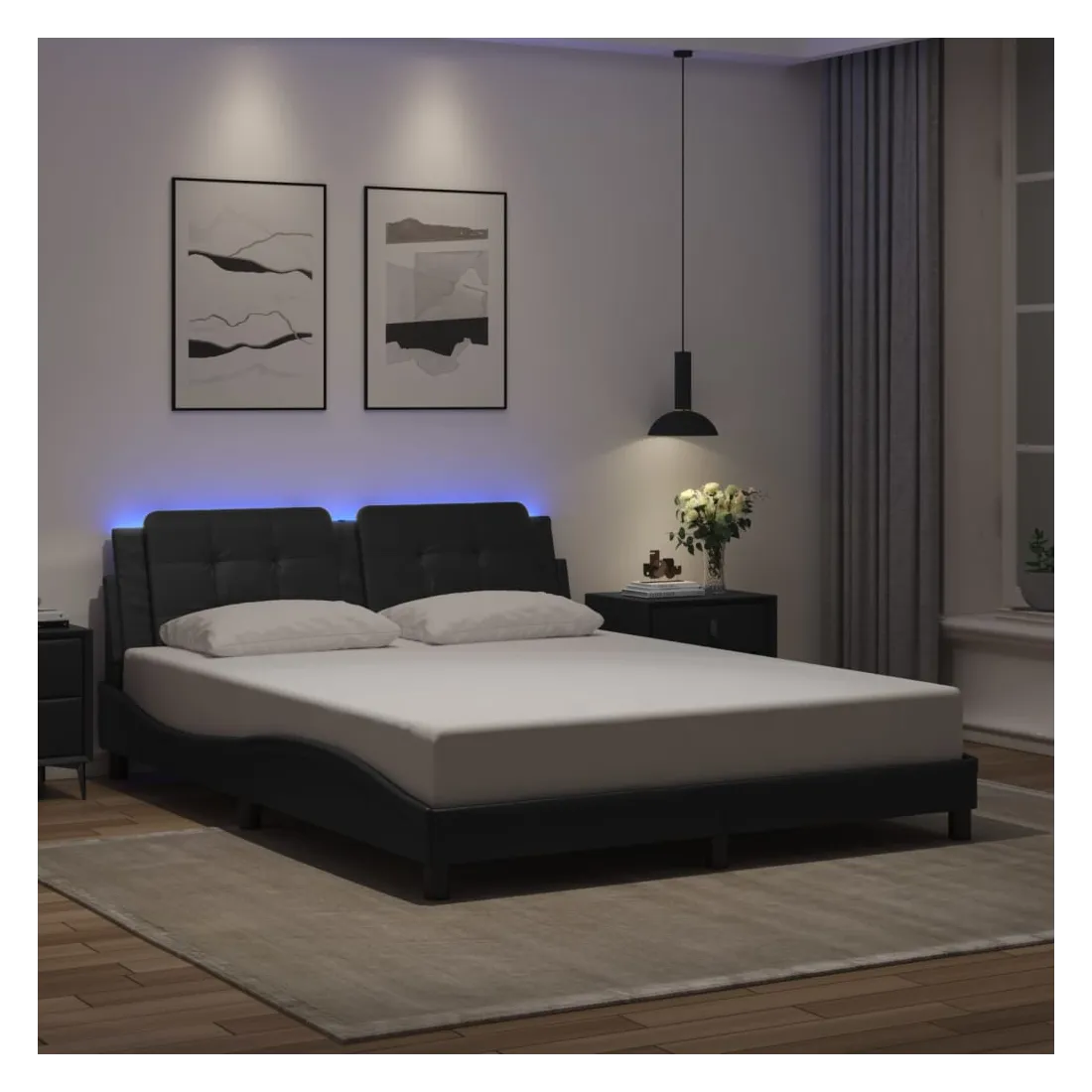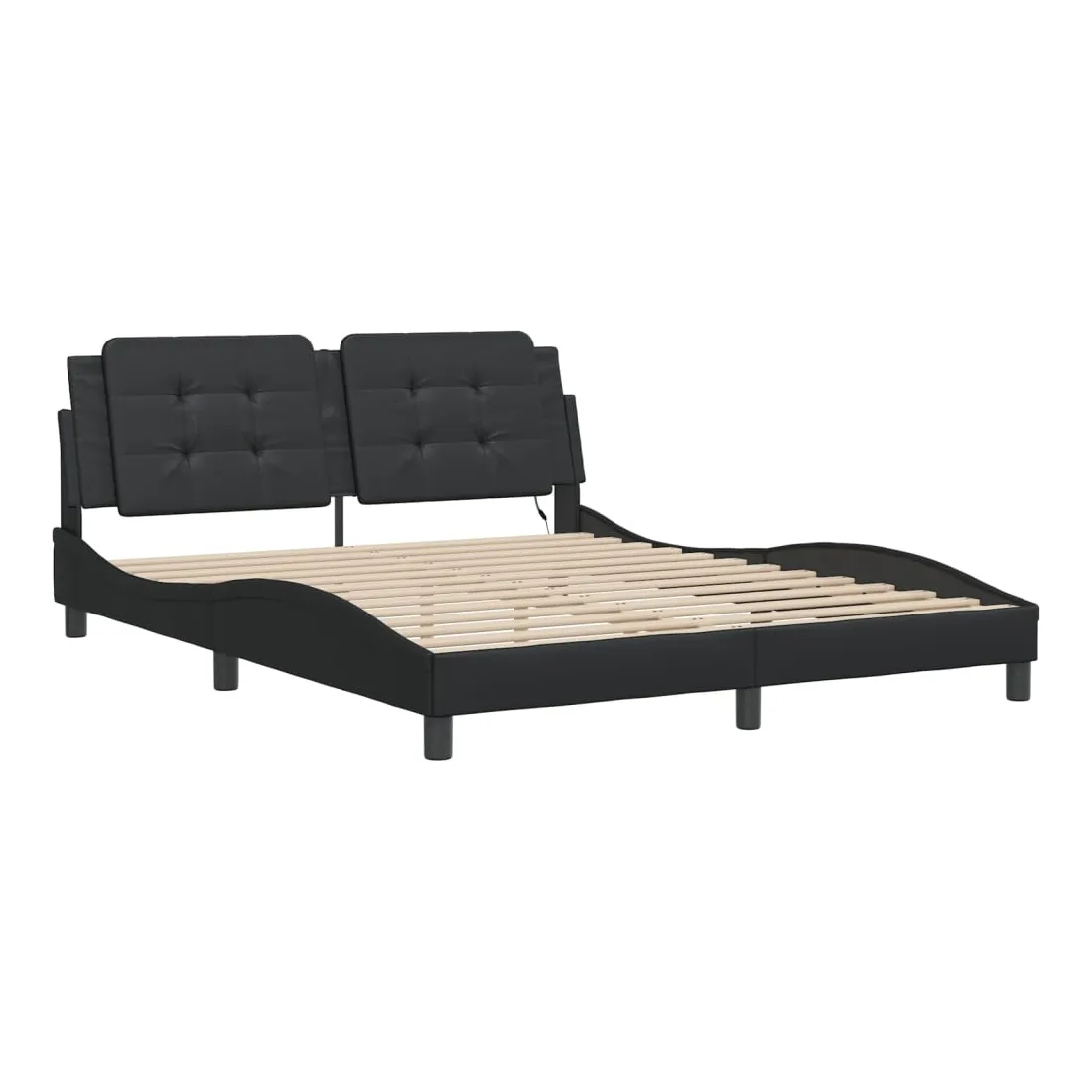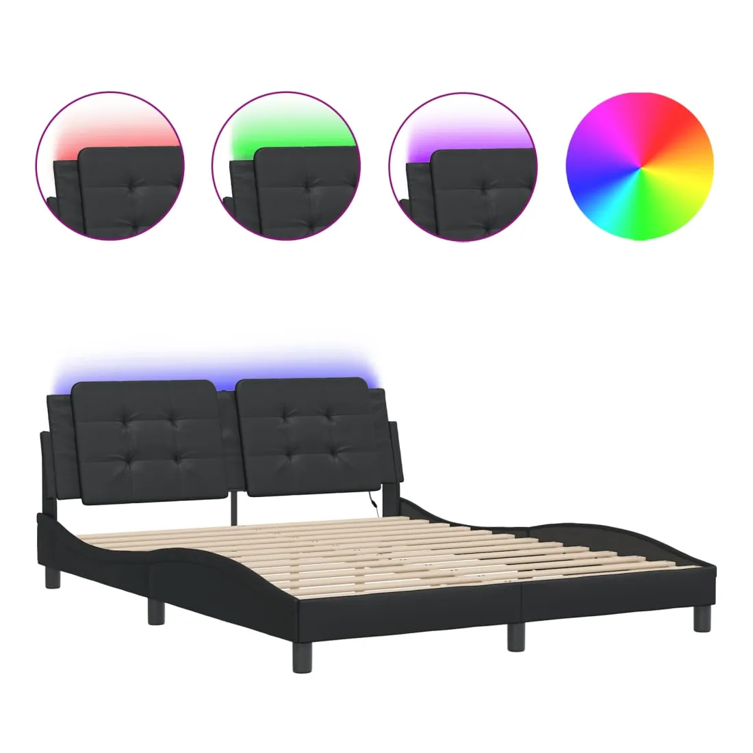 Obtenez une meilleure nuit de sommeil reposante grâce à ce cadre de lit avec lumières LED ! Il est un supplément accueillant à toute chambre à coucher. Similicuir durable : le similicuir de qualité supérieure est un matériau très durable. Il est résistant aux taches, ce qui le rend facile à nettoyer avec un chiffon humide. La surface lisse donne également un aspect luxueux et la beauté du cuir véritable.Lattes de contreplaqué : les lattes de contreplaqué assurent une bonne répartition du poids, garantissant que le matelas reste en place à chaque torsion de votre corps pendant le sommeil.Excellent soutien : la tête de lit vous offre un excellent soutien du dos lorsque vous êtes assis dans votre lit pour lire ou regarder la télévision.Bande LED colorée : apportez de la gaieté dans l'obscurité avec des lumières LED colorées ! Les bandes auto-agrippantes situées à l'arrière du coussin de la tête de lit peuvent être utilisées pour fixer les lumières LED.Design latéral ondulé : l’aspect ondulé du cadre de lit est élégant et sophistiqué, ajoutant une touche moderne et élégante à votre décor, ce qui en fait le point central de votre chambre à coucher. Bon à savoir :Un matelas n'est pas inclus avec ce lit. Nous offrons une sélection variée de matelas. Vous pouvez consulter notre boutique pour trouver un matelas assorti.Ce produit est doté d'un connecteur USB qui nécessite une source d'alimentation USB de 5V certifiée (non incluse).