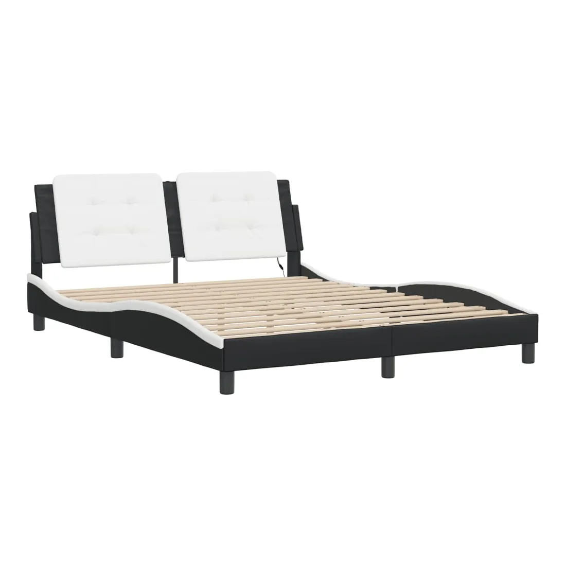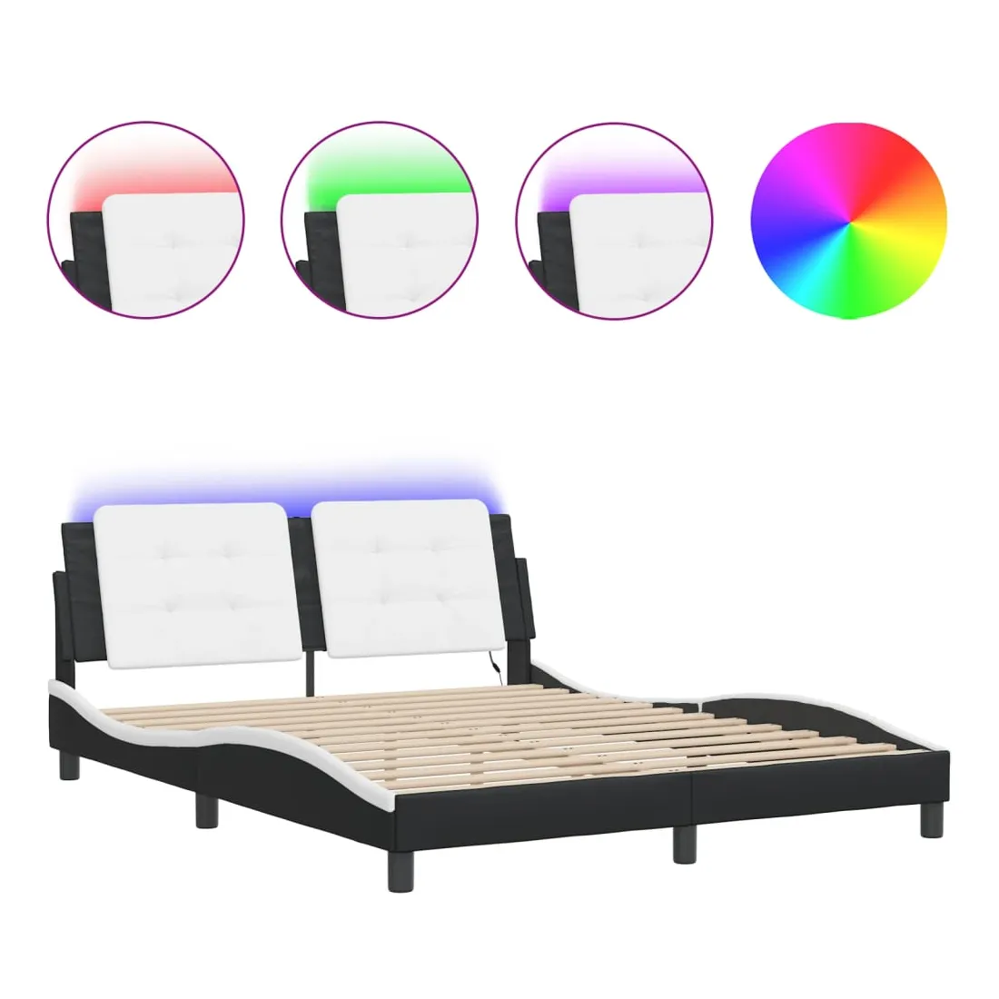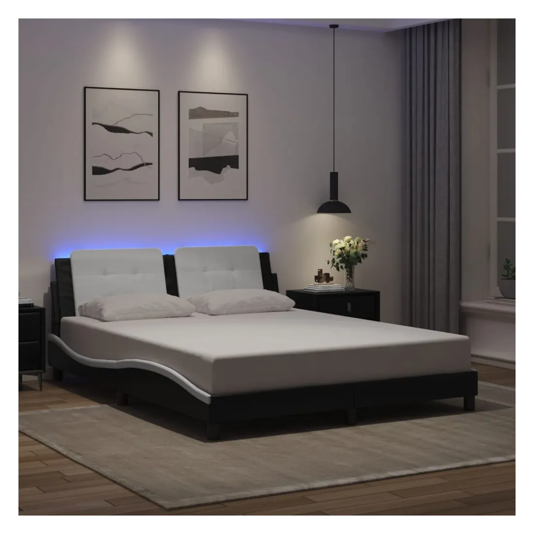 Obtenez une meilleure nuit de sommeil reposante grâce à ce cadre de lit avec lumières LED ! Il est un supplément accueillant à toute chambre à coucher. Similicuir durable : le similicuir de qualité supérieure est un matériau très durable. Il est résistant aux taches, ce qui le rend facile à nettoyer avec un chiffon humide. La surface lisse donne également un aspect luxueux et la beauté du cuir véritable.Lattes de contreplaqué : les lattes de contreplaqué assurent une bonne répartition du poids, garantissant que le matelas reste en place à chaque torsion de votre corps pendant le sommeil.Excellent soutien : la tête de lit vous offre un excellent soutien du dos lorsque vous êtes assis dans votre lit pour lire ou regarder la télévision.Bande LED colorée : apportez de la gaieté dans l'obscurité avec des lumières LED colorées ! Les bandes auto-agrippantes situées à l'arrière du coussin de la tête de lit peuvent être utilisées pour fixer les lumières LED.Design latéral ondulé : l’aspect ondulé du cadre de lit est élégant et sophistiqué, ajoutant une touche moderne et élégante à votre décor, ce qui en fait le point central de votre chambre à coucher. Bon à savoir :Un matelas n'est pas inclus avec ce lit. Nous offrons une sélection variée de matelas. Vous pouvez consulter notre boutique pour trouver un matelas assorti.Ce produit est doté d'un connecteur USB qui nécessite une source d'alimentation USB de 5V certifiée (non incluse).
