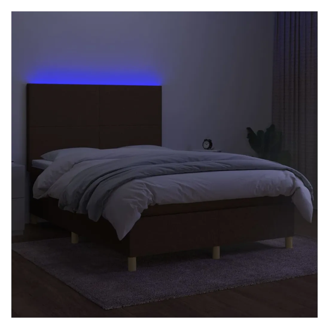 Utilisez ce sommier tapissier avec matelas et LED pour profiter d'un sommeil réparateur ! C'est le point central de votre chambre à coucher. Tissu durable : le tissu présente un aspect simple et épuré, et il est respirant et durable.Tête de lit pratique : la tête de lit est réglable en hauteur selon vos préférences. La tête de lit vous offre un excellent soutien du dos lorsque vous êtes assis dans votre lit pour lire ou regarder la télévision.Bande LED colorée : apportez de l'éclairage dans l'obscurité avec des lumières LED colorées !Matelas à ressorts ensachés : le ressort ensaché individuel intégré est connu pour sa très haute qualité tout en assurant un haut niveau de durabilité et d'adaptabilité. Il peut absorber efficacement le bruit et les chocs causés par les sauts et les rotations.Protège-matelas doux pour la peau : le protège-matelas est recouvert d'un tissu résistant et doux pour la peau, ce qui le rend souple et confortable. Remarque :Pour des raisons d'hygiène, le matelas ne peut pas être retourné si l'emballage est retiré ou ouvert.Seule la partie avec un symbole de ciseaux peut être coupée et seule la partie avec l'USB continuera à fonctionner comme avant.Chaque produit est livré avec un manuel de montage dans la boîte pour un montage facile.Ce produit est doté d'un connecteur USB, mais la source d'alimentation certifiée de USB 5V n'est pas incluse.