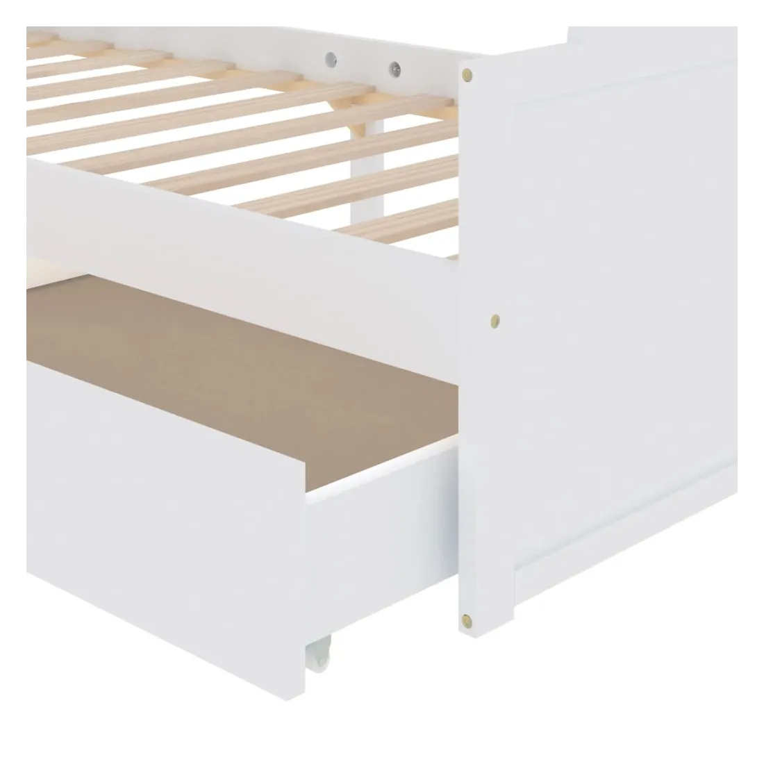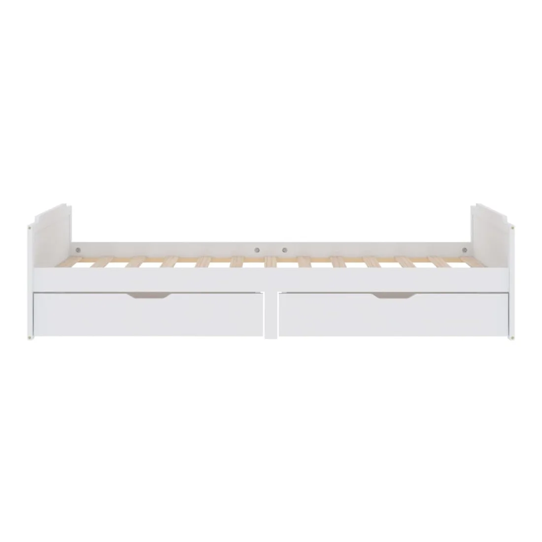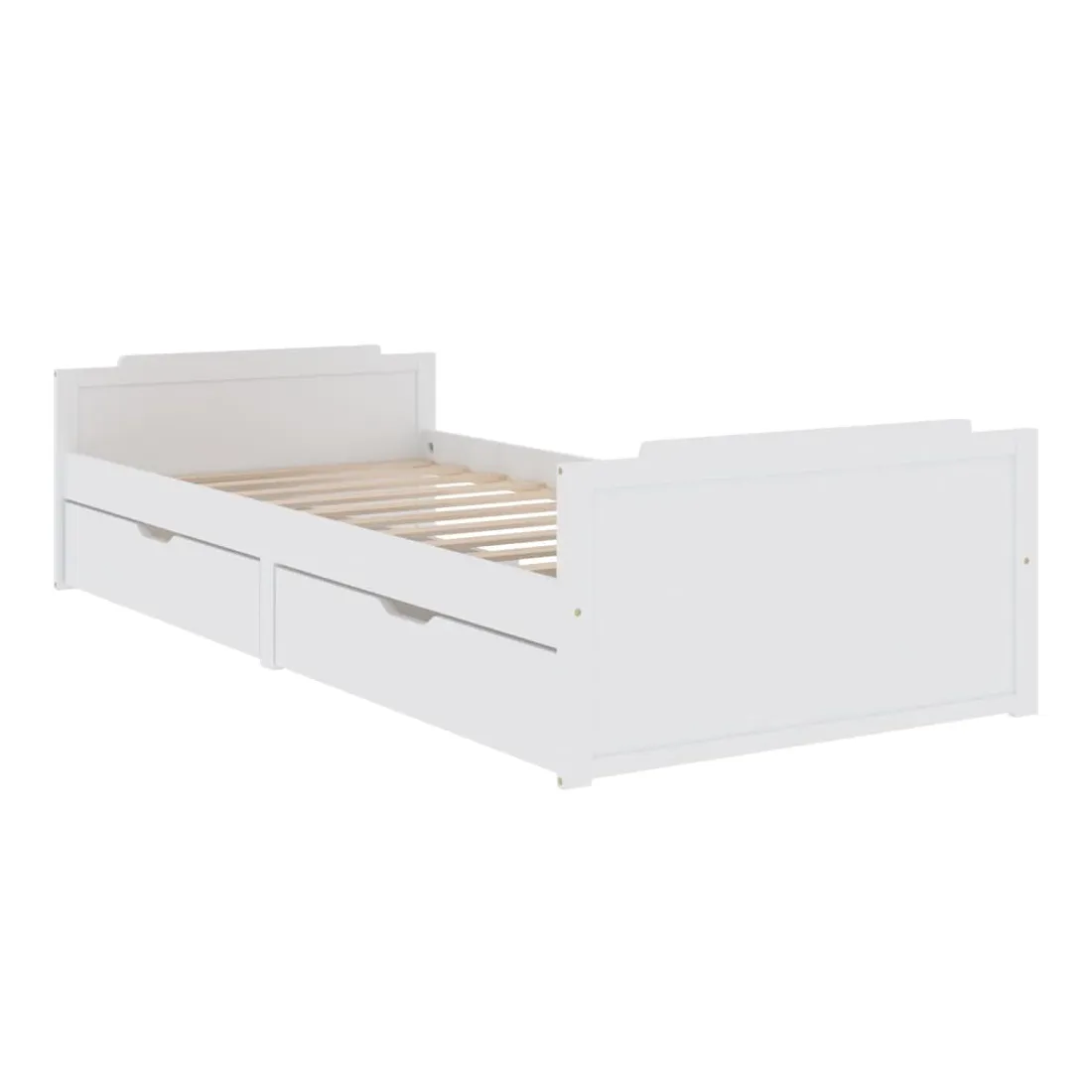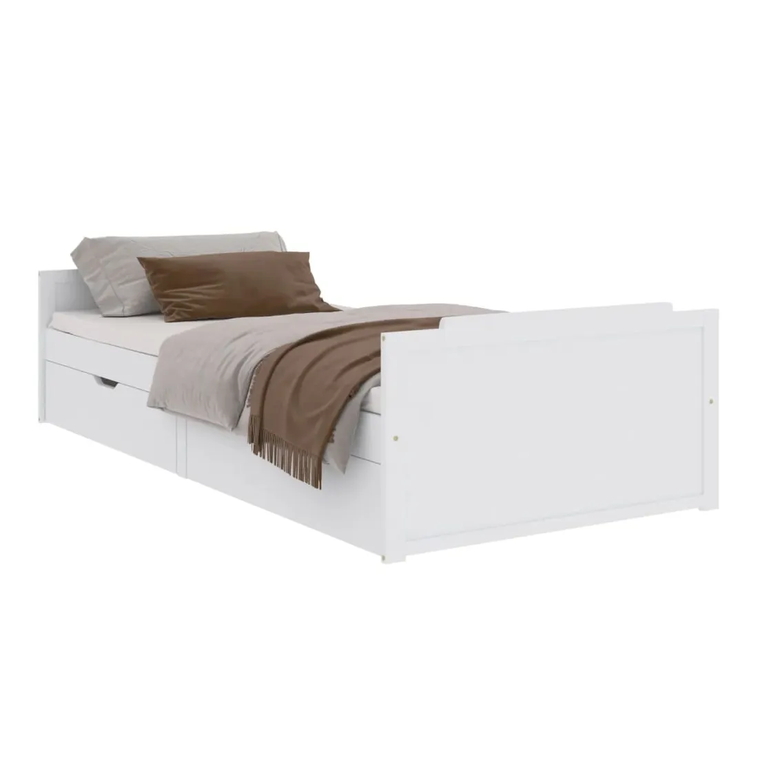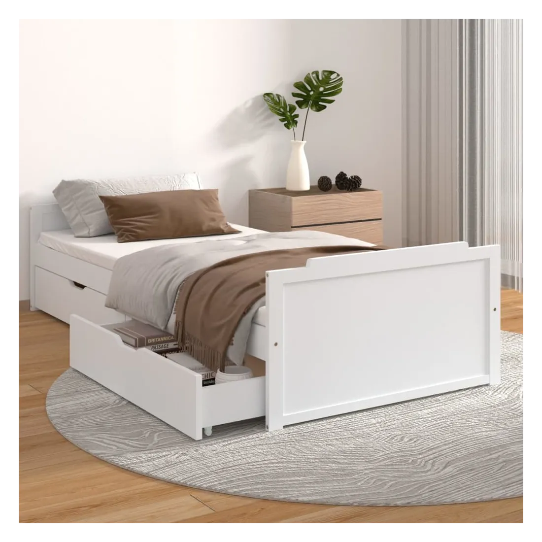 Ce cadre de lit est un supplément pratique et décoratif à votre chambre à coucher. Matériau de première qualité : le bois de pin massif est un matériau naturel magnifique. Le bois de pin a un grain droit et les nœuds donnent au matériau son aspect caractéristique et rustique.Lattes robustes : les lattes robustes offrent le soutien et le confort nécessaires. Vous pouvez profiter d'une excellente expérience de sommeil chaque nuit dans ce lit !Fonction de rangement : les tiroirs de lit inclus offrent suffisamment d'espace de rangement pour ranger vos articles essentiels, gardant votre pièce propre et bien rangée. Remarque :La livraison comprend uniquement le cadre de lit. Les matelas ne sont pas inclus. Vous pouvez consulter notre boutique pour trouver les matelas assortis.