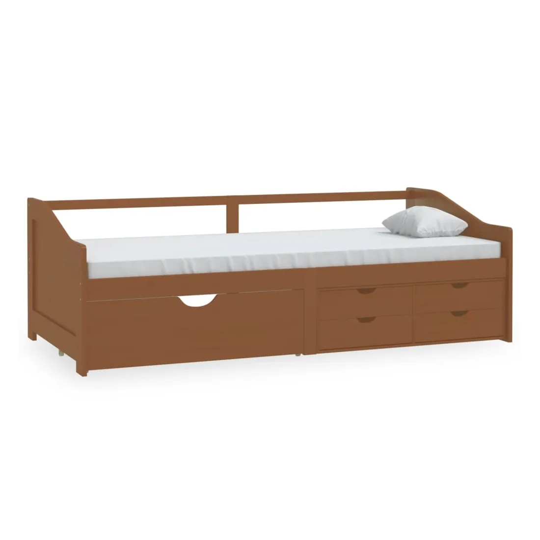 Le lit en bois multifonctionnel peut être utilisé comme un canapé pendant la journée, ou comme un lit pendant la nuit pour offrir une solution rapide pour accueillir des invités pour la nuit. Ce canapé-lit pratique saura attirer tous les regards, où qu'il sera placé ! Le canapé-lit est fabriqué en bois de pin massif, ce qui le rend robuste et stable. Les lattes robustes offrent également le soutien et le confort nécessaires. De plus, il comprend également 5 tiroirs de lit pour ranger les vêtements pliés, les jouets, etc. Remarque : la livraison comprend uniquement un cadre de lit de jour. Le matelas n'est pas inclus. Vous pouvez consulter notre boutique pour trouver les matelas assortis.