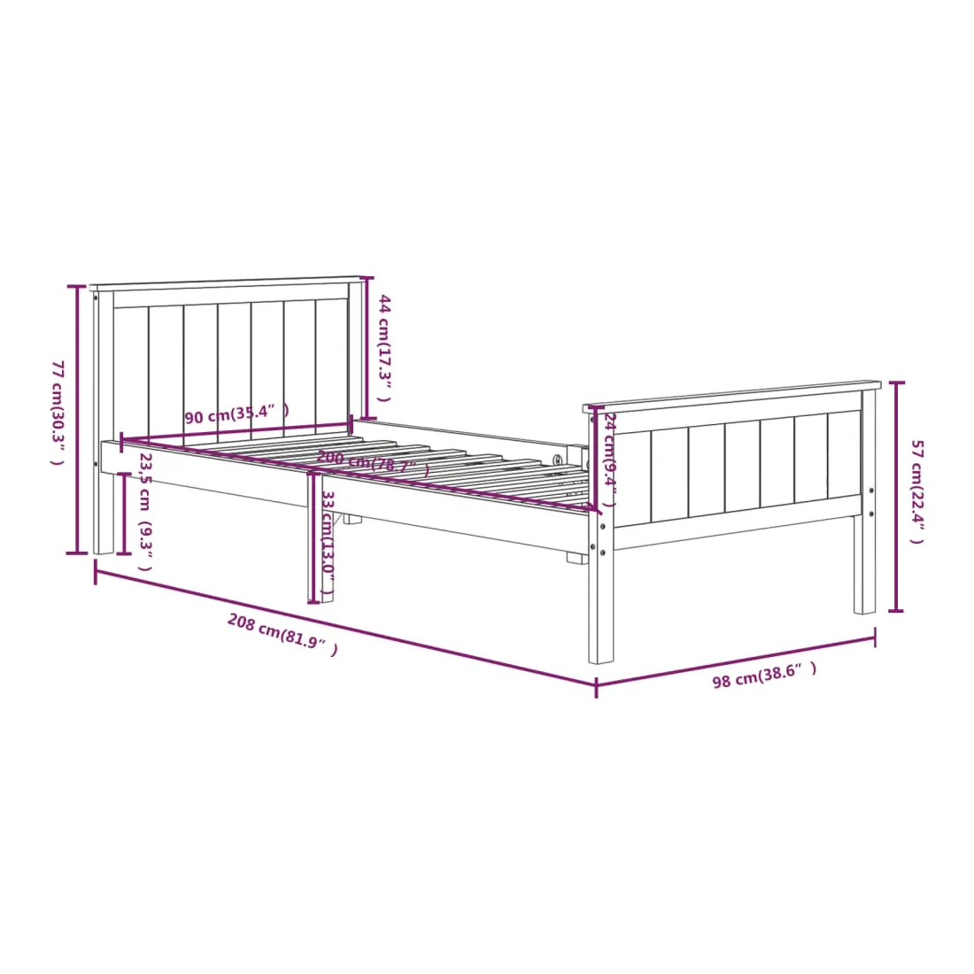 - Taille de matelas appropriée : 90 x 200 cm (l x L) (matelas non inclus)