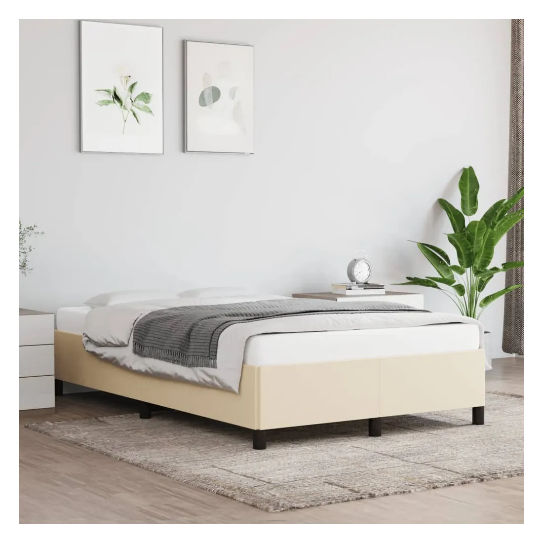 Obtenez une meilleure nuit de sommeil reposante grâce à ce cadre de lit ! Il est un supplément accueillant à toute chambre à coucher. Tissu durable : le tissu présente un aspect simple et épuré, et il est respirant et durable.Pieds de soutien : le lit est soutenu par des pieds robustes, qui assurent sa stabilité, sa sécurité et sa fermeté.Lattes de contreplaqué : les lattes de contreplaqué assurent une bonne répartition du poids, garantissant que le matelas reste en place à chaque torsion de votre corps pendant le sommeil. Bon à savoir :La livraison comprend uniquement un cadre de lit. Le matelas n'est pas inclus. Vous pouvez consulter notre boutique pour trouver les matelas assortis.