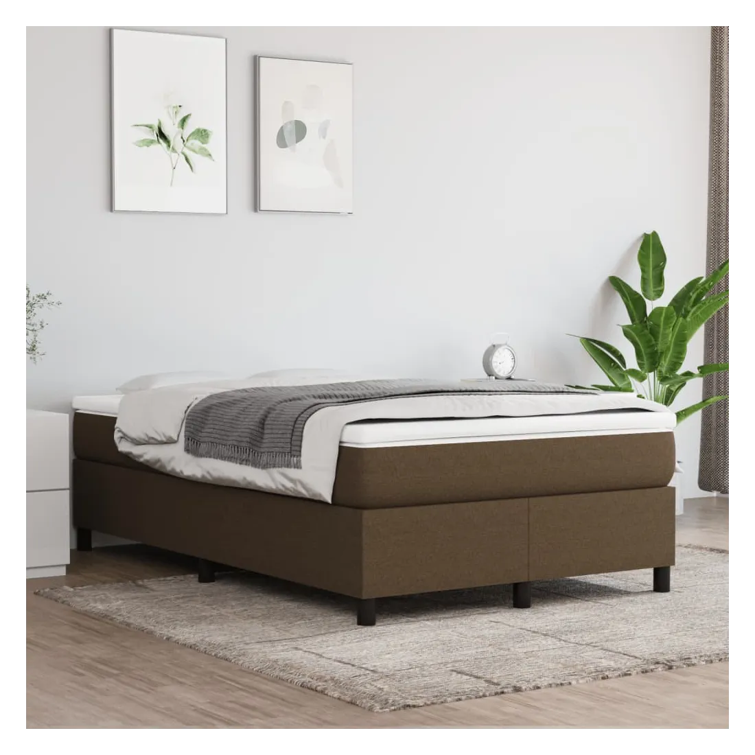 Sommier à lattes de lit et matelas marron foncé 120x190cm tissu