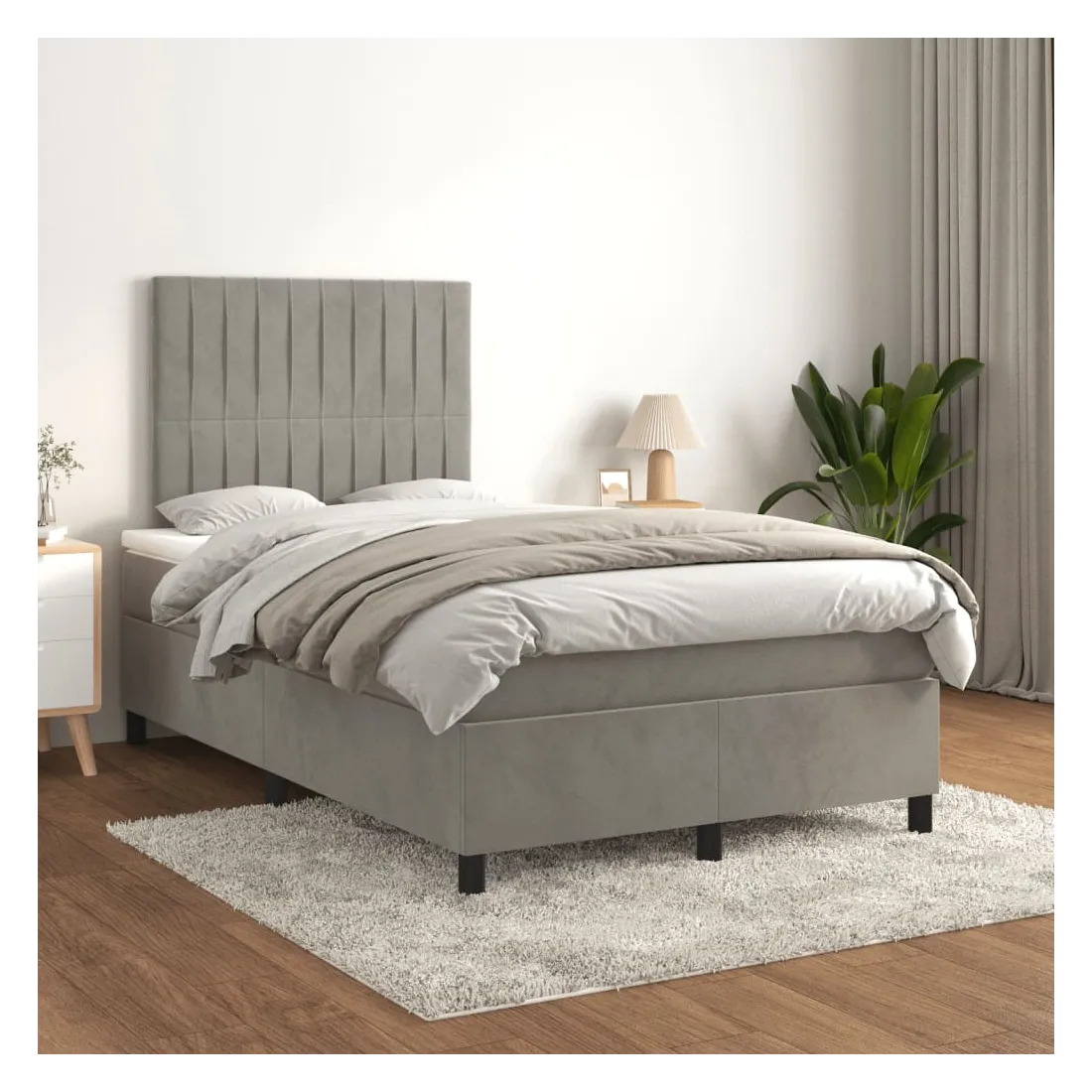 Sommier à lattes de lit et matelas gris clair 120x190cm velours