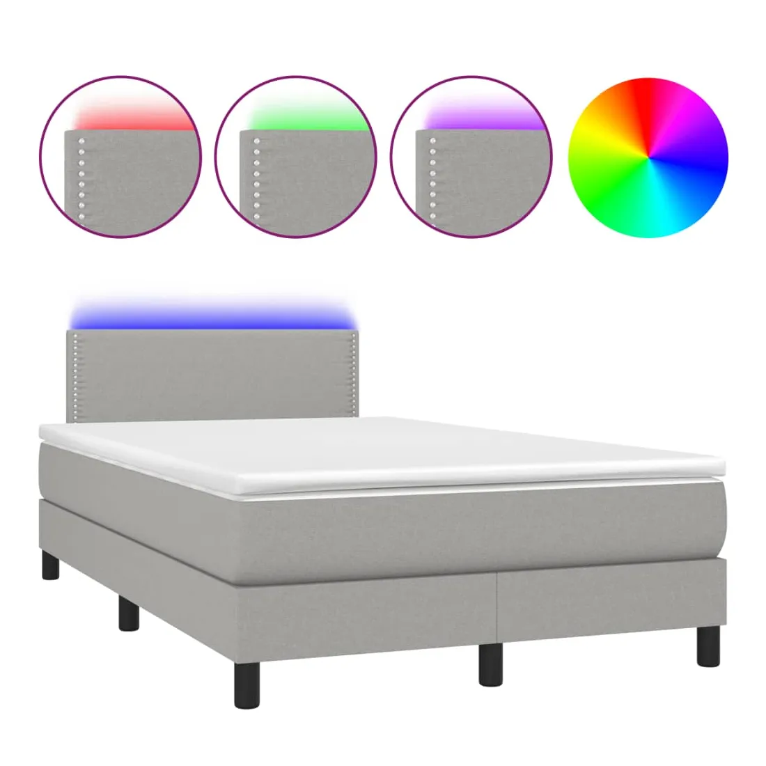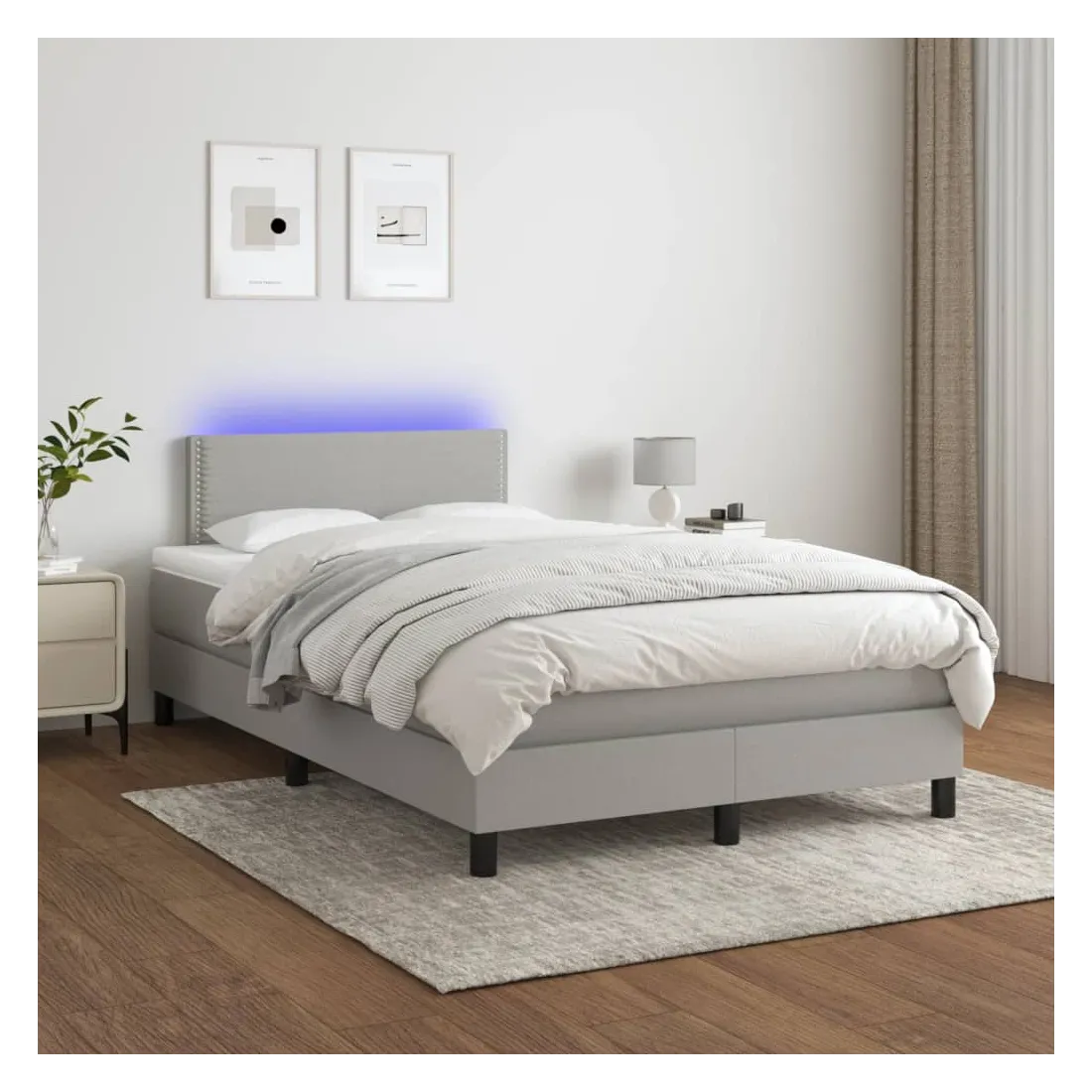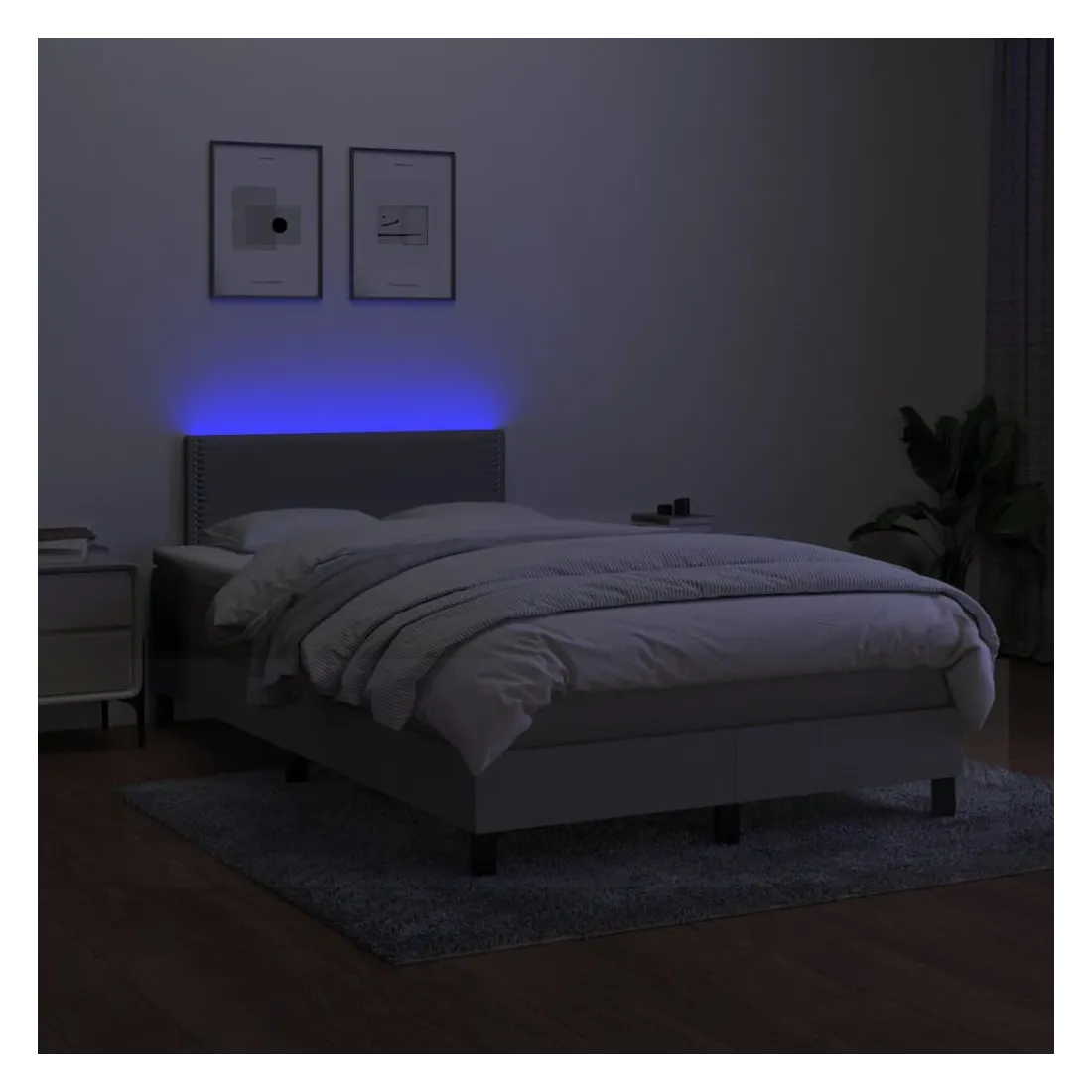 Utilisez ce sommier tapissier avec matelas et LED pour profiter d'un sommeil réparateur ! C'est le point central de votre chambre à coucher. Tissu durable : le tissu présente un aspect simple et épuré, et il est respirant et durable.Tête de lit pratique : la tête de lit est réglable en hauteur selon vos préférences. La tête de lit vous offre un excellent soutien du dos lorsque vous êtes assis dans votre lit pour lire ou regarder la télévision.Bande LED colorée : apportez de l'éclairage dans l'obscurité avec des lumières LED colorées !Matelas à ressorts ensachés : le ressort ensaché individuel intégré est connu pour sa très haute qualité tout en assurant un haut niveau de durabilité et d'adaptabilité. Il peut absorber efficacement le bruit et les chocs causés par les sauts et les rotations.Protège-matelas doux pour la peau : le protège-matelas est recouvert d'un tissu résistant et doux pour la peau, ce qui le rend souple et confortable. Bon à savoir :Pour des raisons d'hygiène, le matelas ne peut pas être retourné si l'emballage est retiré ou ouvert.Seule la partie avec un symbole de ciseaux peut être coupée et seule la partie avec l'USB continuera à fonctionner comme avant.Ce produit est doté d'un connecteur USB qui nécessite une source d'alimentation USB de 5V certifiée (non incluse).