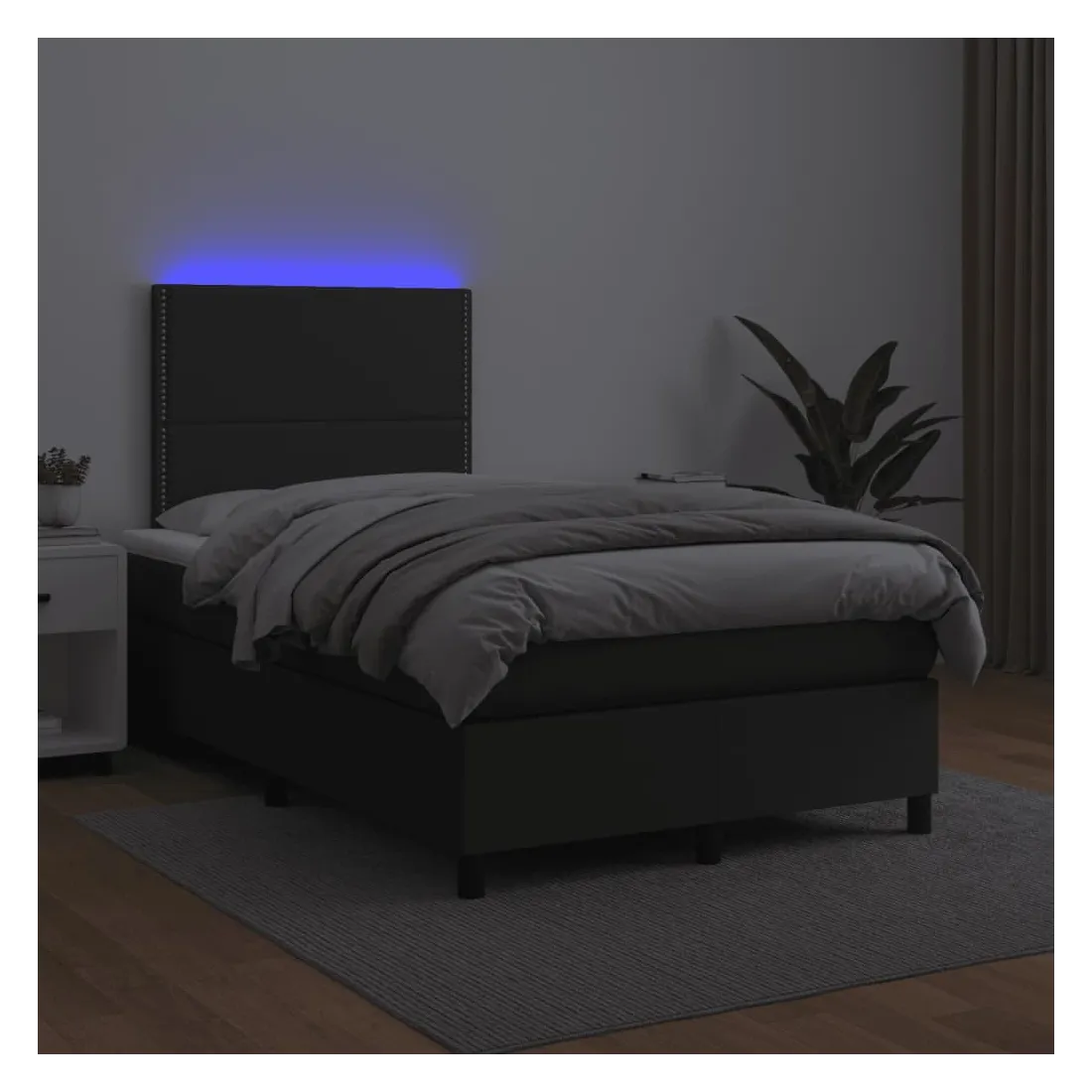 Utilisez ce sommier tapissier avec matelas et LED pour profiter d'un sommeil réparateur ! C'est le point central de votre chambre à coucher. Similicuir durable : le similicuir de qualité supérieure est un matériau très durable. Il est résistant aux taches, ce qui le rend facile à nettoyer avec un chiffon humide. La surface lisse donne également un aspect luxueux et la beauté du cuir véritable.Tête de lit pratique : la tête de lit est réglable en hauteur selon vos préférences. La tête de lit vous offre un excellent soutien du dos lorsque vous êtes assis dans votre lit pour lire ou regarder la télévision.Bande LED colorée : apportez de l'éclairage dans l'obscurité avec des lumières LED colorées !Matelas à ressorts ensachés : le ressort ensaché individuel intégré est connu pour sa très haute qualité tout en assurant un haut niveau de durabilité et d'adaptabilité. Il peut absorber efficacement le bruit et les chocs causés par les sauts et les rotations.Protège-matelas doux pour la peau : le protège-matelas est recouvert d'un tissu résistant et doux pour la peau, ce qui le rend souple et confortable. Bon à savoir :Pour des raisons d'hygiène, le matelas ne peut pas être retourné si l'emballage est retiré ou ouvert.Seule la partie avec un symbole de ciseaux peut être coupée et seule la partie avec l'USB continuera à fonctionner comme avant.Ce produit est doté d'un connecteur USB qui nécessite une source d'alimentation USB de 5V certifiée (non incluse).