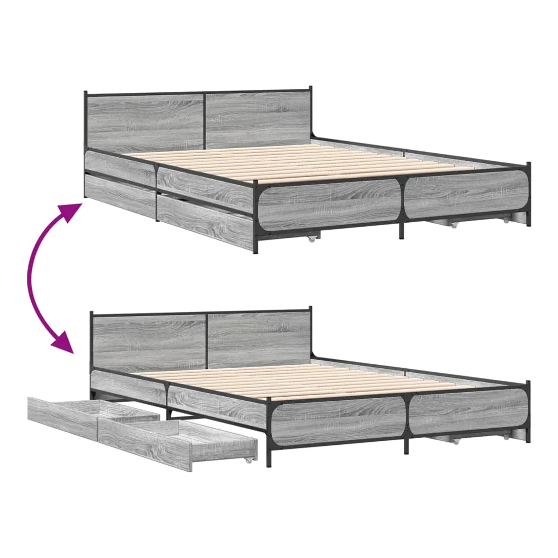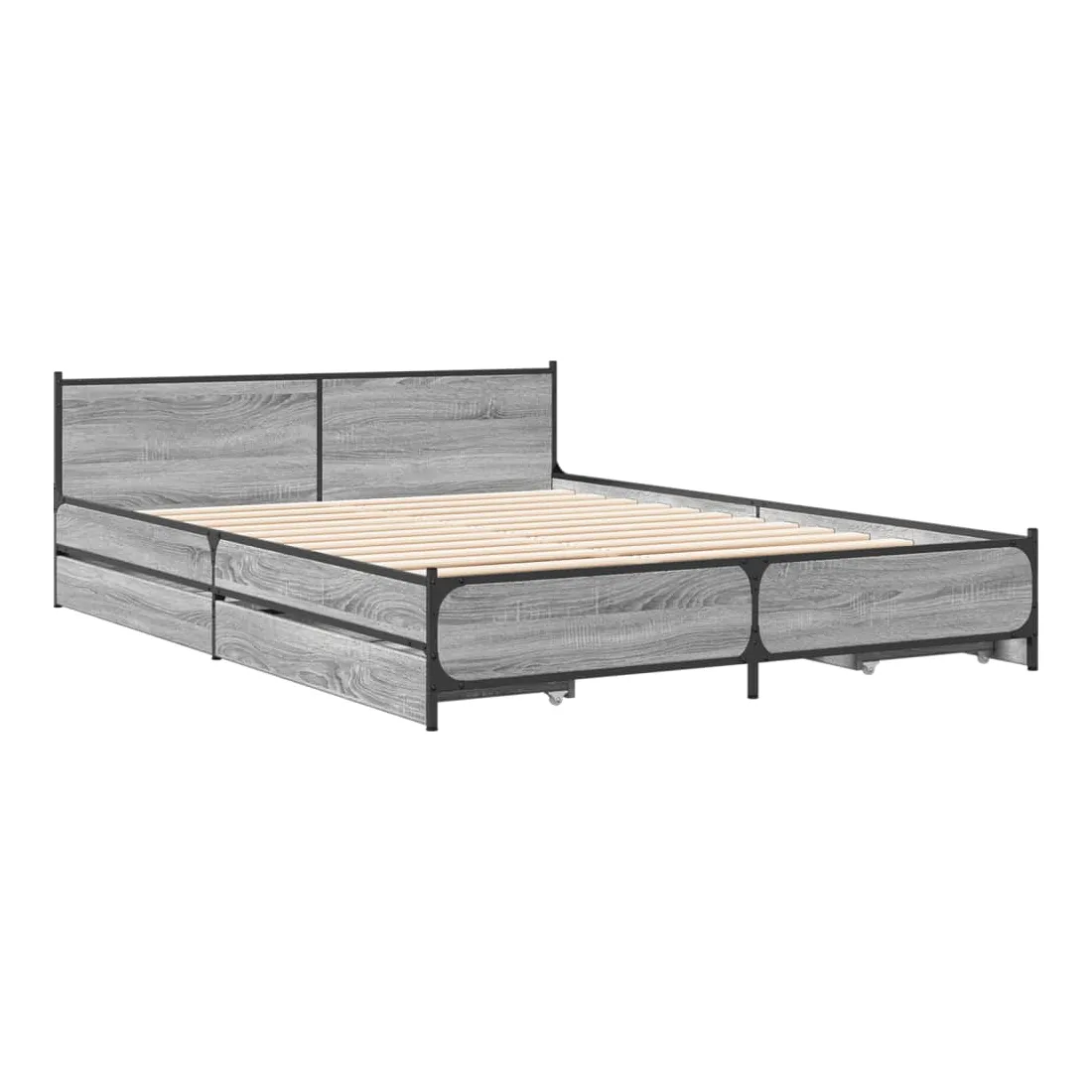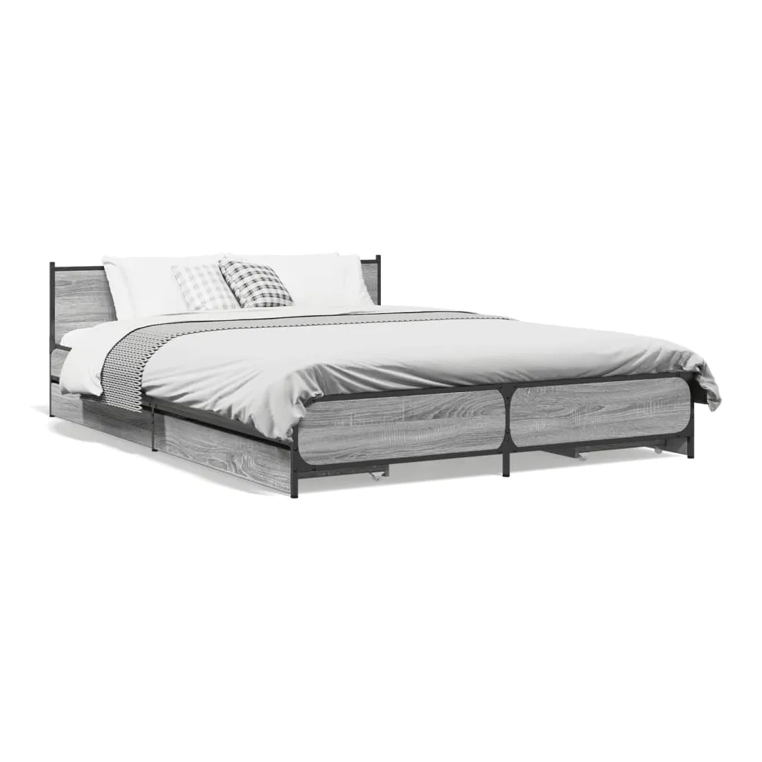 Cadre de lit avec tiroirs sans matelas sonoma gris 135x190 cm