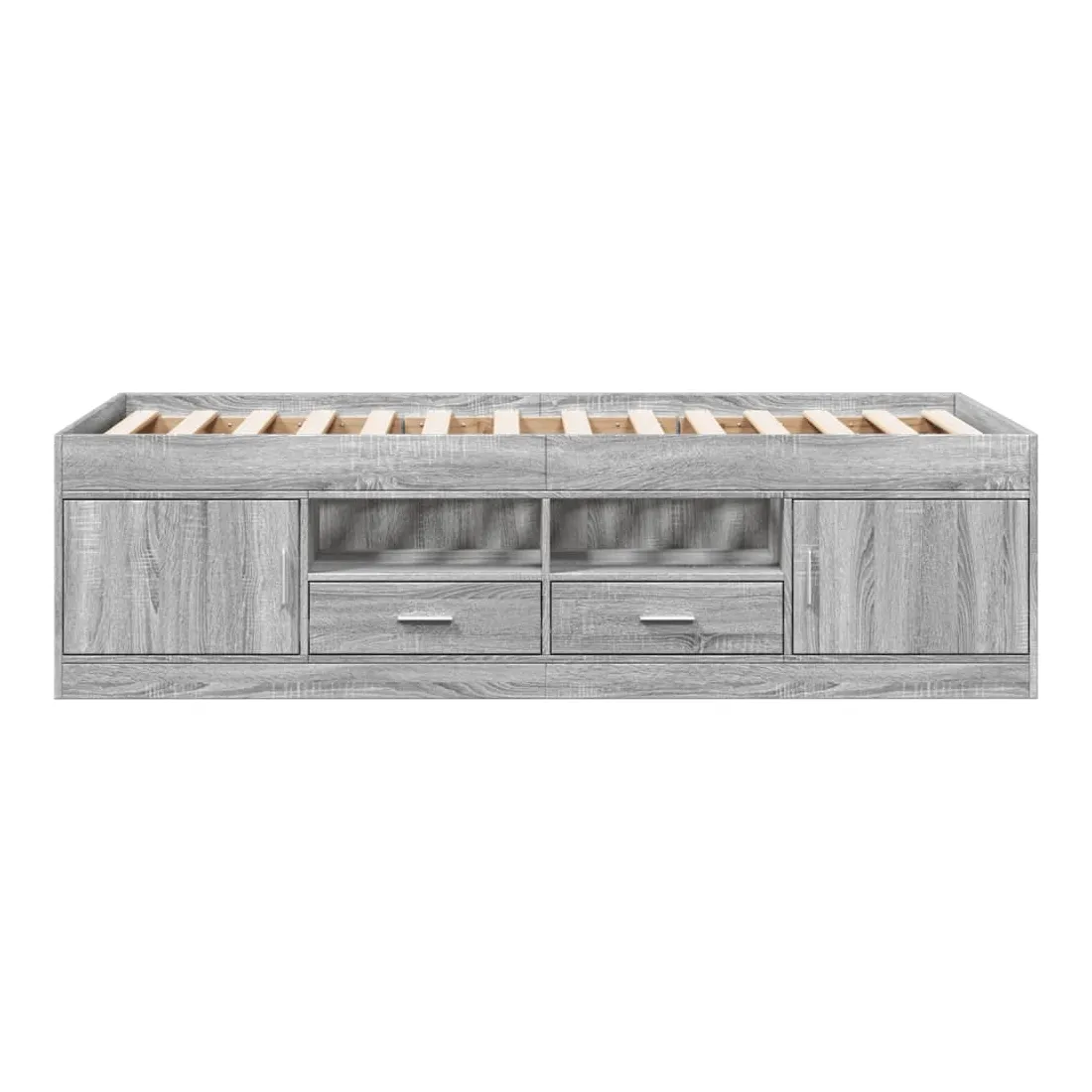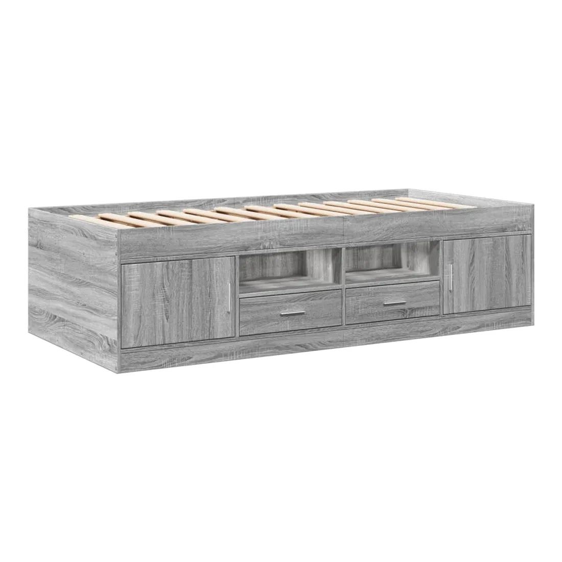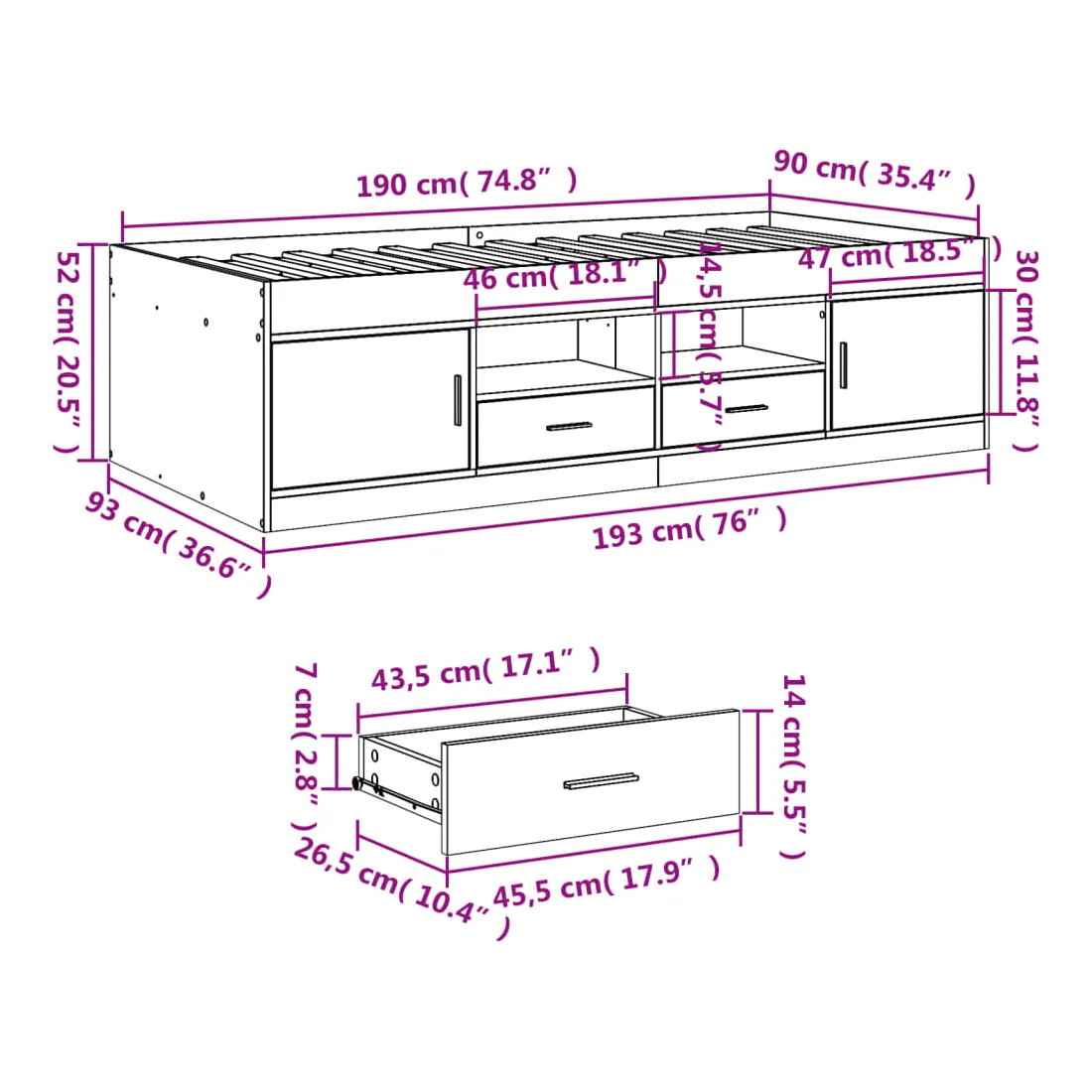 Ce lit de jour polyvalent peut être utilisé non seulement comme lit dans la chambre à coucher, mais aussi comme canapé dans le salon. Il conviendra parfaitement à vos différents besoins, vous offrant beaucoup d'espace pour dormir ou vous reposer. Construction solide : ce canapé-lit est doté d'un cadre robuste en bois d'ingénierie. Le bois d'ingénierie est d'une qualité exceptionnelle avec une surface lisse et se caractérise par sa solidité, sa stabilité et sa résistance à l'humidité.Fonction de rangement : les tiroirs de lit inclus offrent suffisamment d'espace de rangement pour ranger vos articles essentiels, gardant votre pièce propre et bien rangée.Lattes robustes : les lattes de contreplaqué assurent une bonne répartition du poids, garantissant que le matelas reste en place à chaque torsion de votre corps pendant le sommeil. Bon à savoir :Un matelas n'est pas inclus avec ce lit. Nous offrons une sélection variée de matelas. Vous pouvez consulter notre boutique pour trouver un matelas assorti.