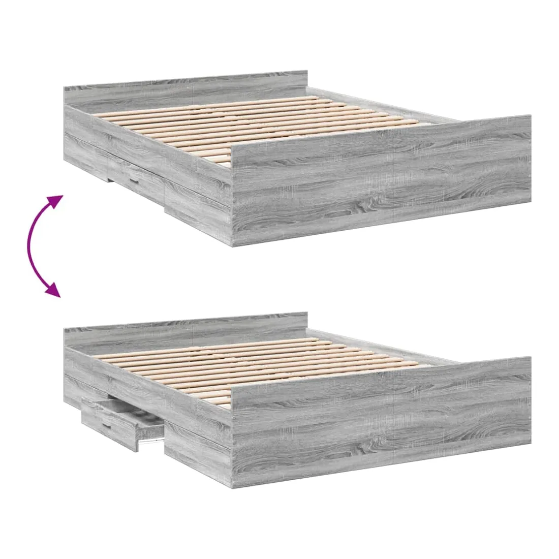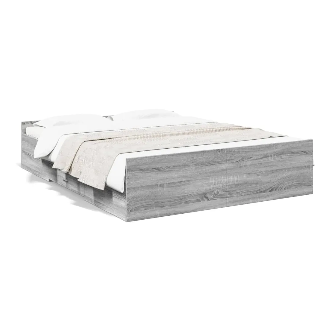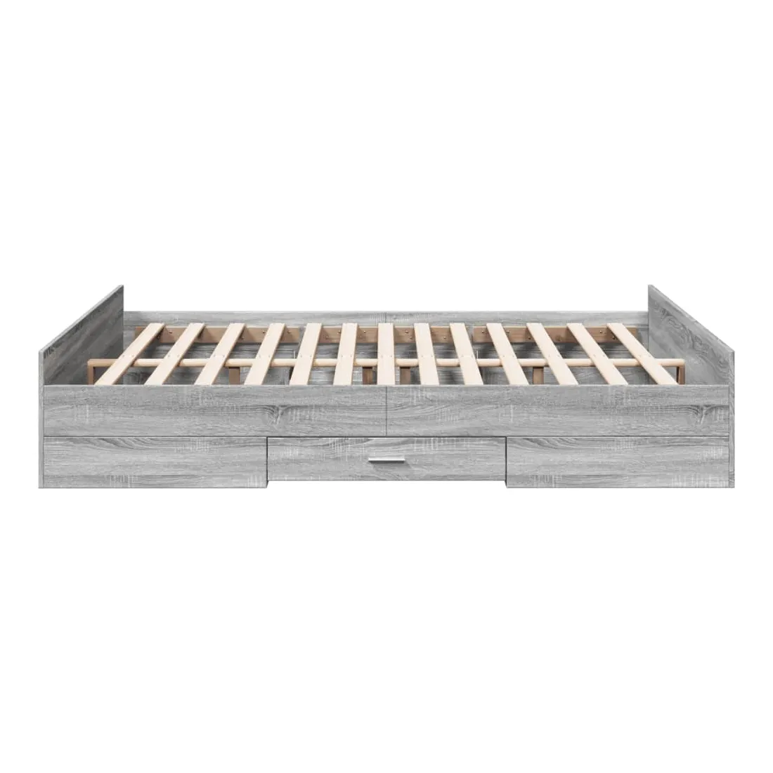 Ajoutez une touche moderne à votre chambre à coucher avec ce cadre de lit avec tiroirs ! Il apportera une touche pratique et décorative à votre espace de vie. Matériau durable : le cadre de lit est fabriquée en bois d'ingénierie. Le bois d'ingénierie est d'une qualité exceptionnelle avec une surface lisse et présente également de la résistance, de la stabilité et de la résistance à l'humidité.Lattes robustes : les lattes de contreplaqué assurent une bonne répartition du poids, garantissant que le matelas reste en place à chaque torsion de votre corps pendant le sommeil.Fonction de rangement : les tiroirs de lit inclus offrent suffisamment d'espace de rangement pour ranger vos articles essentiels, gardant votre pièce propre et bien rangée. Bon à savoir :Un matelas n'est pas inclus avec ce lit. Nous offrons une sélection variée de matelas. Vous pouvez consulter notre boutique pour trouver un matelas assorti.