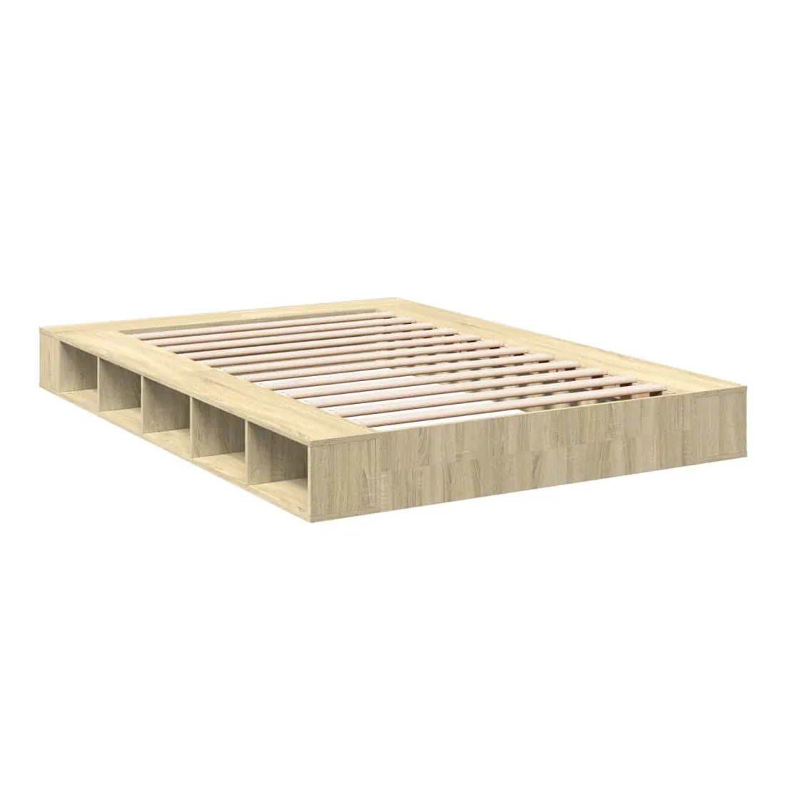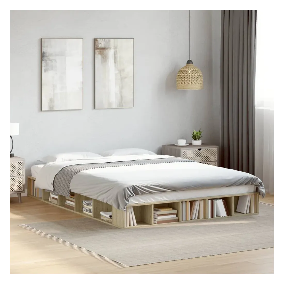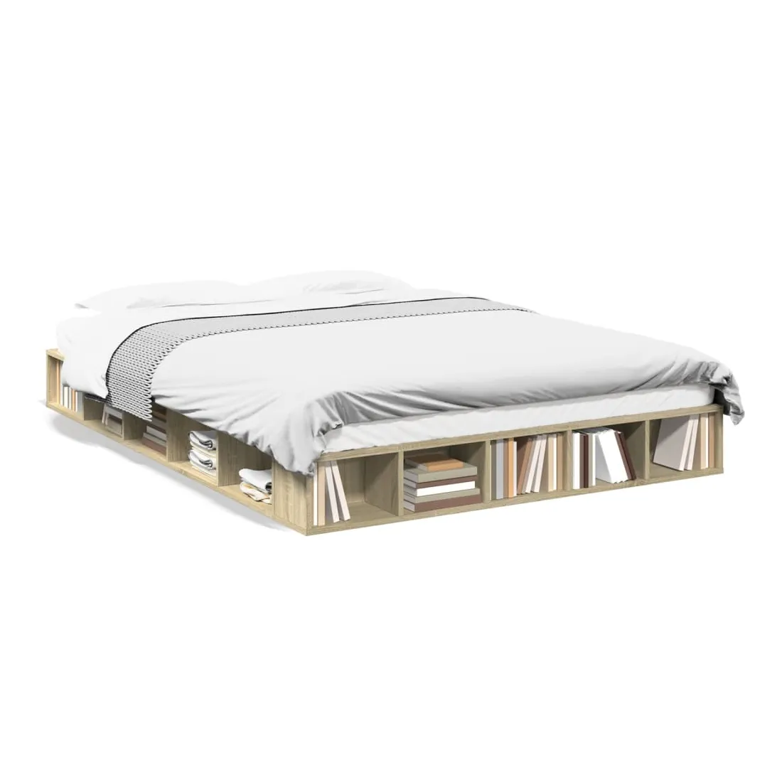 Obtenez une meilleure nuit de sommeil reposante grâce à ce cadre de lit ! Il est un supplément accueillant à toute chambre à coucher. Matériau durable : le cadre de lit est fabriquée en bois d'ingénierie. Le bois d'ingénierie est d'une qualité exceptionnelle avec une surface lisse et présente également de la résistance, de la stabilité et de la résistance à l'humidité.Lattes pour un soutien optimal : le cadre de lit est complété par des lattes pour offrir un soutien et une respirabilité essentiels à votre matelas.Fonction de rangement : ce cadre de lit offre des compartiments ouverts pour garder vos magazines, livres, jouets et autres petits objets bien organisés. Bon à savoir :Un matelas n'est pas inclus avec ce lit. Nous offrons une sélection variée de matelas. Vous pouvez consulter notre boutique pour trouver un matelas assorti.