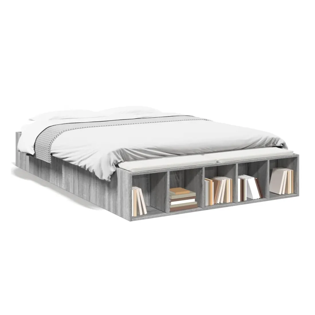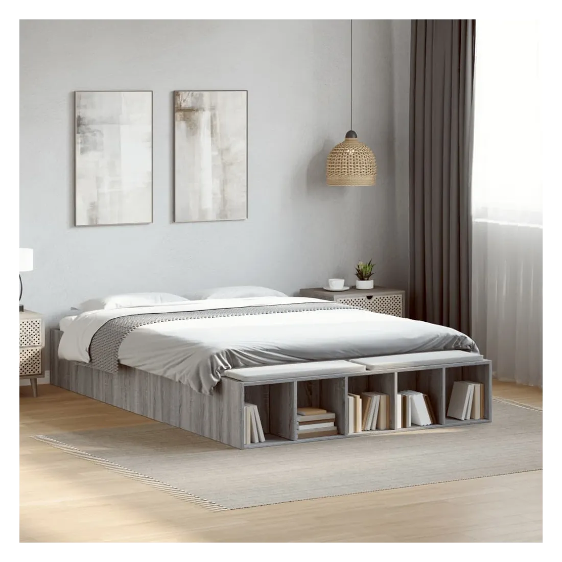 Ajoutez une touche moderne à votre chambre à coucher avec ce cadre de lit ! Il apportera une touche pratique et décorative à votre espace de vie. Matériau durable : le cadre de lit est fabriquée en bois d'ingénierie. Le bois d'ingénierie est d'une qualité exceptionnelle avec une surface lisse et présente également de la résistance, de la stabilité et de la résistance à l'humidité.Lattes robustes : les lattes de contreplaqué assurent une bonne répartition du poids, garantissant que le matelas reste en place à chaque torsion de votre corps pendant le sommeil.Fonction de rangement : les compartiments de lit inclus offrent un grand espace de rangement pour ranger vos articles essentiels, gardant votre chambre propre et bien rangée. Bon à savoir :Un matelas n'est pas inclus avec ce lit. Nous offrons une sélection variée de matelas. Vous pouvez consulter notre boutique pour trouver un matelas assorti.