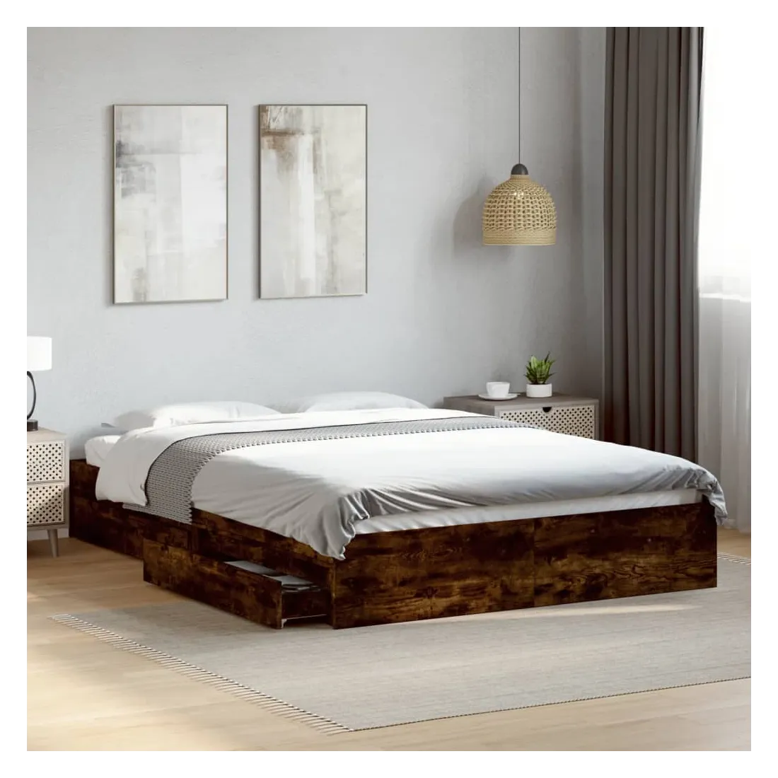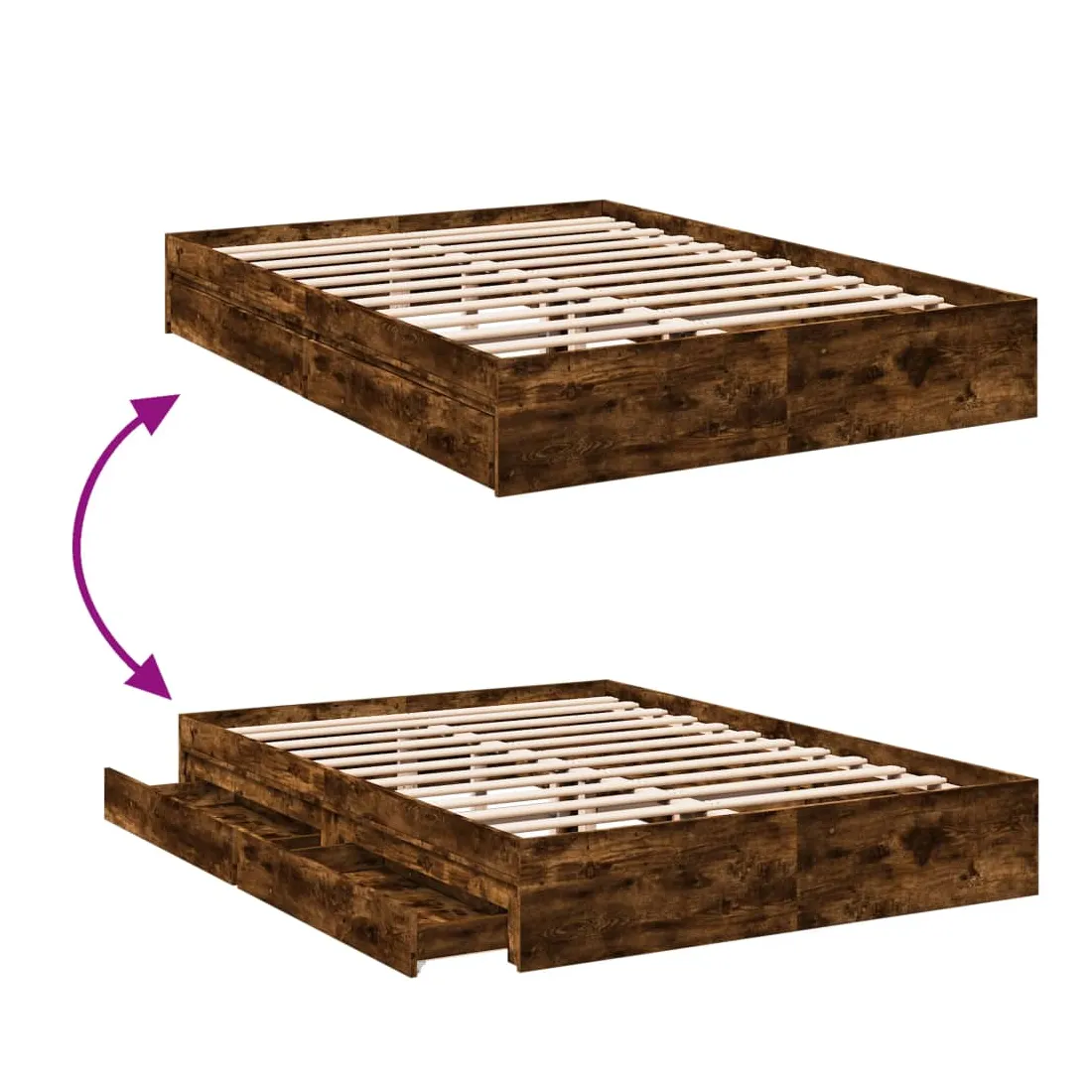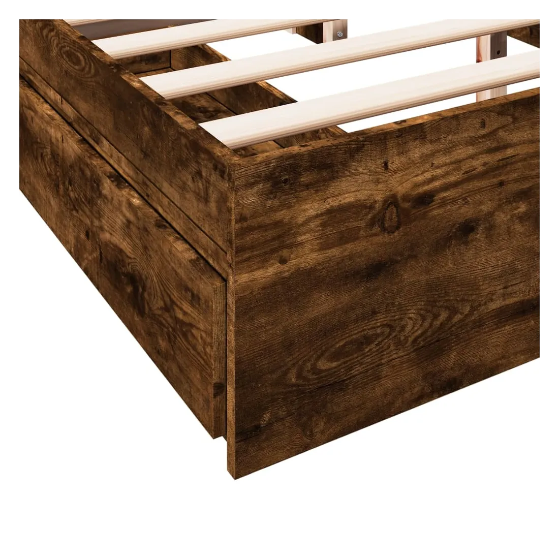 Cadre de lit avec tiroirs sans matelas chêne fumé 160x200 cm