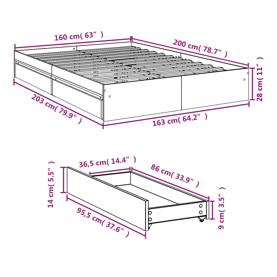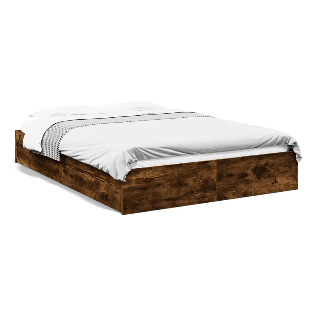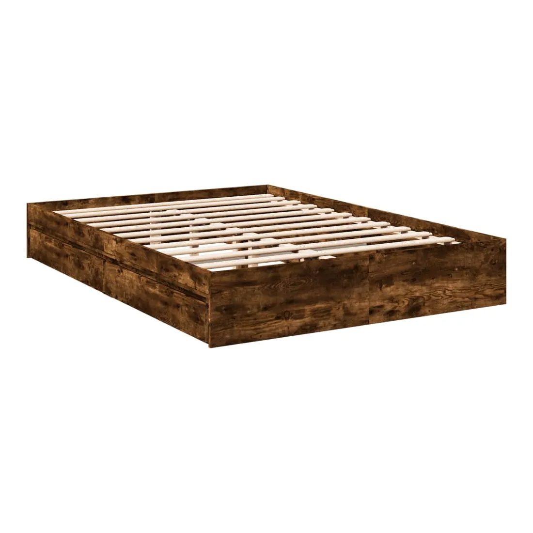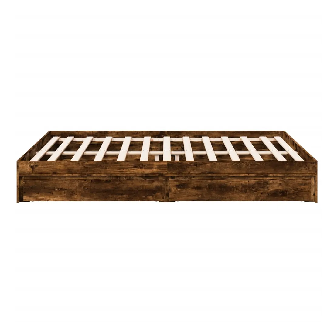 Cadre de lit avec tiroirs sans matelas chêne fumé 160x200 cm