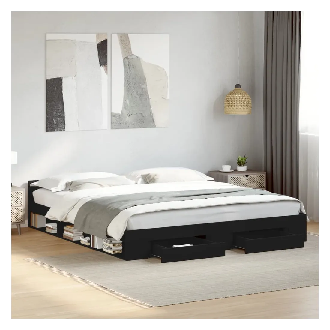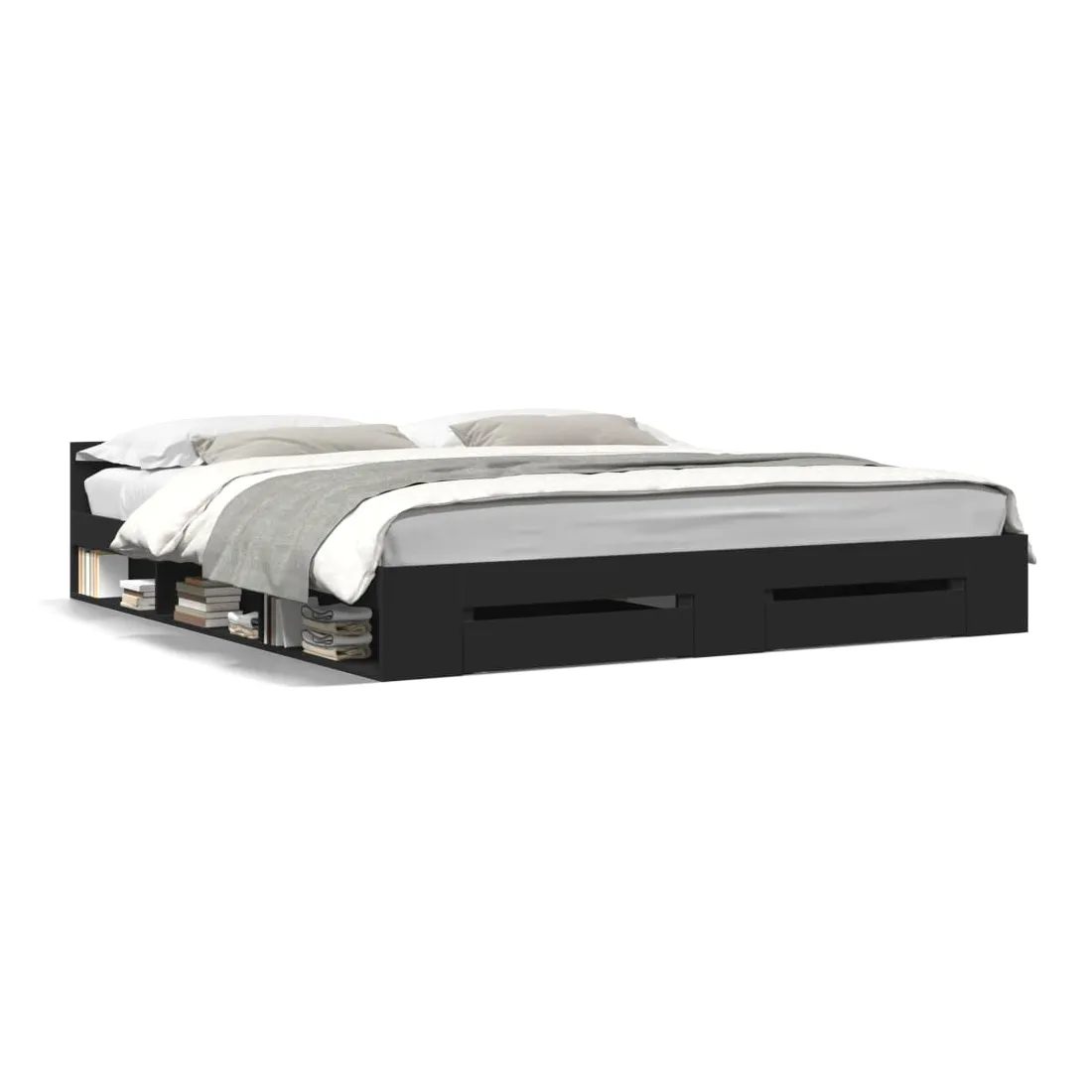Cadre de lit avec tiroirs sans matelas noir 200x200 cm