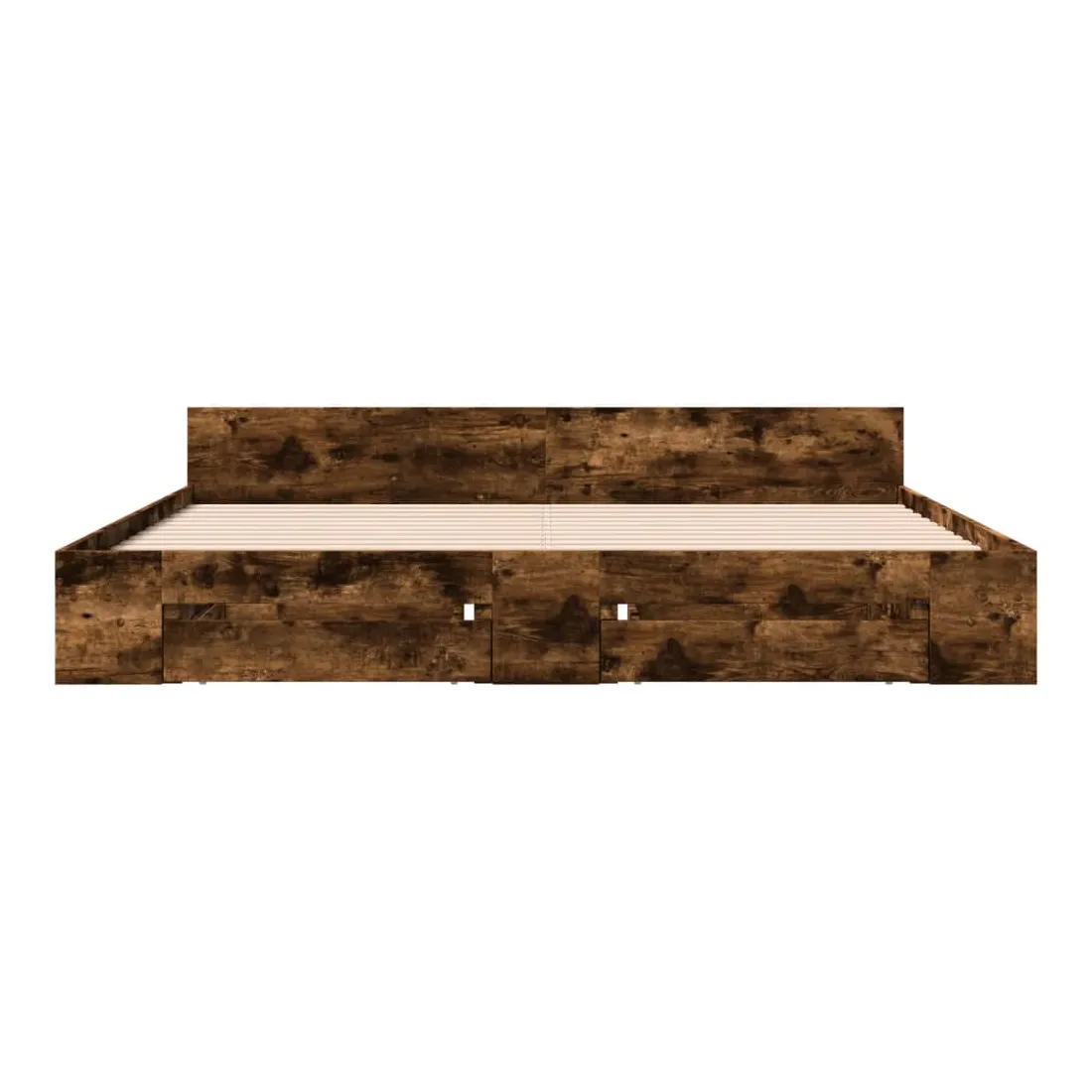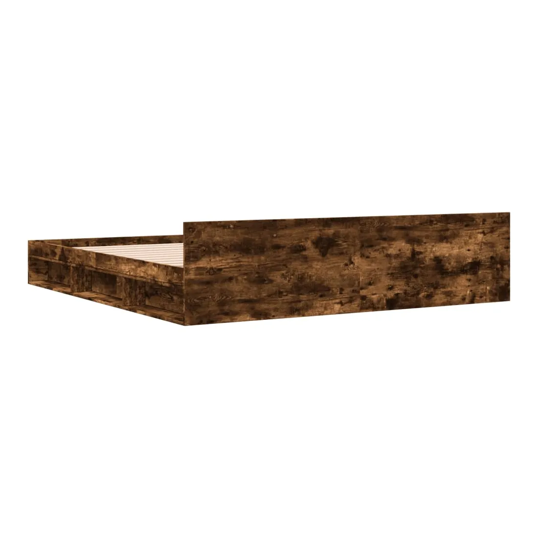 Ajoutez une touche moderne à votre chambre à coucher avec ce cadre de lit avec tiroirs ! Il apportera une touche pratique et décorative à votre espace de vie. Matériau durable : le cadre de lit est fabriquée en bois d'ingénierie. Le bois d'ingénierie est d'une qualité exceptionnelle avec une surface lisse et présente également de la résistance, de la stabilité et de la résistance à l'humidité.Lattes robustes : les lattes de contreplaqué assurent une bonne répartition du poids, garantissant que le matelas reste en place à chaque torsion de votre corps pendant le sommeil.Fonction de rangement : les tiroirs de lit et les compartiments latéraux inclus offrent suffisamment d'espace de rangement pour ranger vos articles essentiels, gardant votre pièce propre et bien rangée. Bon à savoir :Un matelas n'est pas inclus avec ce lit. Nous offrons une sélection variée de matelas. Vous pouvez consulter notre boutique pour trouver un matelas assorti.