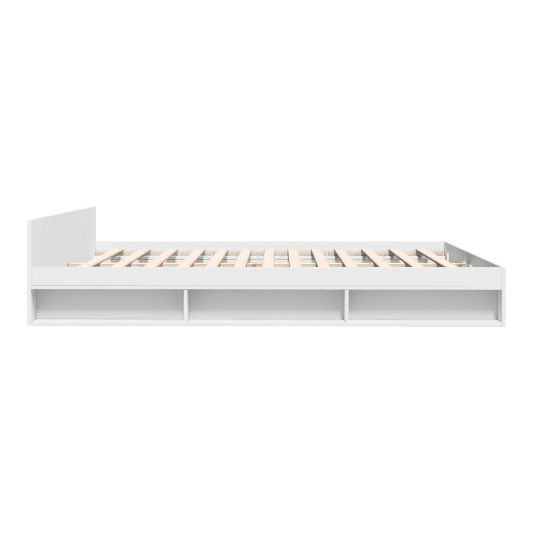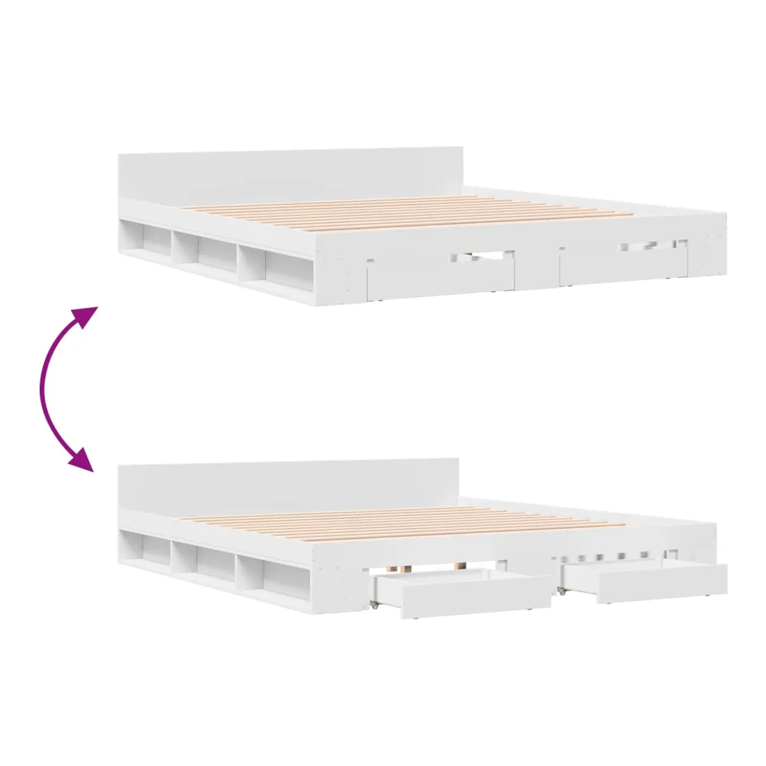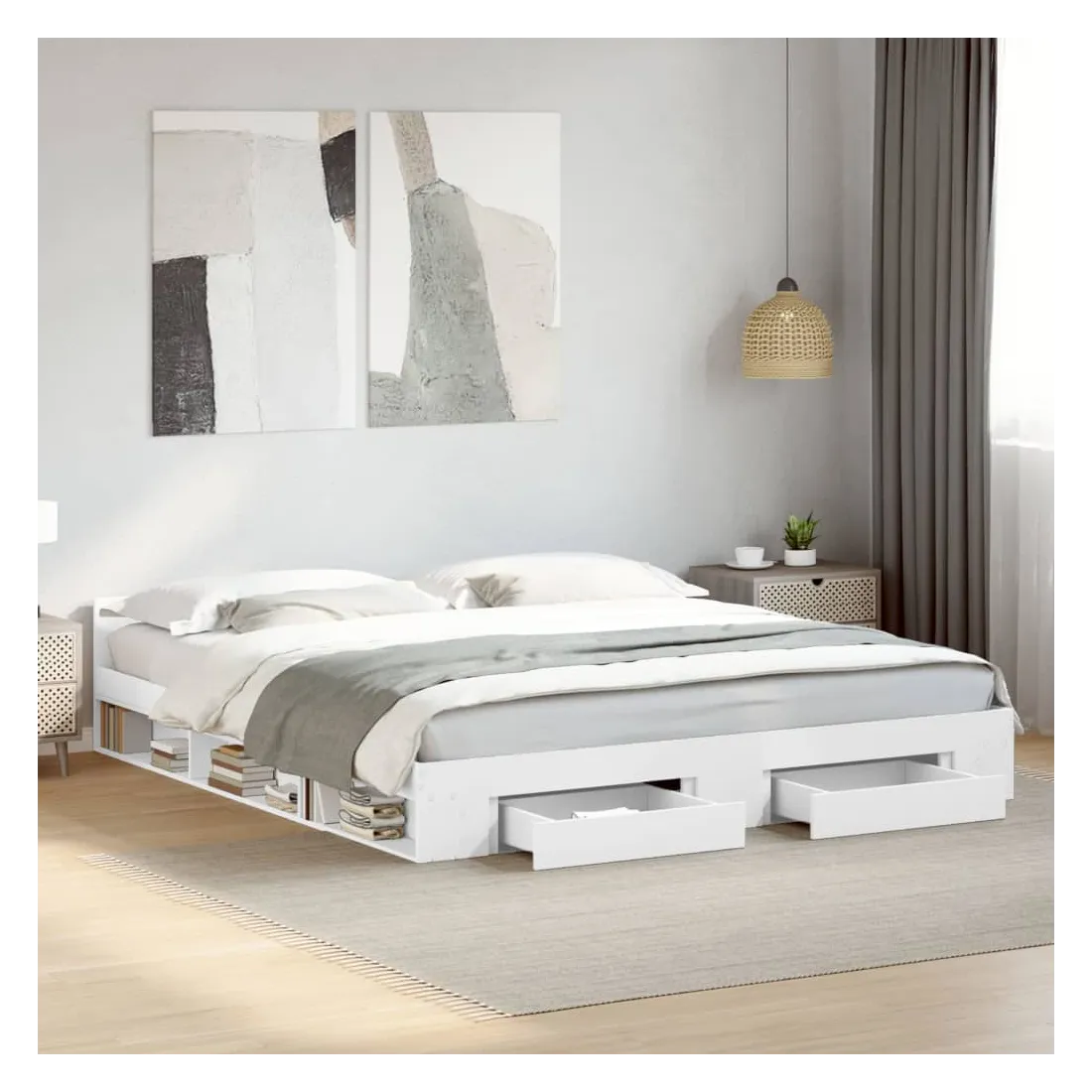 Ajoutez une touche moderne à votre chambre à coucher avec ce cadre de lit avec tiroirs ! Il apportera une touche pratique et décorative à votre espace de vie. Matériau durable : le cadre de lit est fabriquée en bois d'ingénierie. Le bois d'ingénierie est d'une qualité exceptionnelle avec une surface lisse et présente également de la résistance, de la stabilité et de la résistance à l'humidité.Lattes robustes : les lattes de contreplaqué assurent une bonne répartition du poids, garantissant que le matelas reste en place à chaque torsion de votre corps pendant le sommeil.Fonction de rangement : les tiroirs de lit et les compartiments latéraux inclus offrent suffisamment d'espace de rangement pour ranger vos articles essentiels, gardant votre pièce propre et bien rangée. Bon à savoir :Un matelas n'est pas inclus avec ce lit. Nous offrons une sélection variée de matelas. Vous pouvez consulter notre boutique pour trouver un matelas assorti.