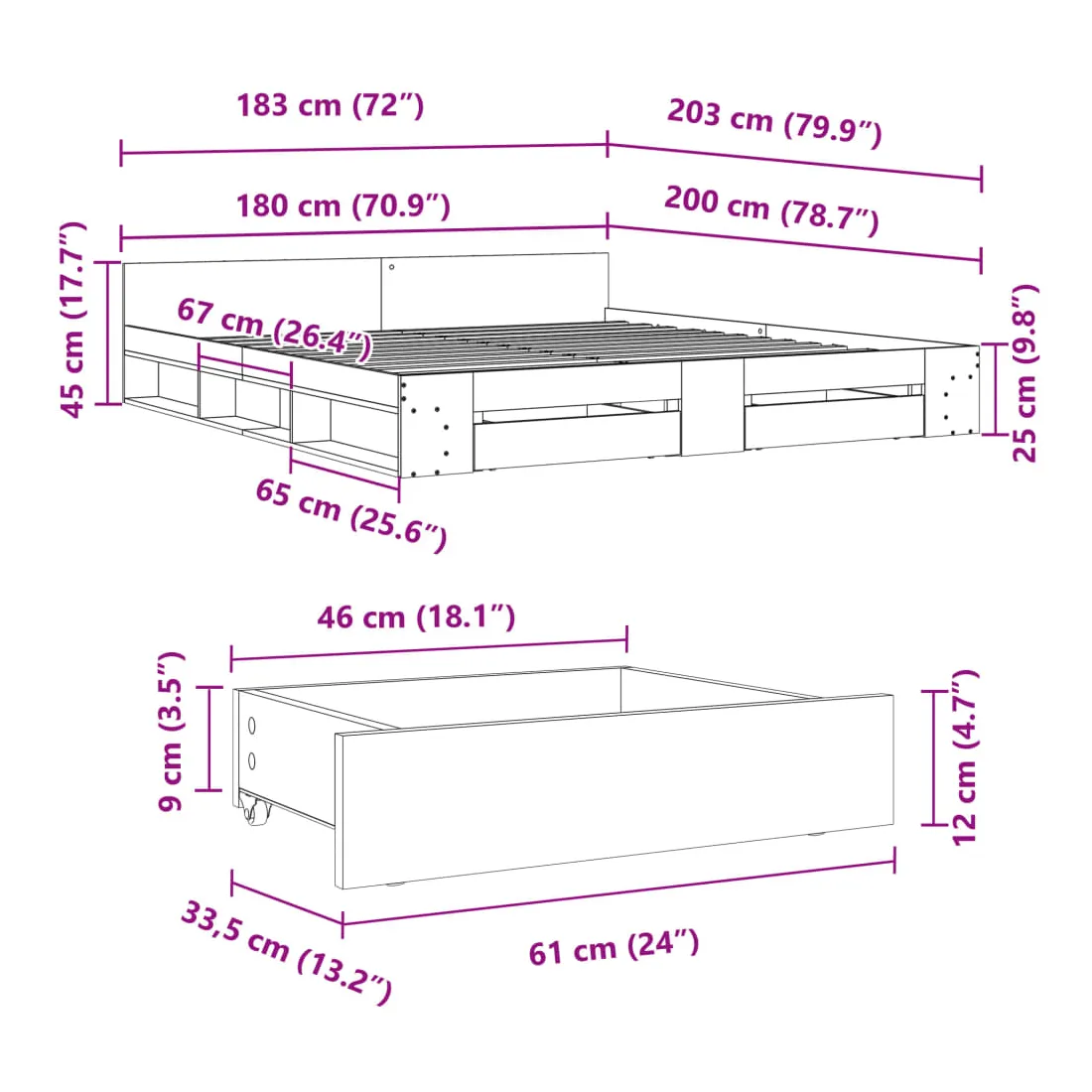 - Dimensions du tiroir de lit (chacun) : 61 x 33,5 x 12 cm (L x l x H)