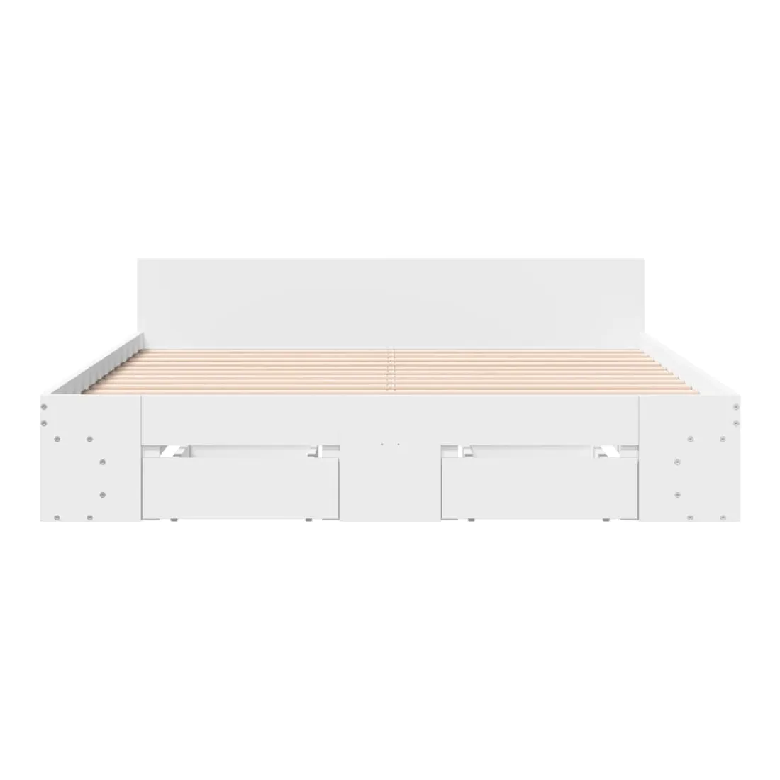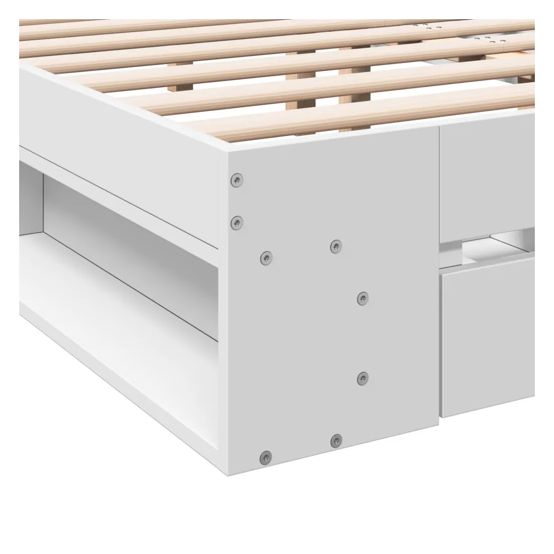 Ajoutez une touche moderne à votre chambre à coucher avec ce cadre de lit avec tiroirs ! Il apportera une touche pratique et décorative à votre espace de vie. Matériau durable : le cadre de lit est fabriquée en bois d'ingénierie. Le bois d'ingénierie est d'une qualité exceptionnelle avec une surface lisse et présente également de la résistance, de la stabilité et de la résistance à l'humidité.Lattes robustes : les lattes de contreplaqué assurent une bonne répartition du poids, garantissant que le matelas reste en place à chaque torsion de votre corps pendant le sommeil.Fonction de rangement : les tiroirs de lit et les compartiments latéraux inclus offrent suffisamment d'espace de rangement pour ranger vos articles essentiels, gardant votre pièce propre et bien rangée. Bon à savoir :Un matelas n'est pas inclus avec ce lit. Nous offrons une sélection variée de matelas. Vous pouvez consulter notre boutique pour trouver un matelas assorti.
