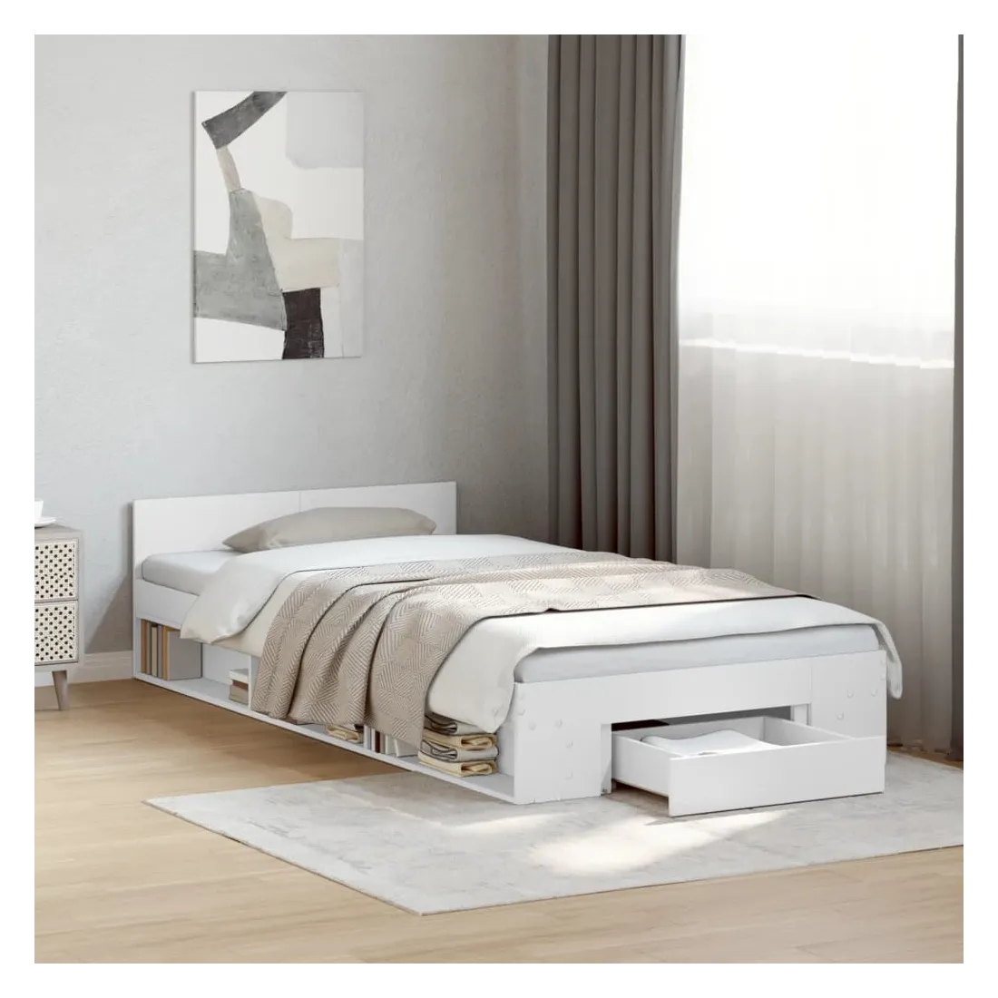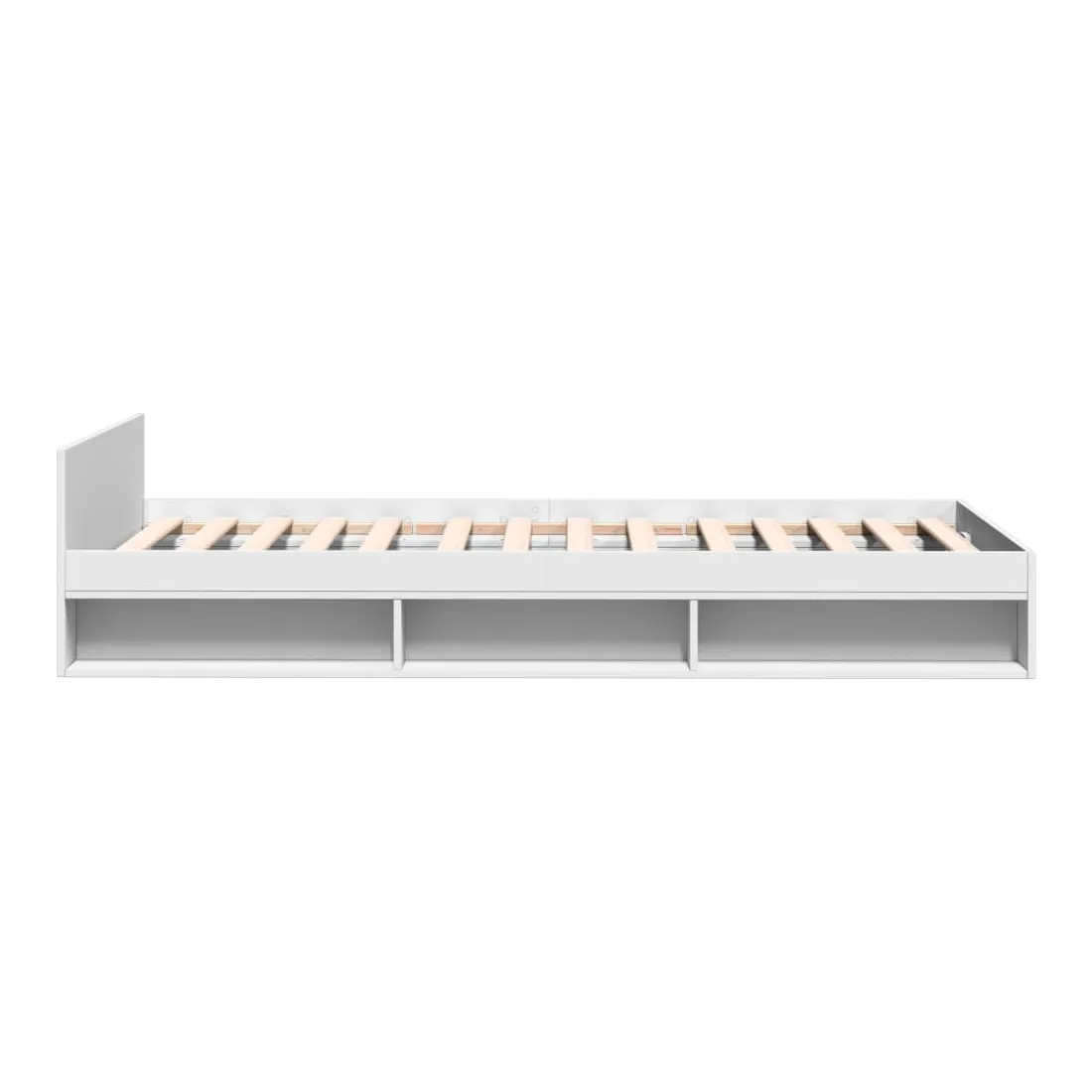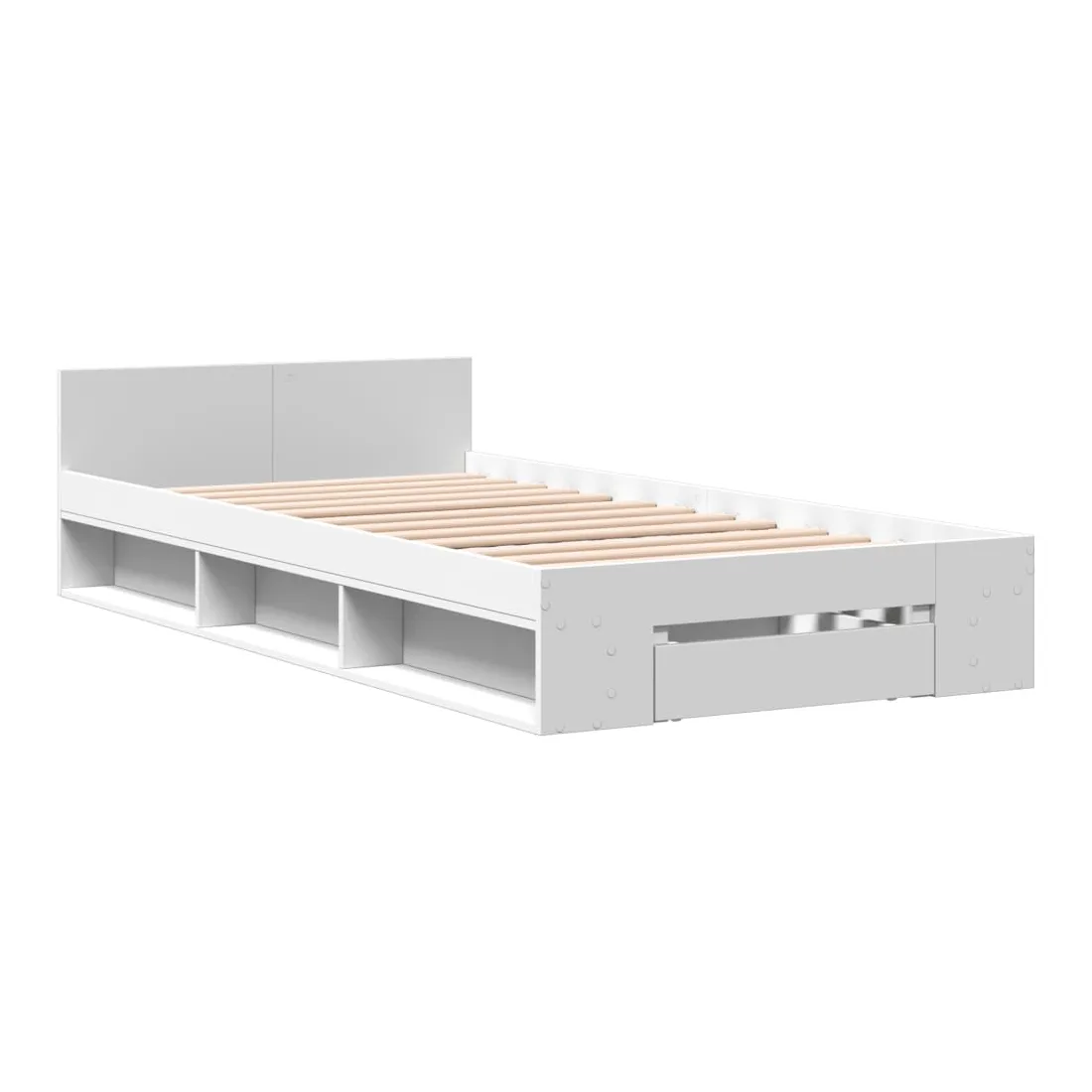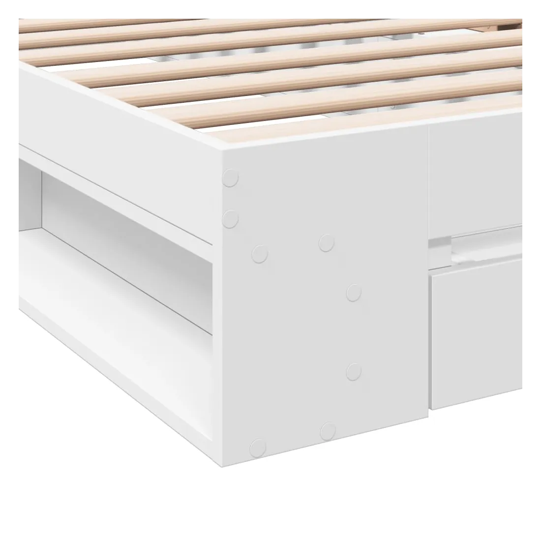 Ajoutez une touche moderne à votre chambre à coucher avec ce cadre de lit avec tiroir ! Il apportera une touche pratique et décorative à votre espace de vie. Matériau durable : le cadre de lit est fabriquée en bois d'ingénierie. Le bois d'ingénierie est d'une qualité exceptionnelle avec une surface lisse et présente également de la résistance, de la stabilité et de la résistance à l'humidité.Lattes robustes : les lattes de contreplaqué assurent une bonne répartition du poids, garantissant que le matelas reste en place à chaque torsion de votre corps pendant le sommeil.Fonction de rangement : le tiroir de lit et les compartiments latéraux inclus offrent suffisamment d'espace de rangement pour ranger vos articles essentiels, gardant votre pièce propre et bien rangée. Bon à savoir :Un matelas n'est pas inclus avec ce lit. Nous offrons une sélection variée de matelas. Vous pouvez consulter notre boutique pour trouver un matelas assorti.