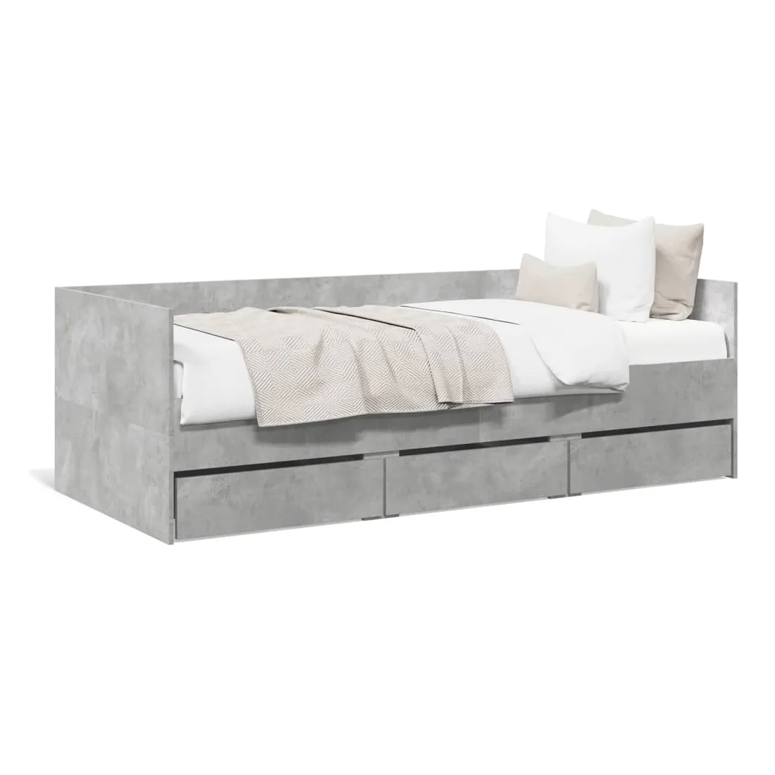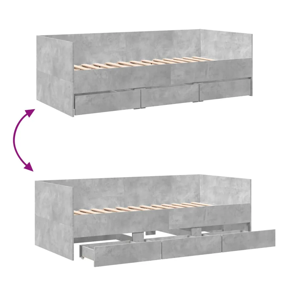 Ce lit de repos 2 en 1 avec tiroirs, servant à la fois de canapé et de lit, constitue un ajout pratique et accrocheur à votre salon ou chambre à coucher. Lit de repos polyvalent : le canapé-lit fonctionne comme un canapé pendant la journée et se transforme facilement en lit double la nuit en retirant le lit gigogne, offrant une solution pratique pour accueillir des invités et maximiser l'espace. Grand espace de rangement : ce lit d'appoint dispose de 3 tiroirs à roulettes qui offrent suffisamment d'espace pour ranger vos vêtements, chaussettes, jouets, coussins, etc.Construction solide : ce canapé-lit est doté d'un cadre robuste en bois d'ingénierie. Le bois d'ingénierie est d'une qualité exceptionnelle avec une surface lisse et se caractérise par sa solidité, sa stabilité et sa résistance à l'humidité. Bon à savoir :La livraison comprend uniquement un cadre de lit de jour. Le matelas n'est pas inclus. Vous pouvez consulter notre boutique pour trouver les matelas assortis.