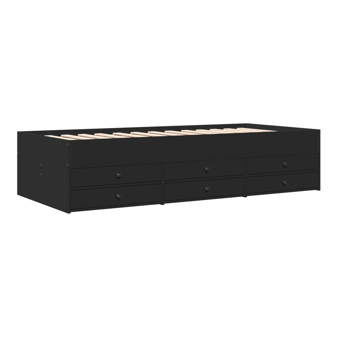 Ce lit de repos 2 en 1 avec tiroirs, servant à la fois de canapé et de lit, constitue un ajout pratique et accrocheur à votre salon ou chambre à coucher. Méridienne polyvalente : Le canapé-lit fait office de canapé le jour ou de lit la nuit, ce qui constitue une solution pratique pour accueillir des invités et optimiser l'espace. Grand espace de rangement : ce lit d'appoint dispose de 6 tiroirs à roulettes qui offrent suffisamment d'espace pour ranger vos vêtements, chaussettes, jouets, coussins, etc.Construction solide : ce canapé-lit est doté d'un cadre robuste en bois d'ingénierie. Le bois d'ingénierie est d'une qualité exceptionnelle avec une surface lisse et se caractérise par sa solidité, sa stabilité et sa résistance à l'humidité. Bon à savoir :La livraison comprend uniquement un cadre de lit de jour. Le matelas n'est pas inclus. Vous pouvez consulter notre boutique pour trouver les matelas assortis.