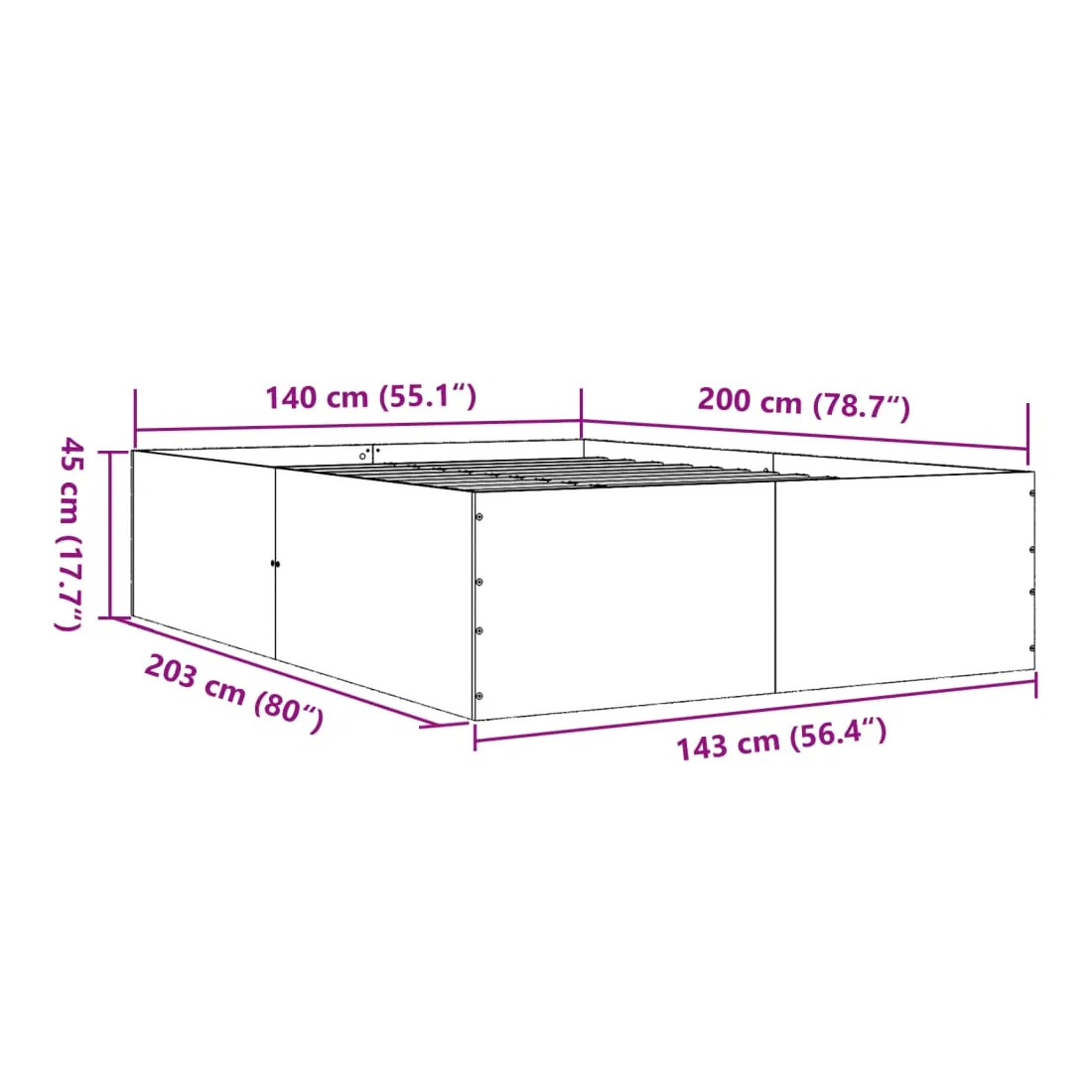 - Dimensions du matelas correspondant : 140 x 200 cm (l x L) (matelas non inclus)
