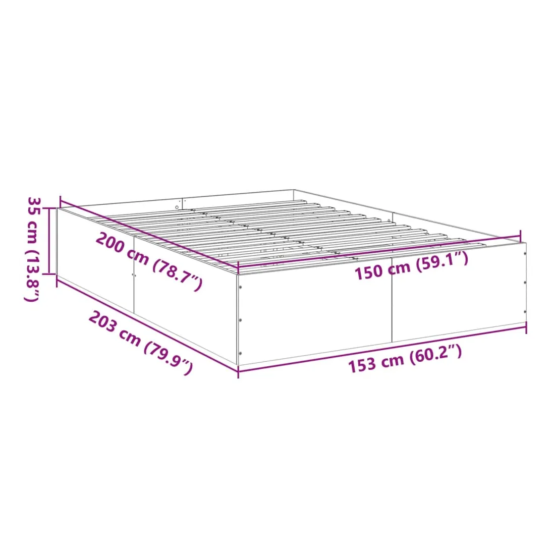 - Dimensions du matelas correspondant : 150 x 200 cm (l x L) (matelas non inclus)