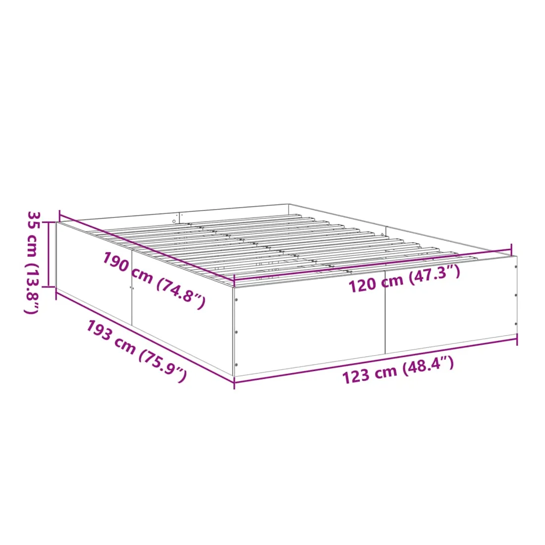 - Dimensions totales : 193 x 123 x 35 cm (L x l x H)