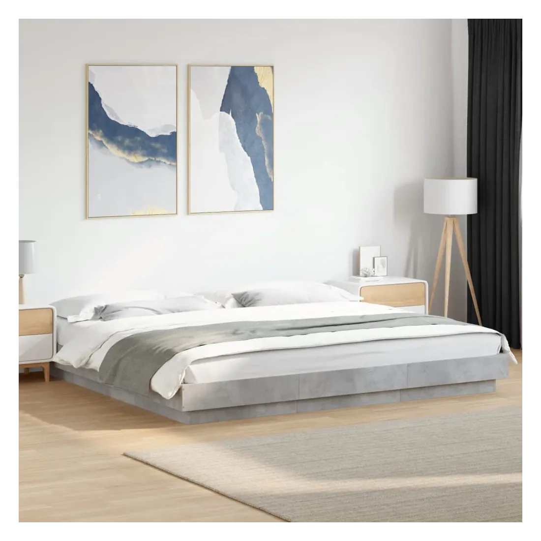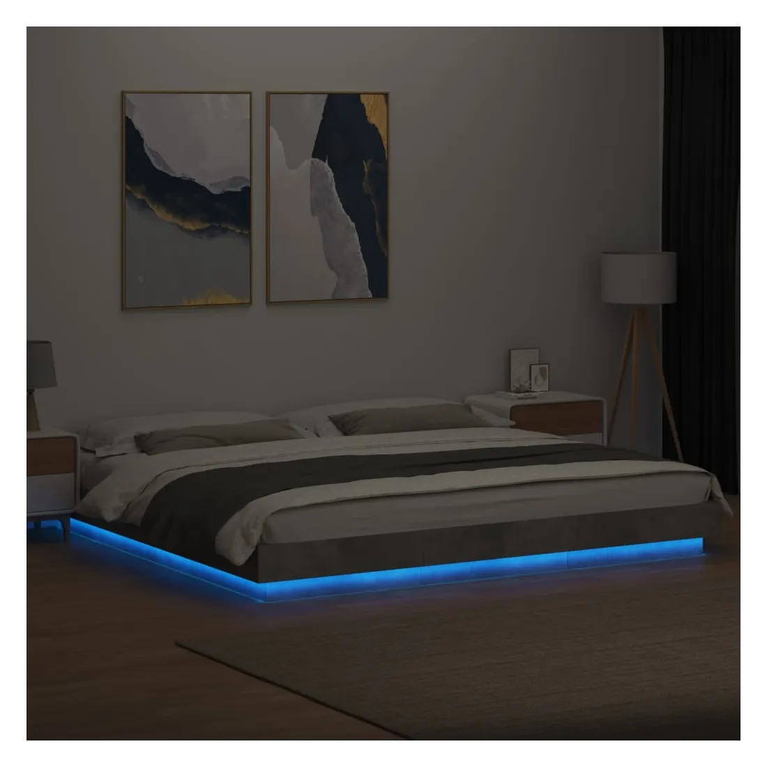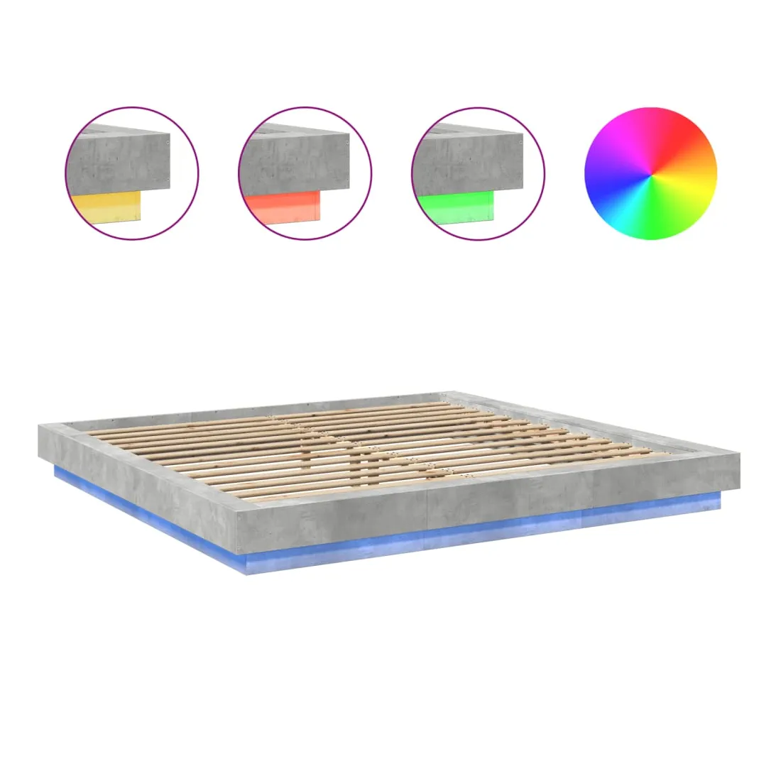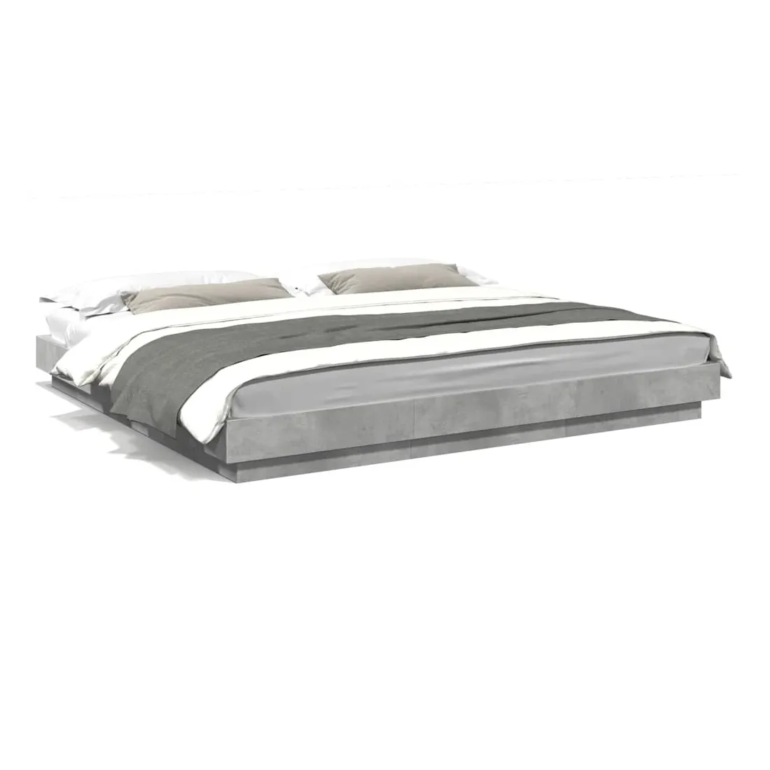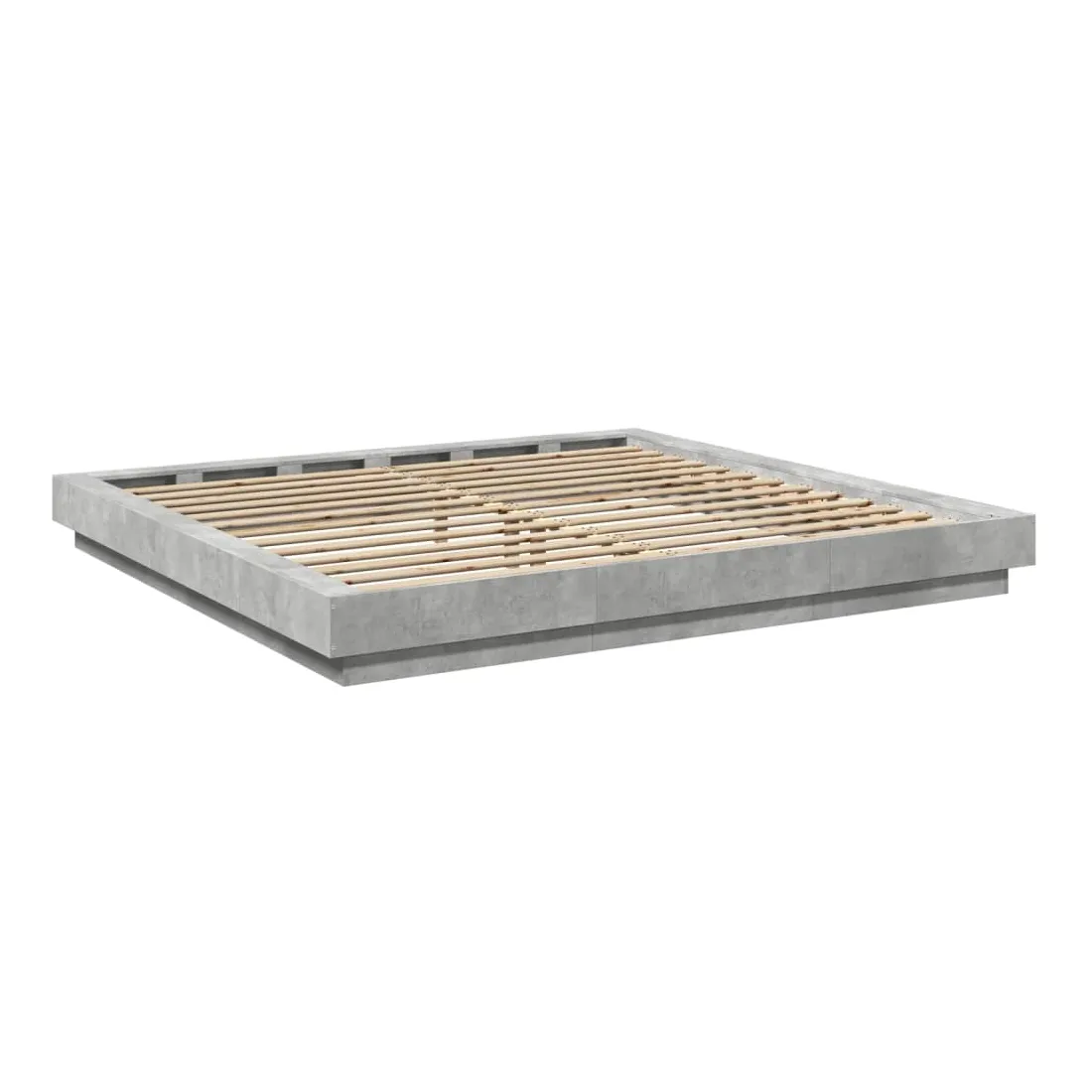 Cadre de lit et lumières LED sans matelas gris béton 200x200 cm